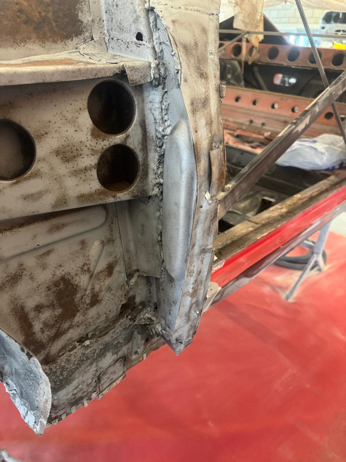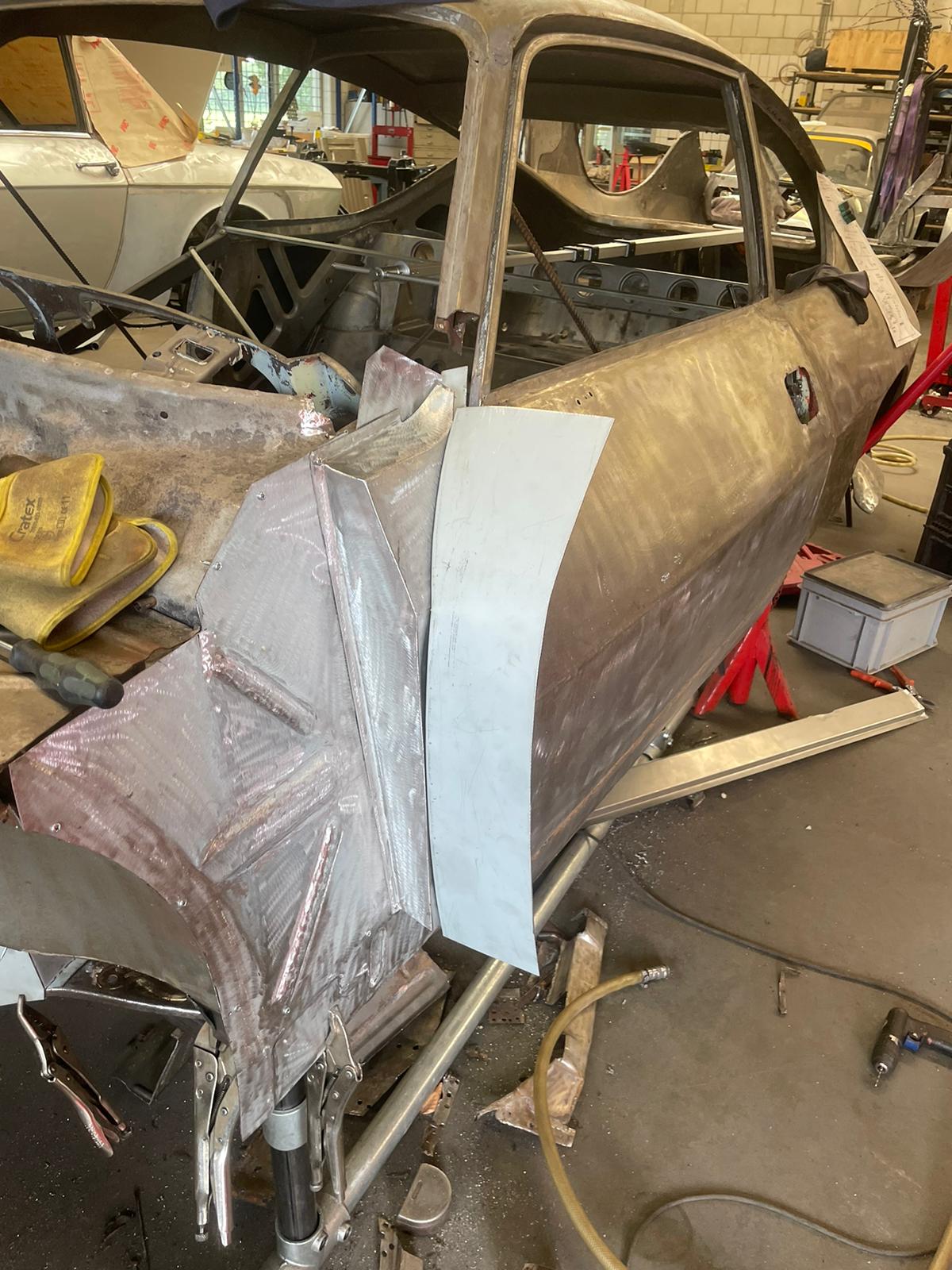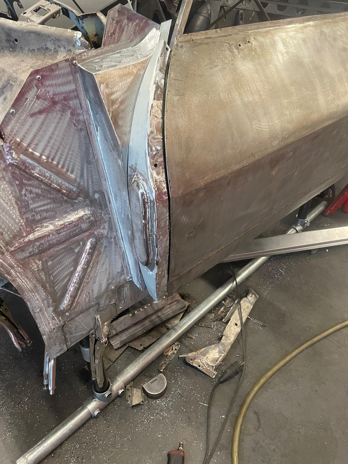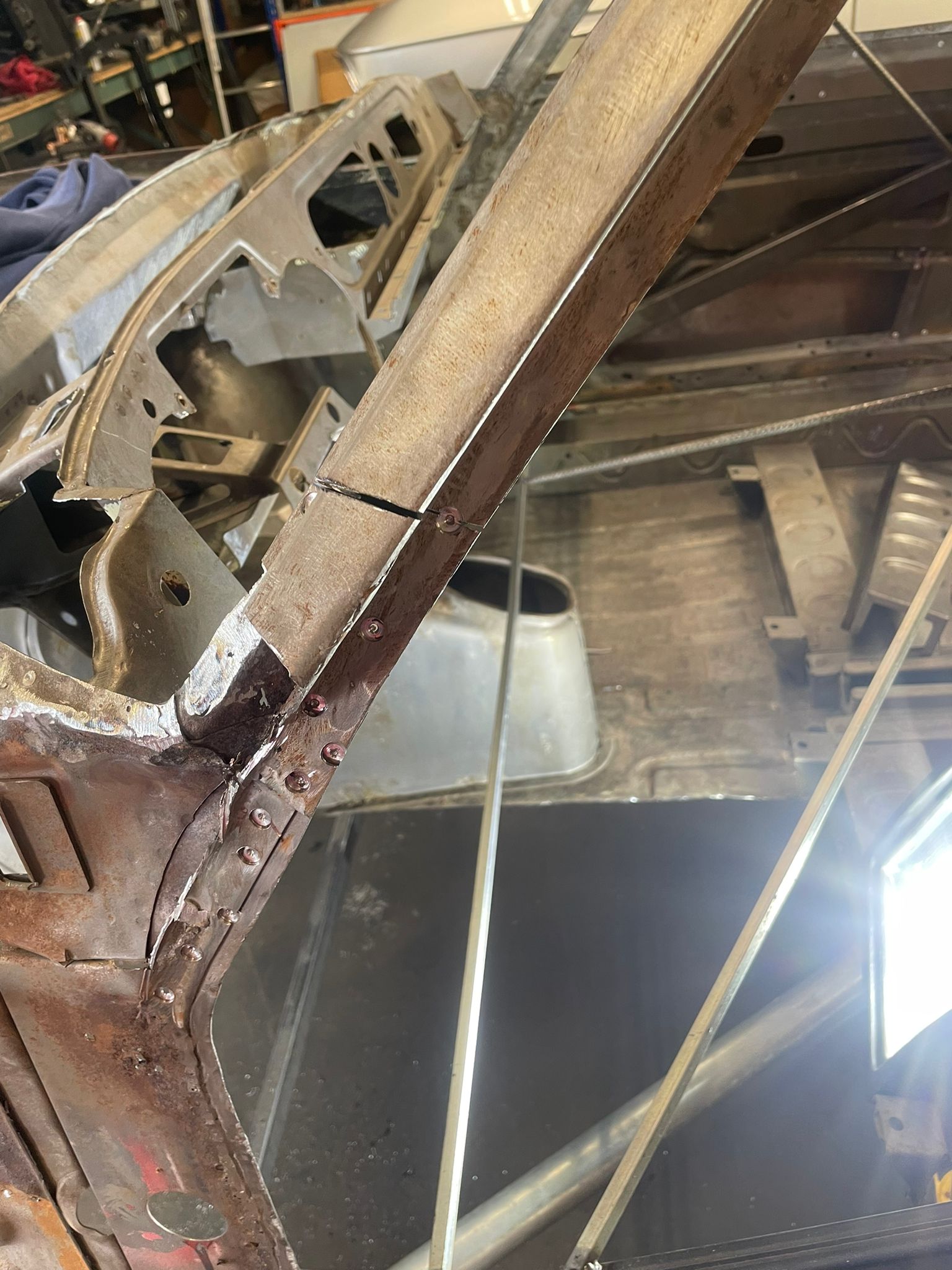 Start of the new Apillar. In the car was a very rough welded over pillar from a first series zagato do i copied the passengerside and mirrored it