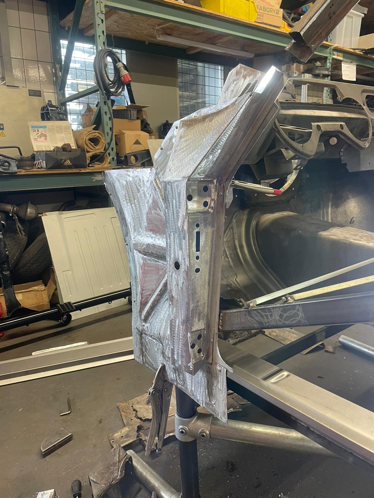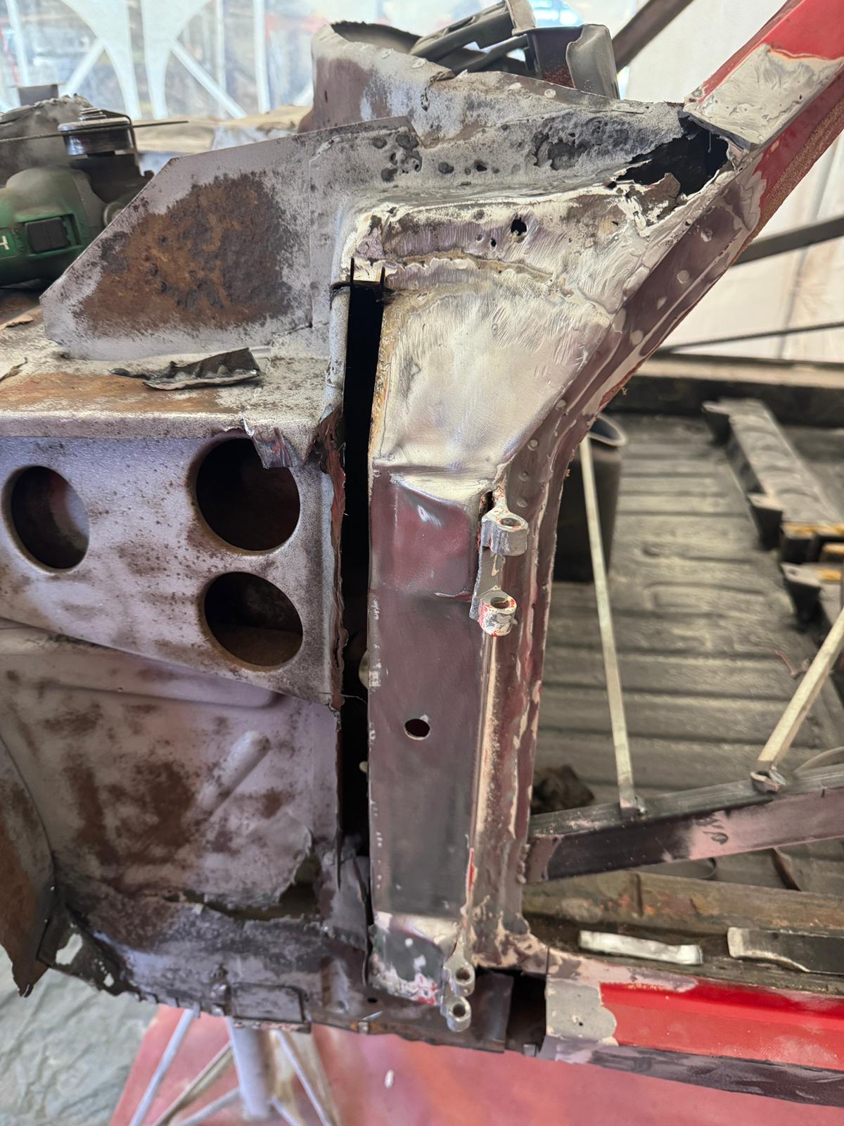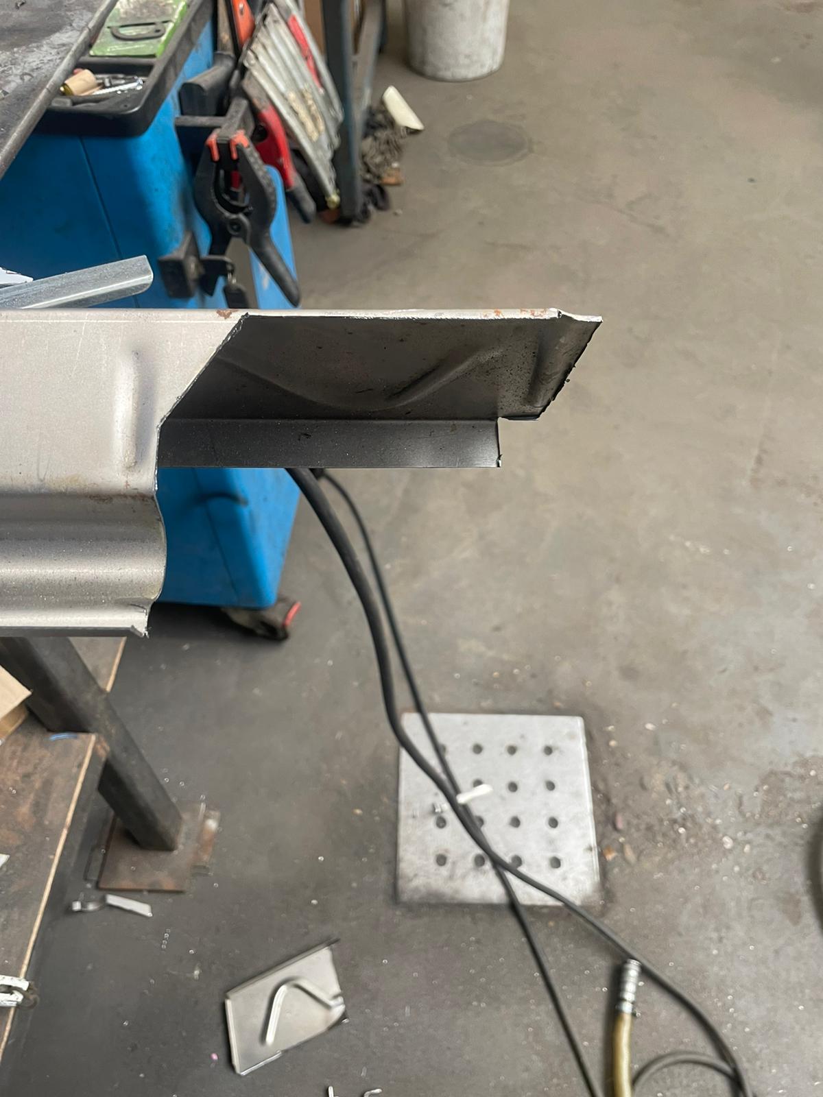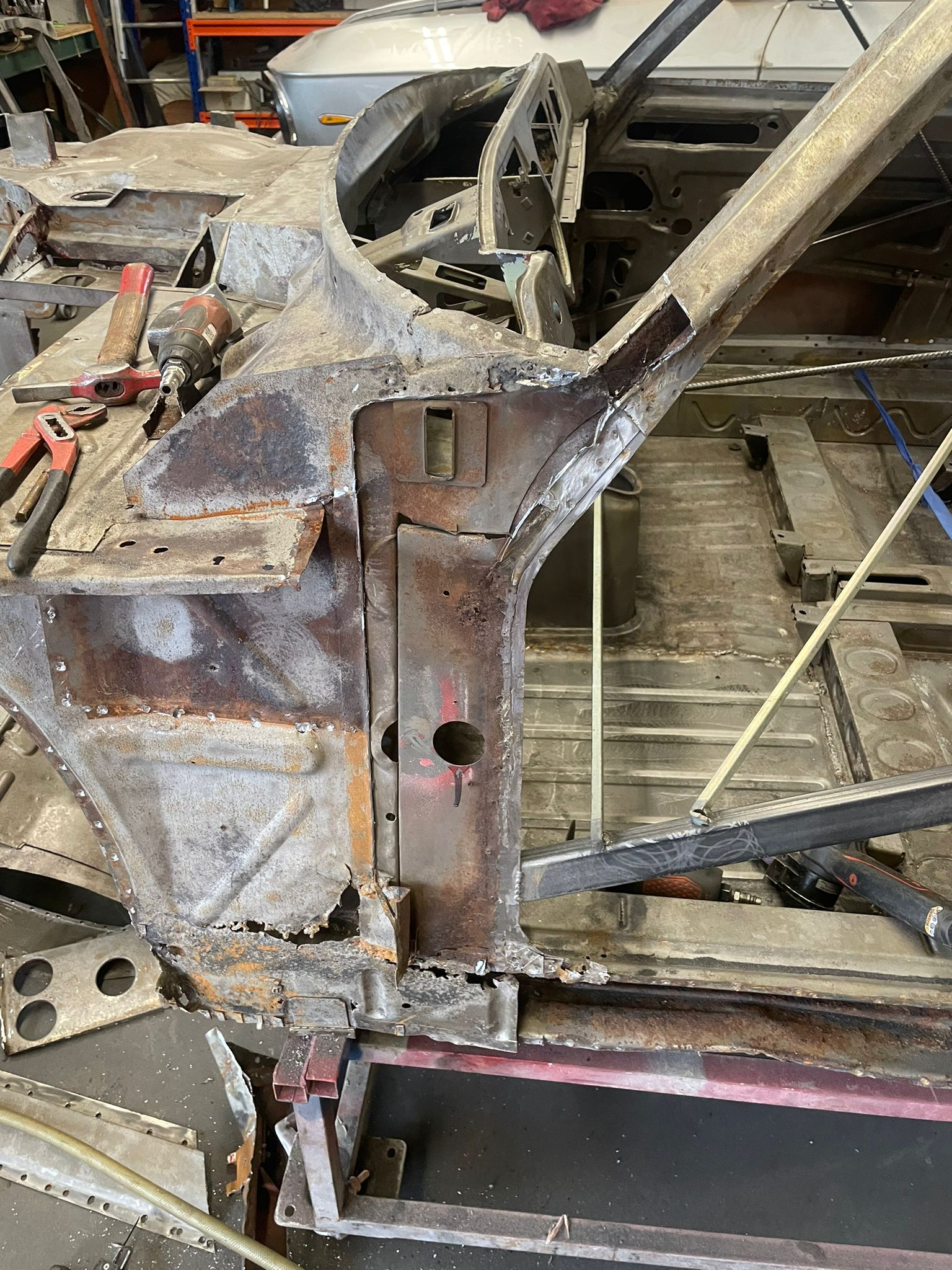 Start of the new Apillar. In the car was a very rough welded over pillar from a first series zagato do i copied the passengerside and mirrored it