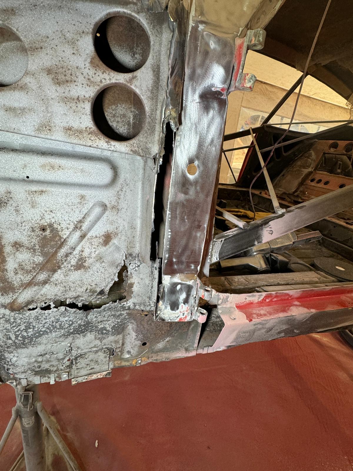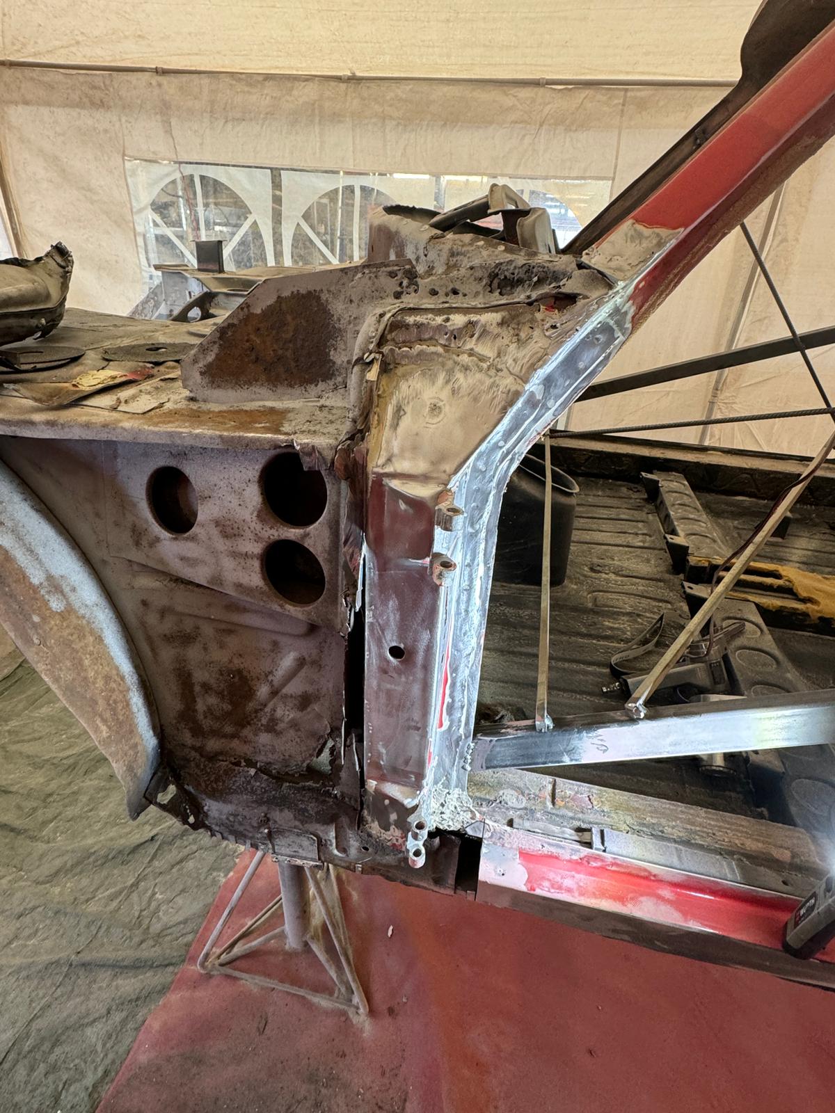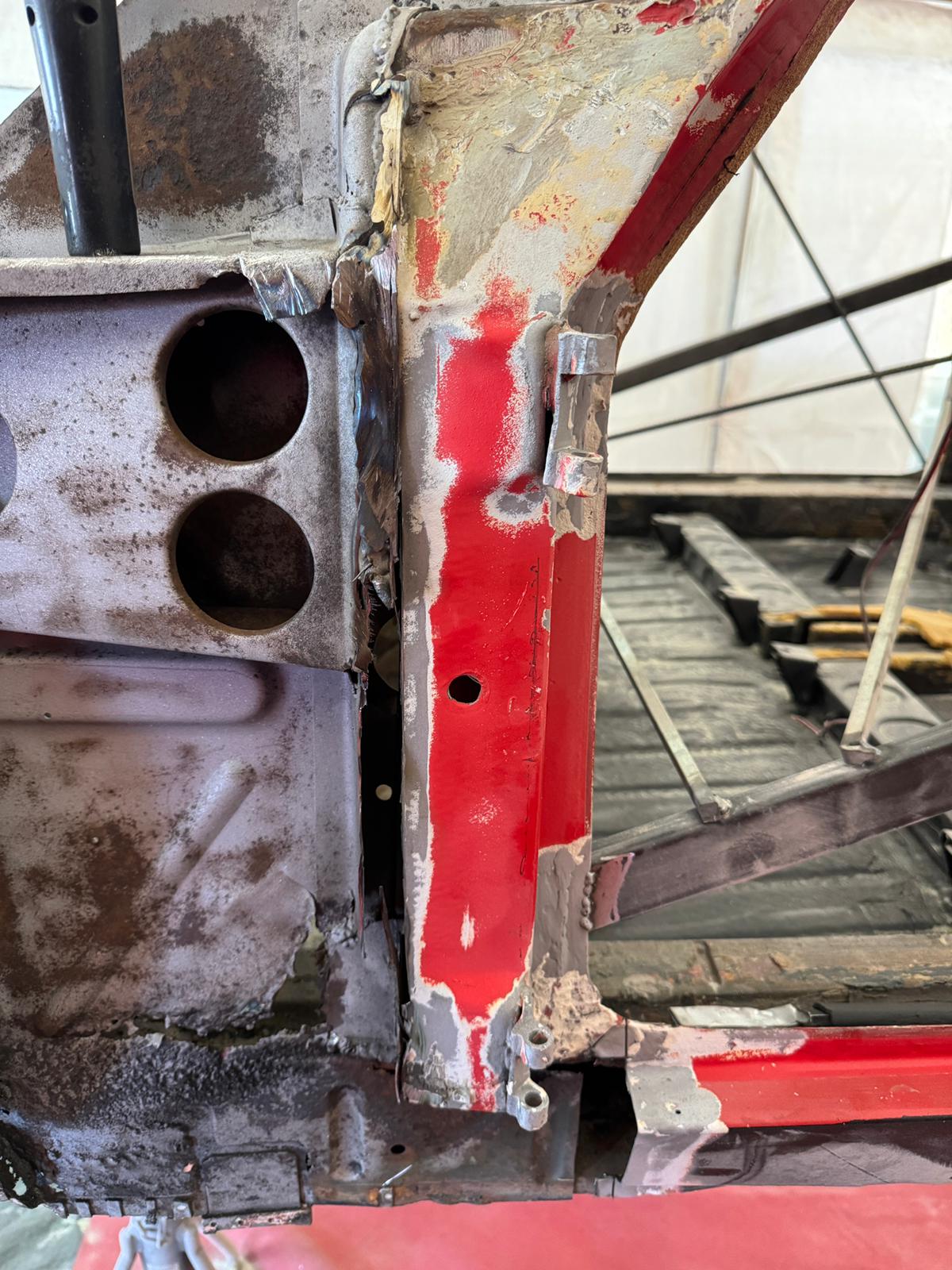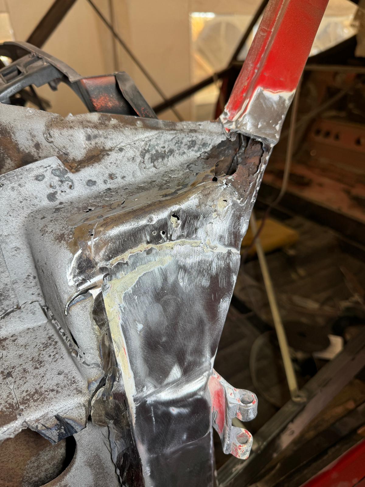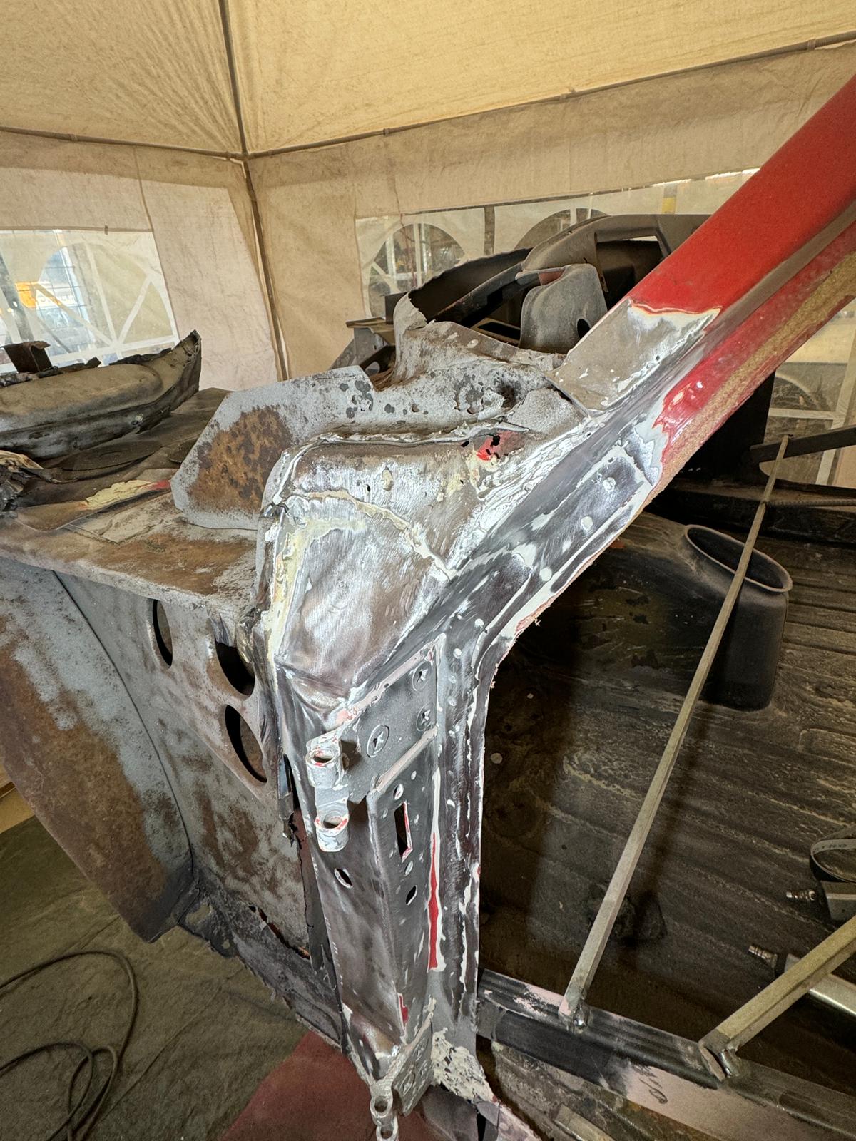 Start of the new Apillar. In the car was a very rough welded over pillar from a first series zagato do i copied the passengerside and mirrored it
