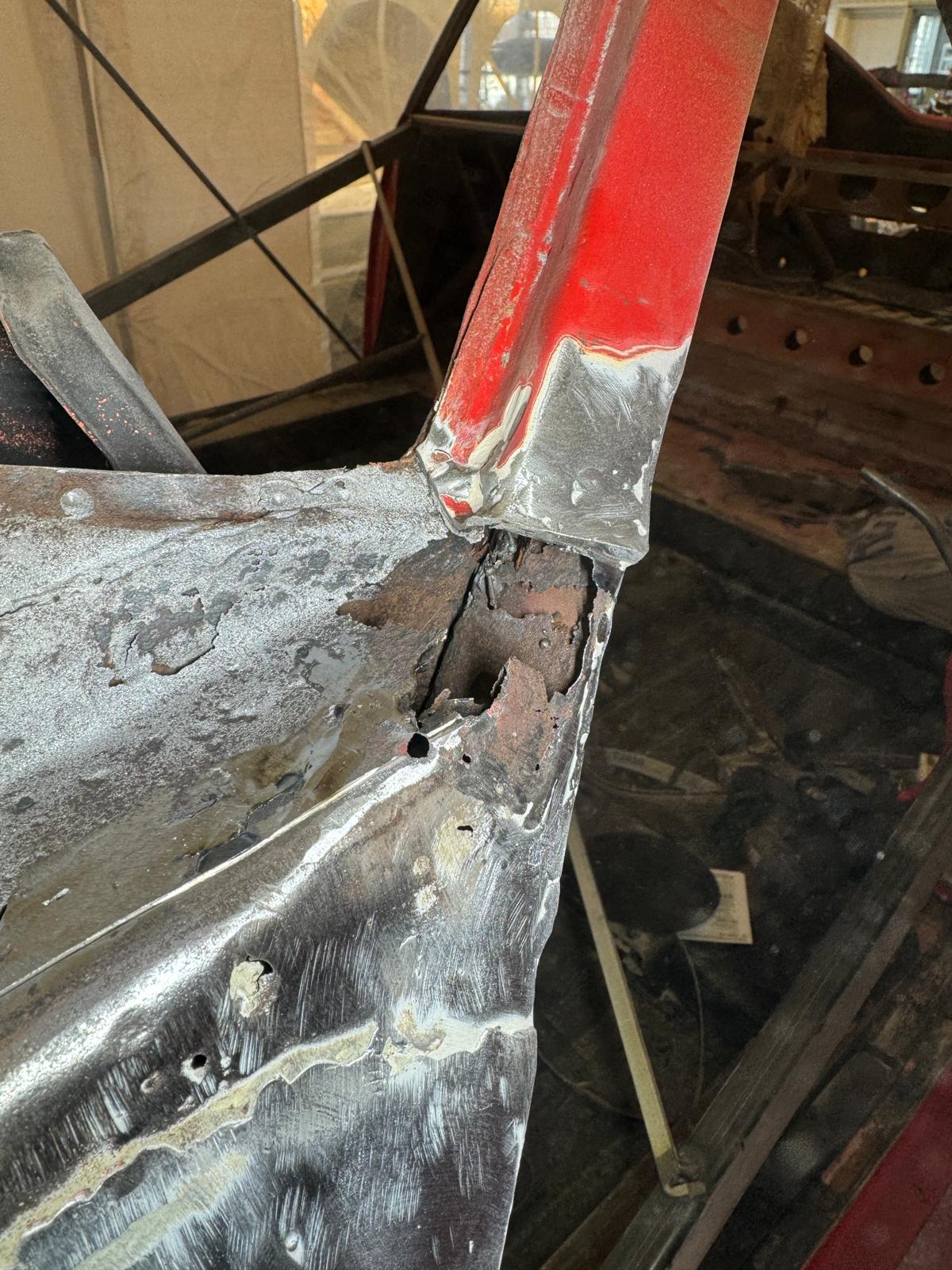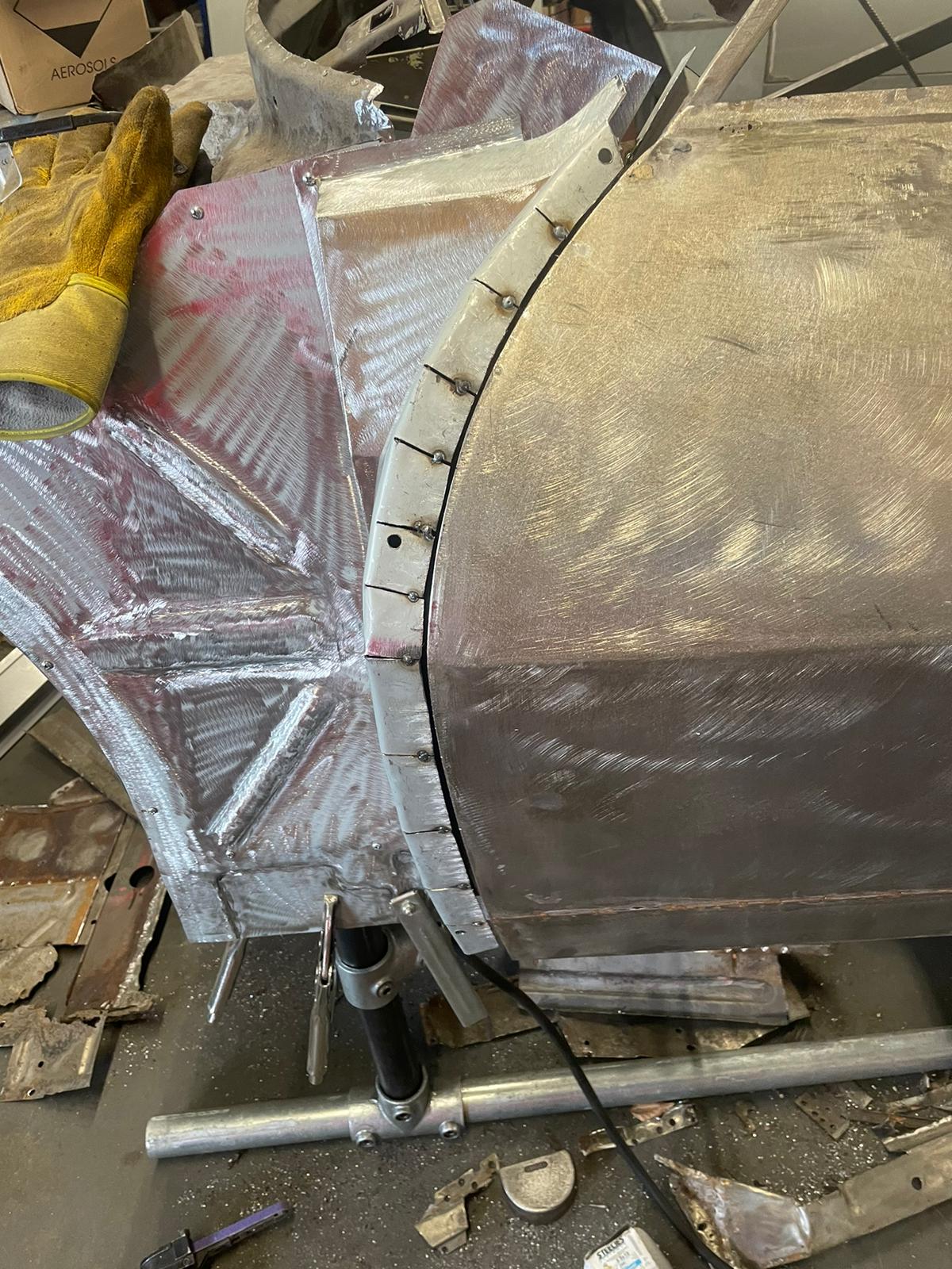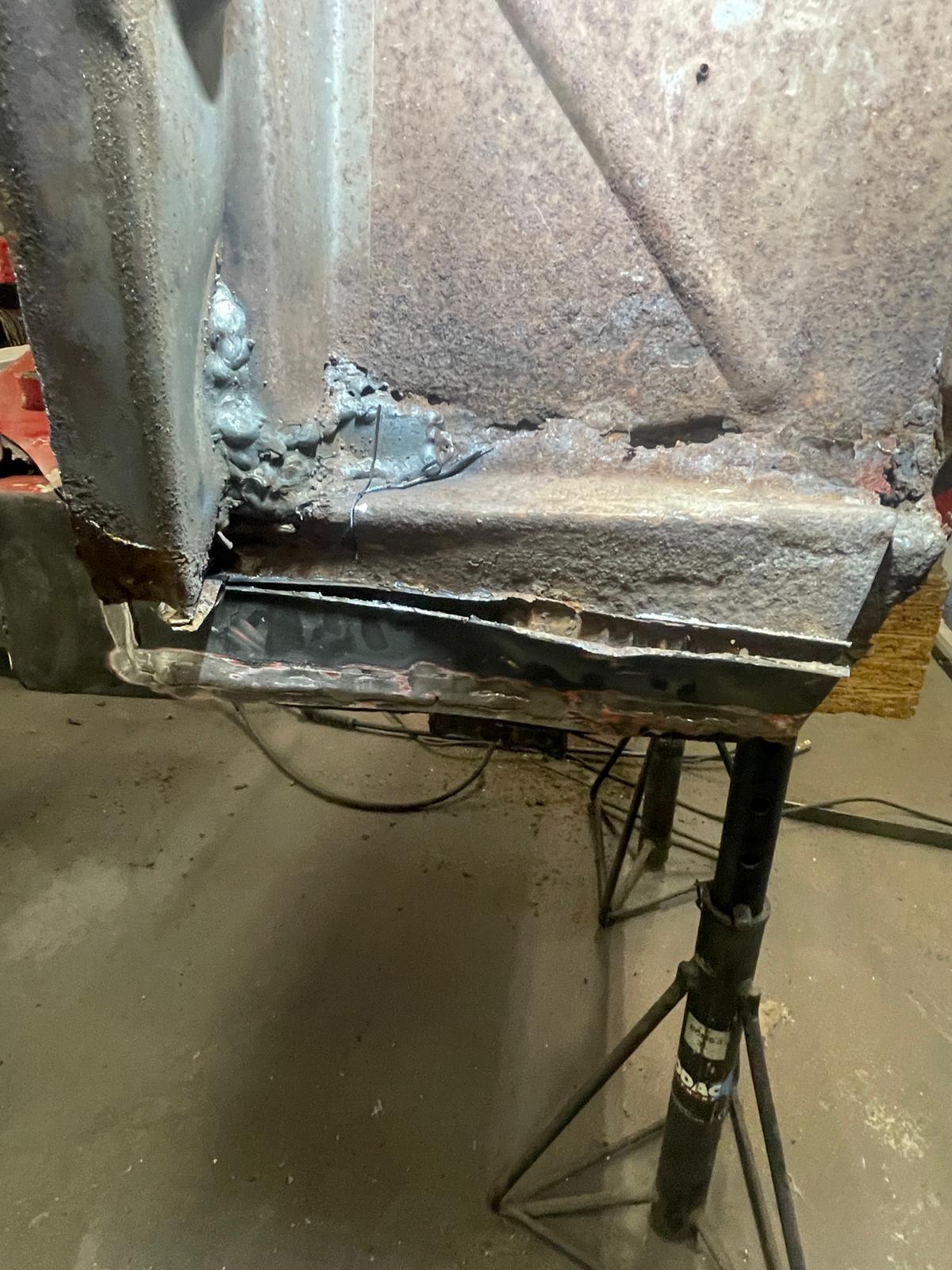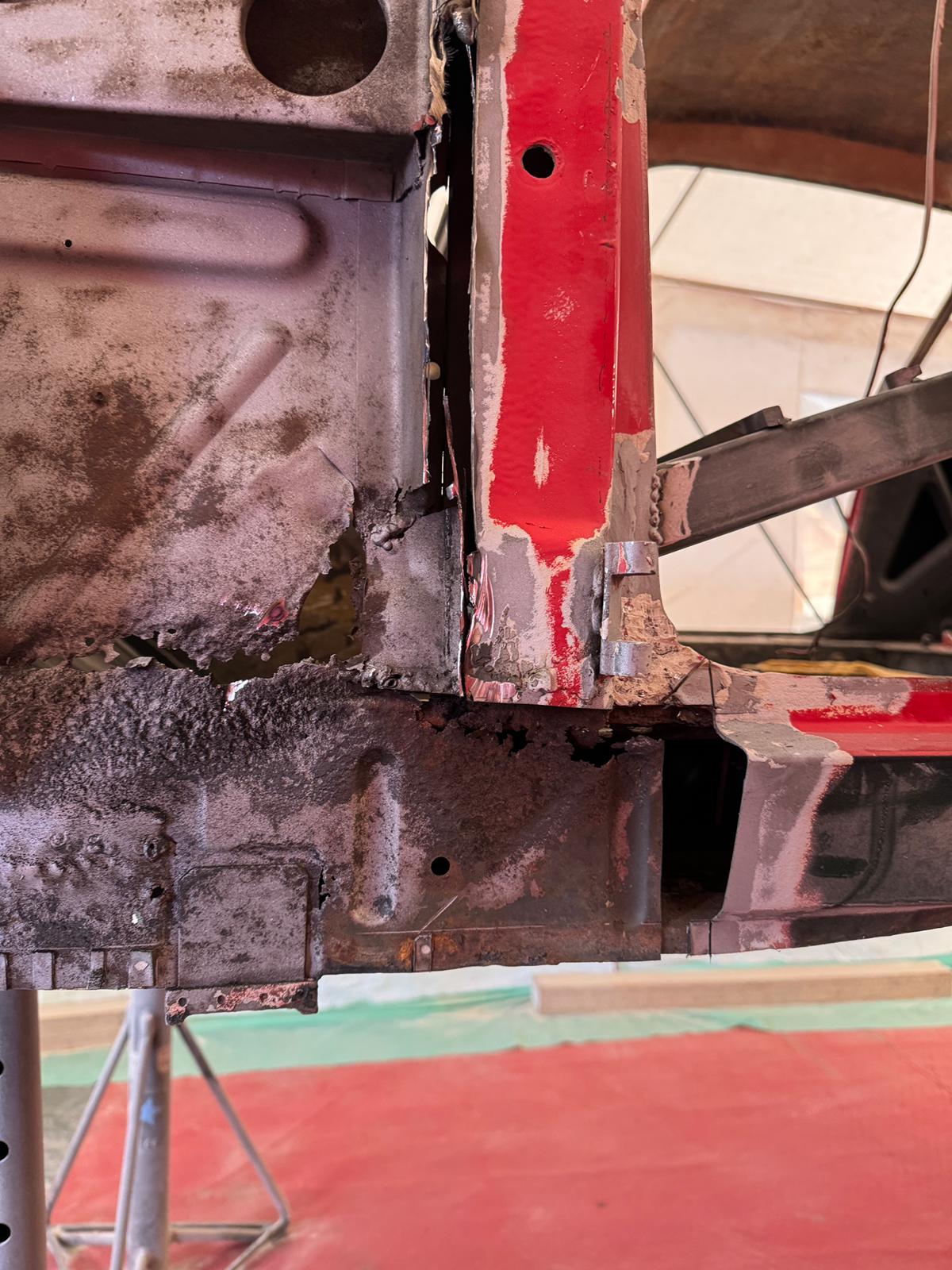 Start of the new Apillar. In the car was a very rough welded over pillar from a first series zagato do i copied the passengerside and mirrored it