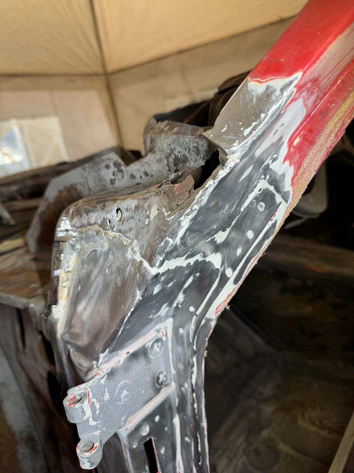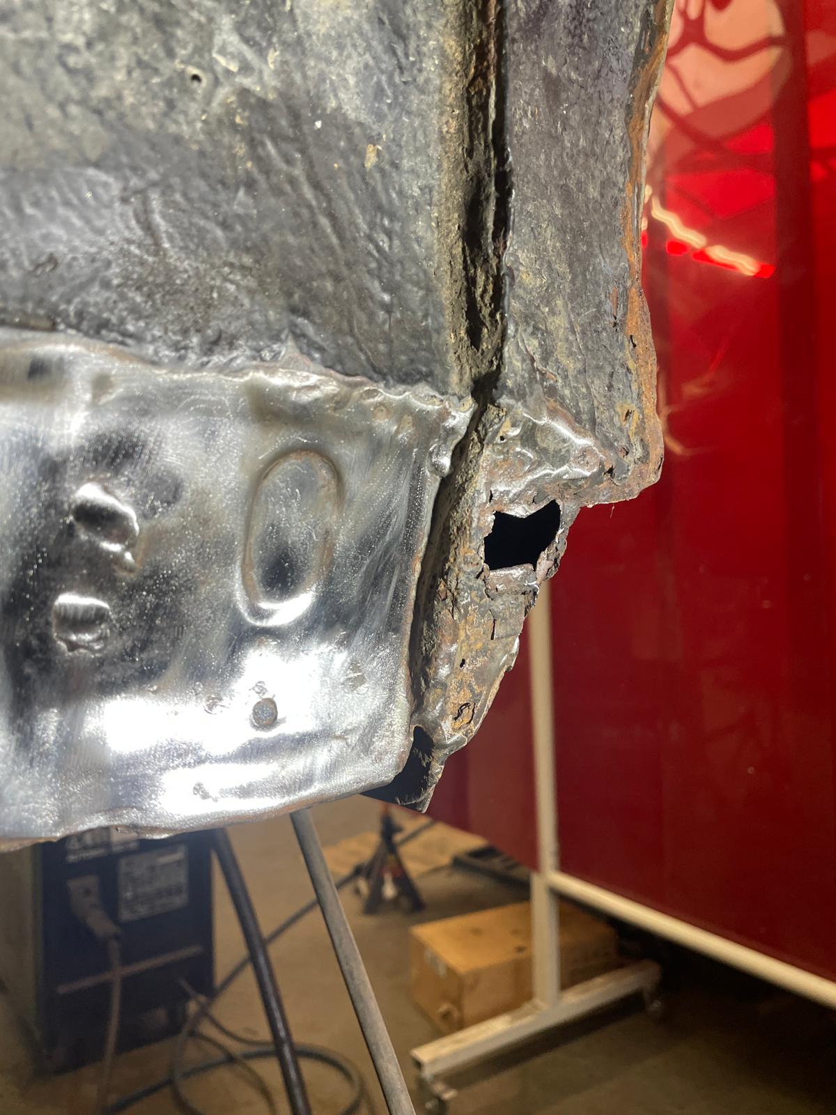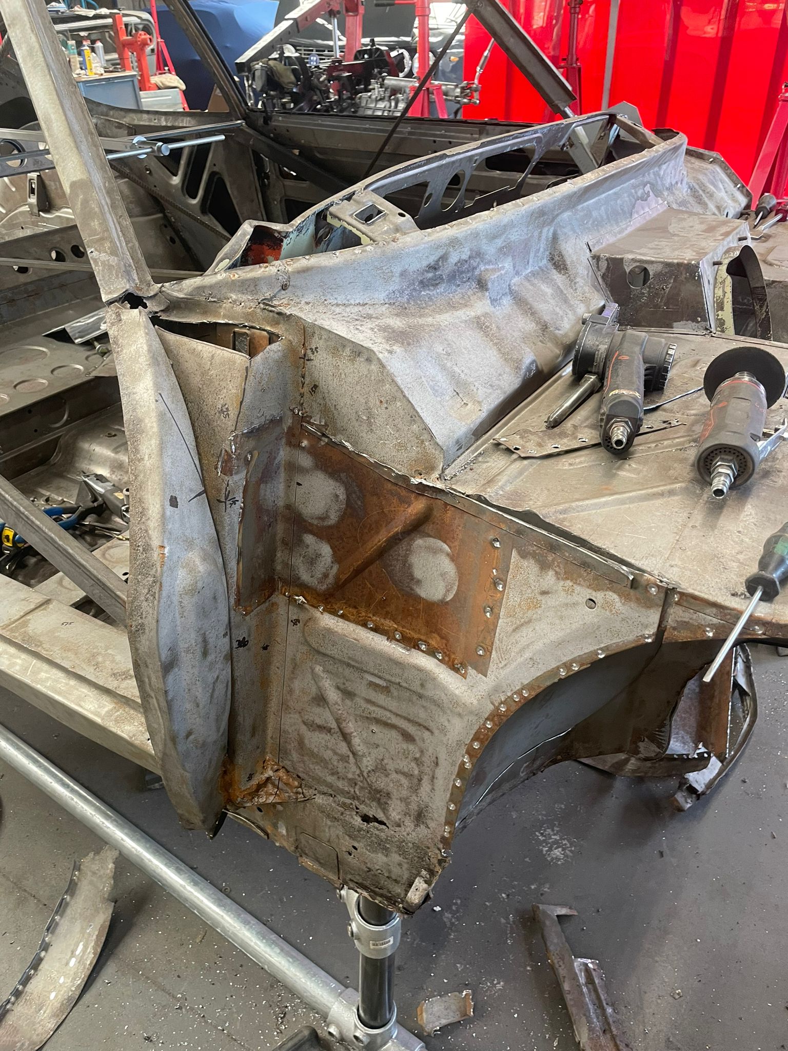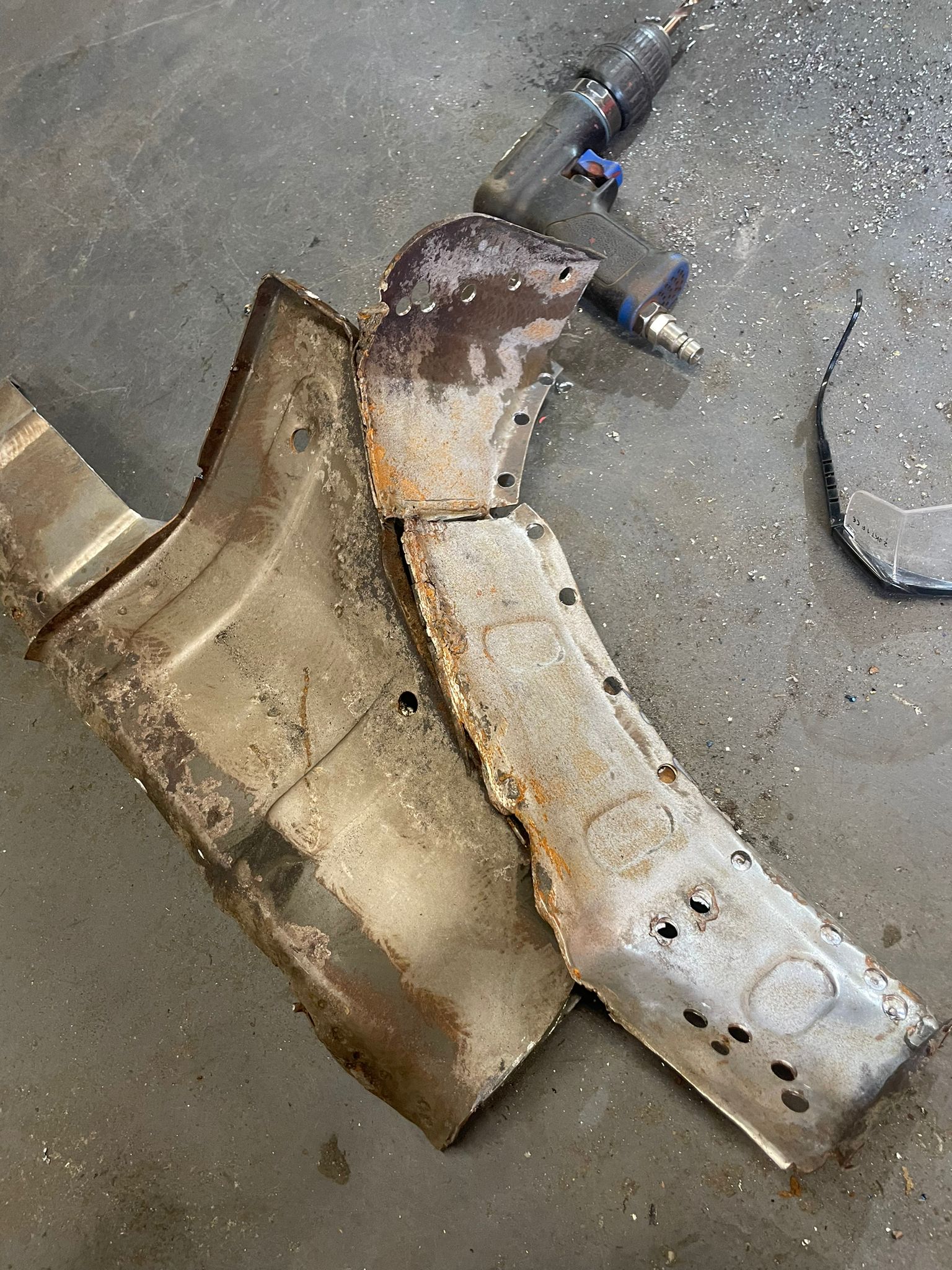The innerwing/chassisrail was broken loose so i drilled the spotwelds that were still attached to take it off completely