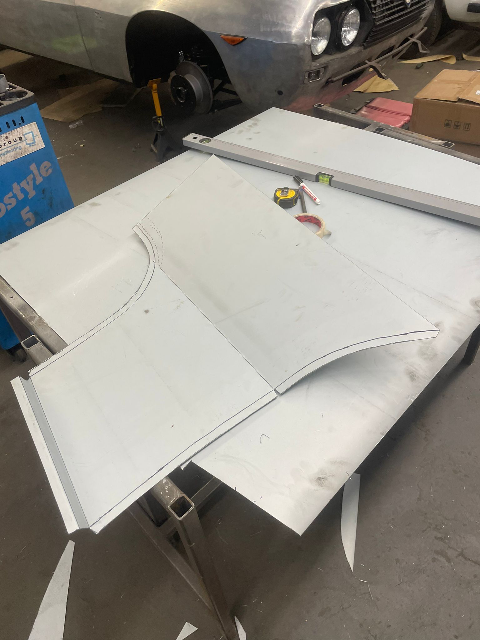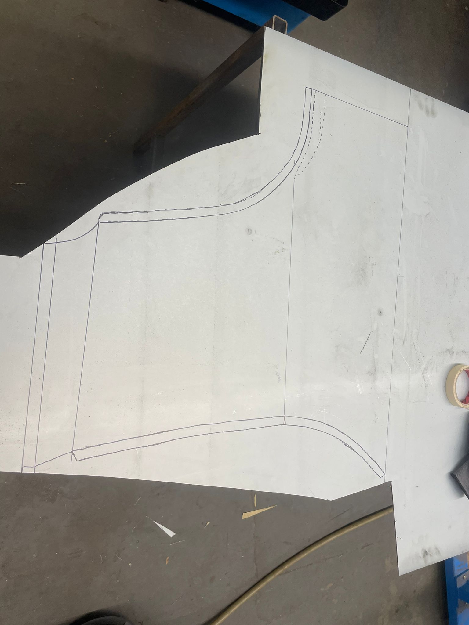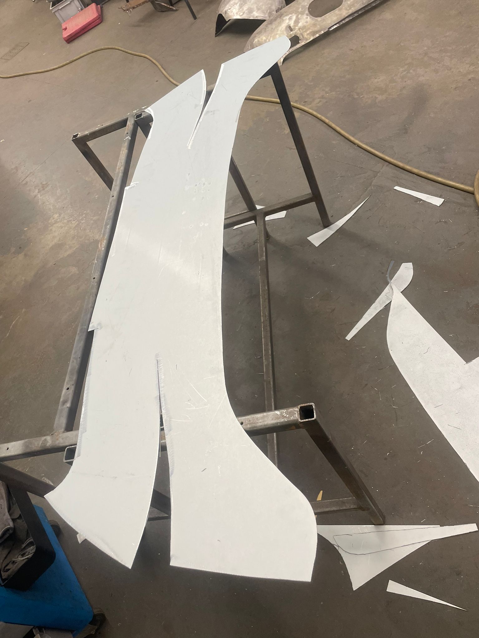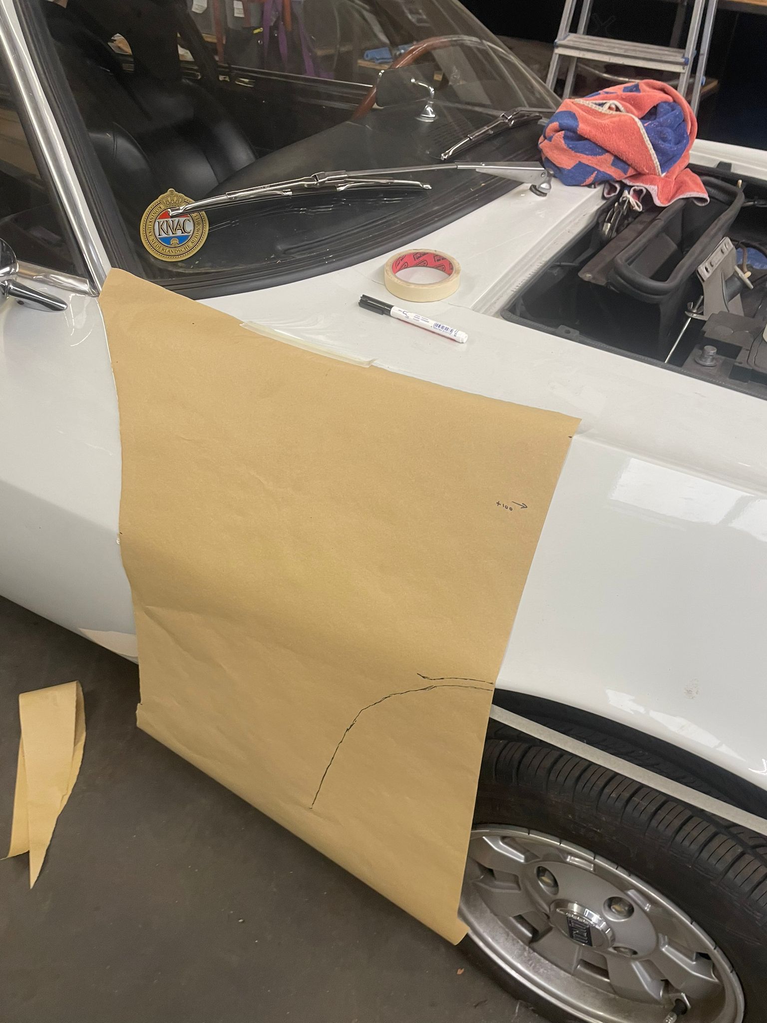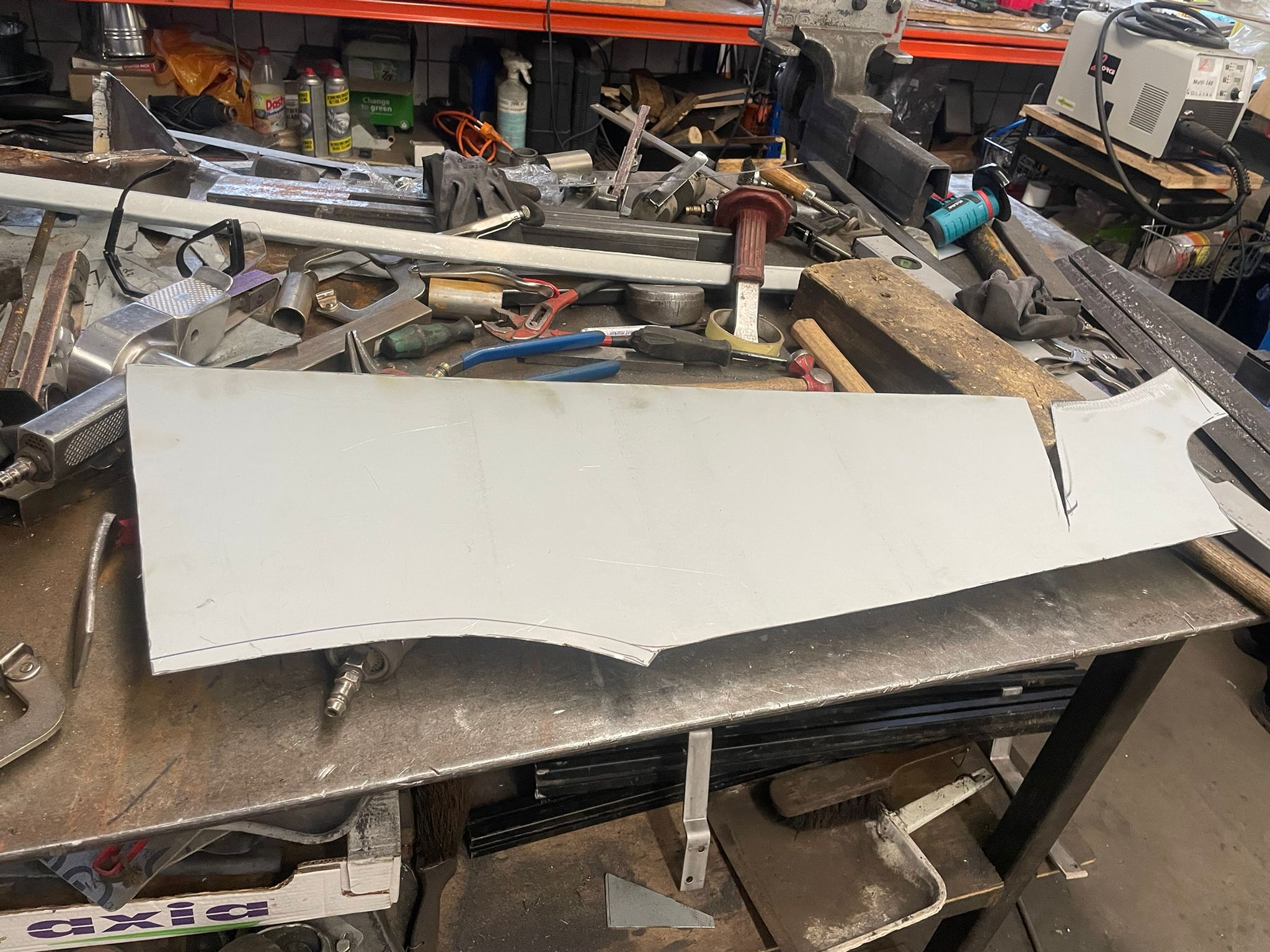 The end of the top needed to be a bit lower to line up with the door and the rearsection moved a little backwards. The exces now on top of the doorskin has some extra material to fold over the edge later on. The middle needed around 30mm added to it