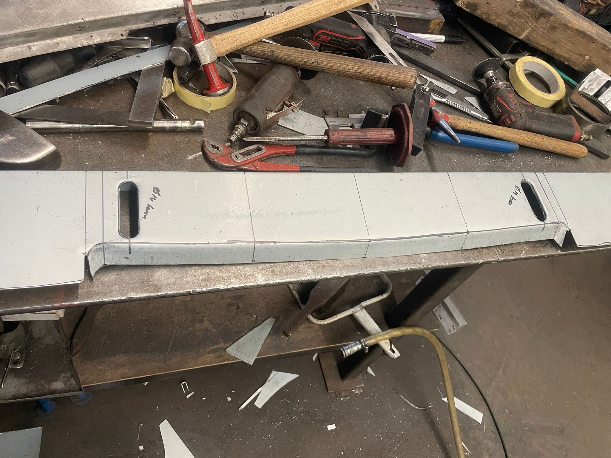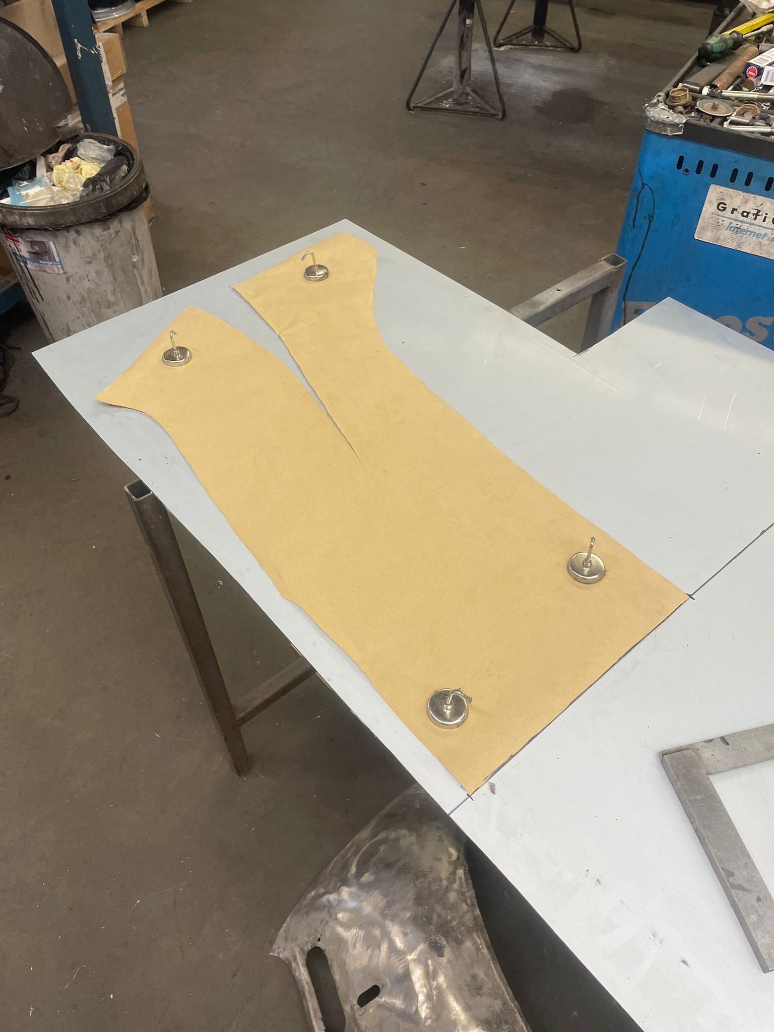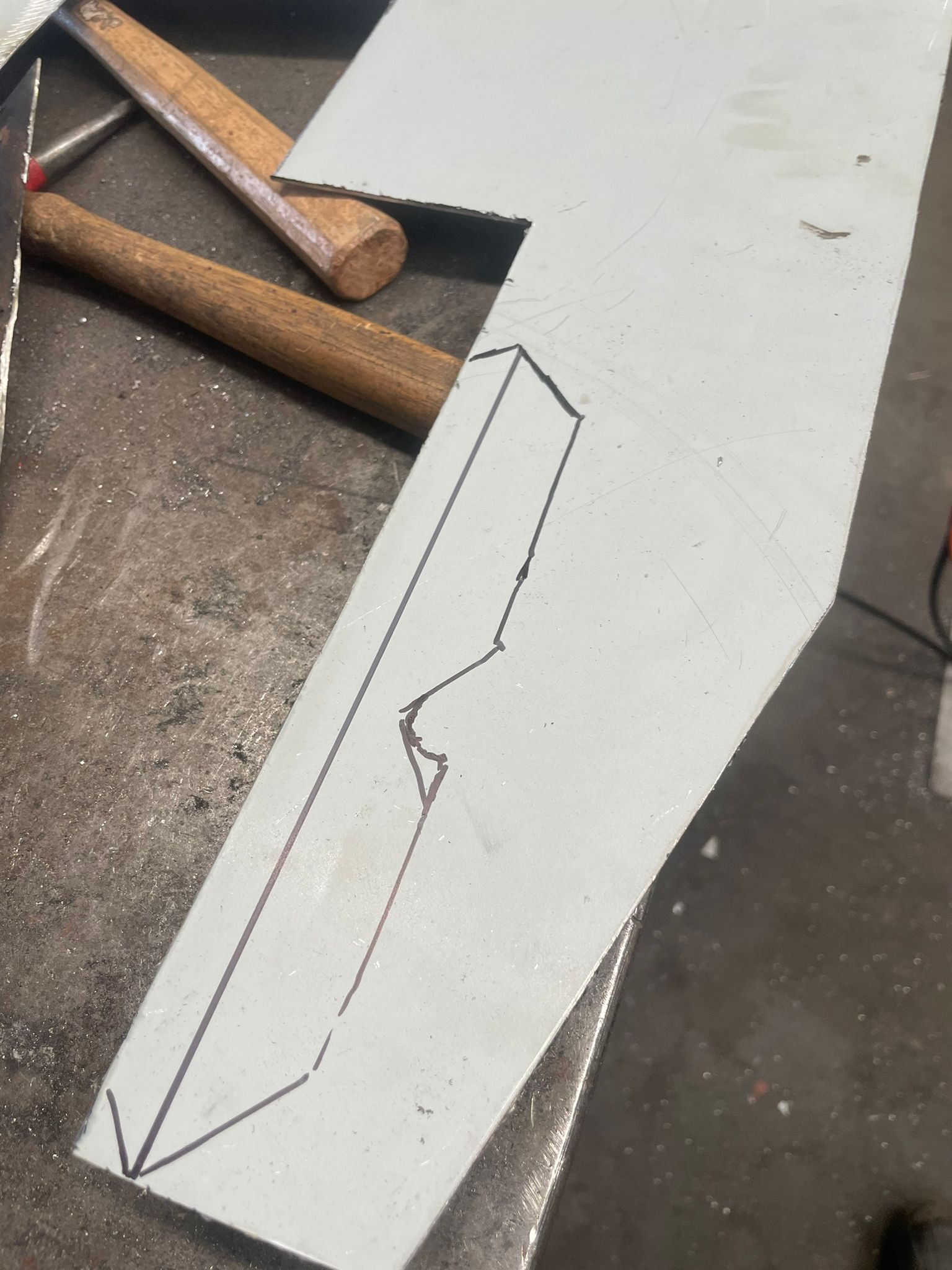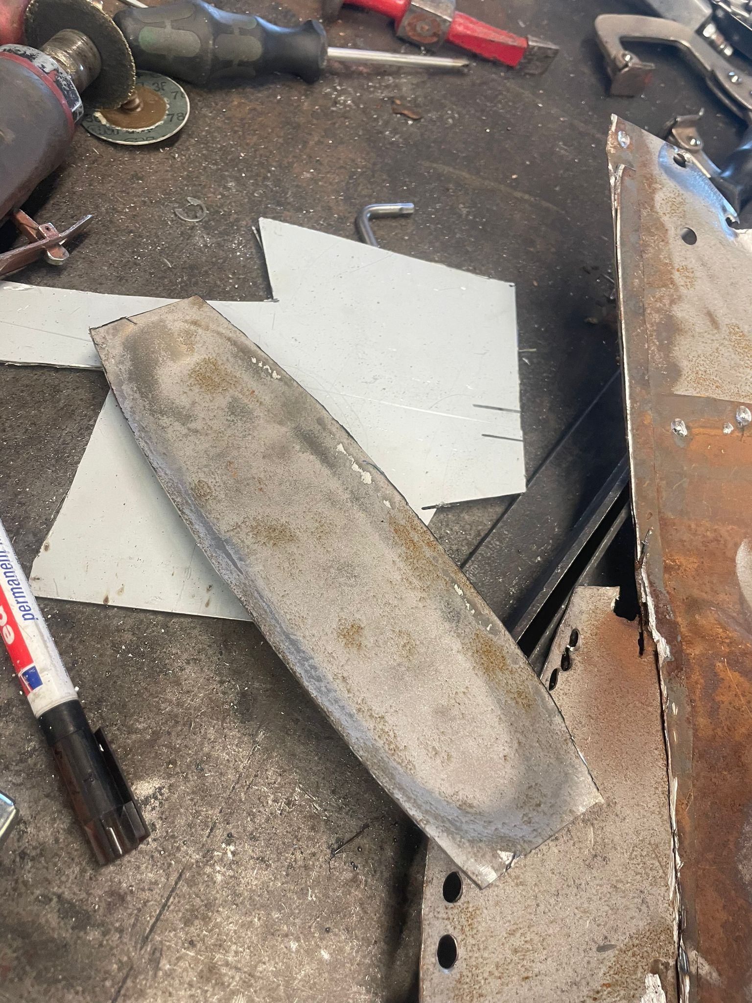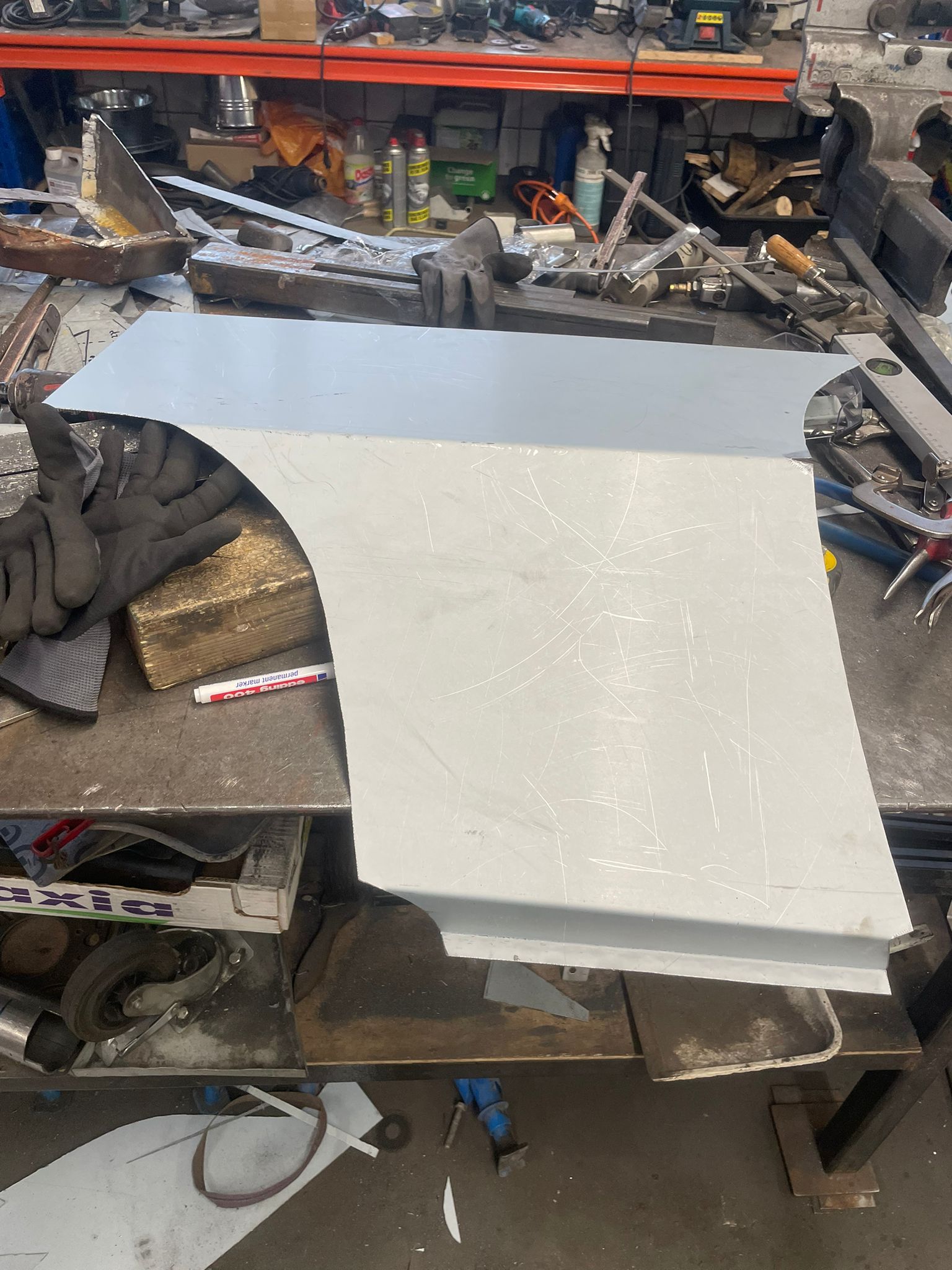 The end of the top needed to be a bit lower to line up with the door and the rearsection moved a little backwards. The exces now on top of the doorskin has some extra material to fold over the edge later on. The middle needed around 30mm added to it