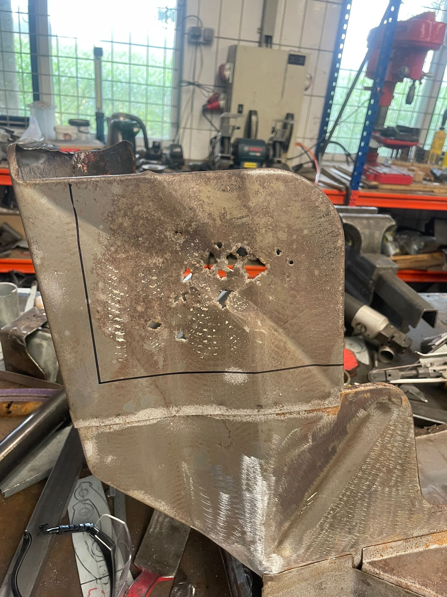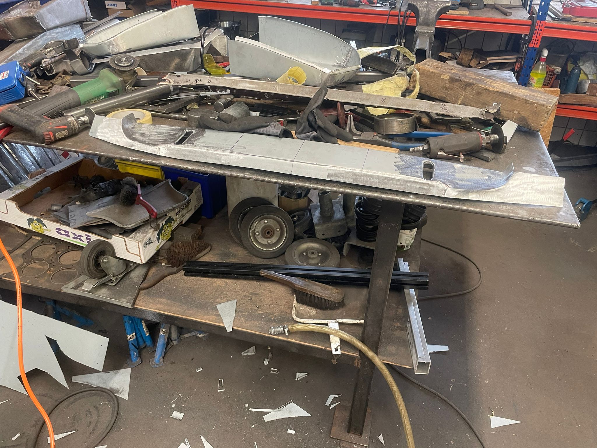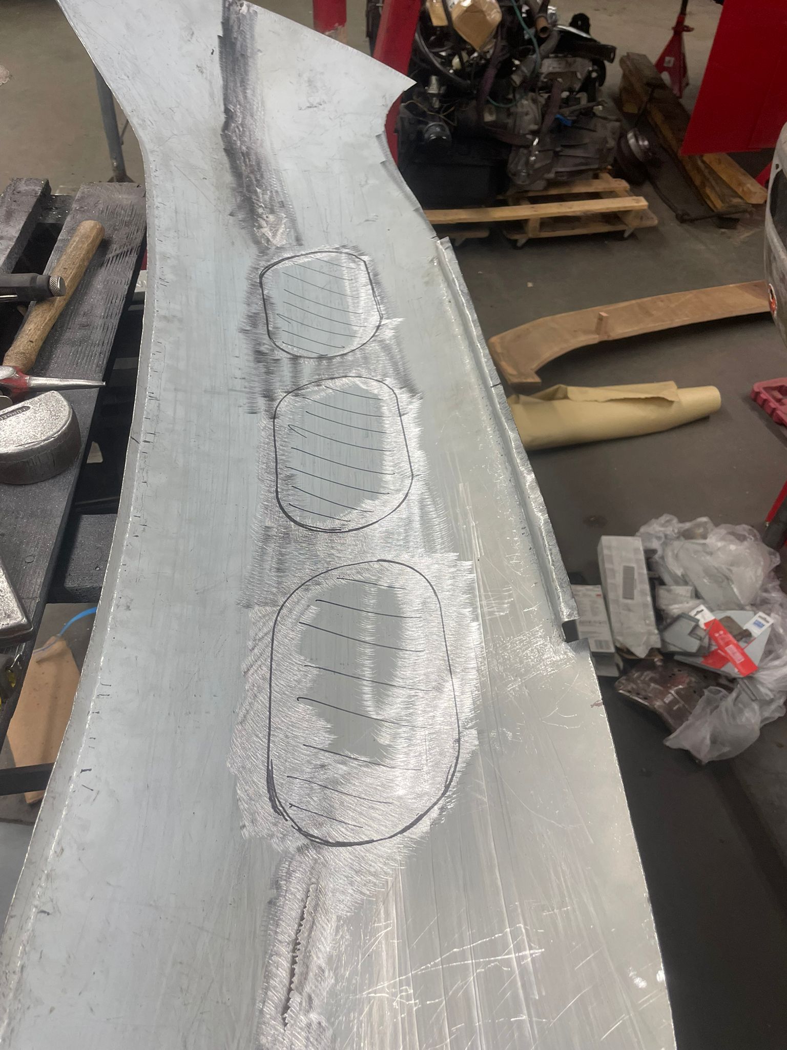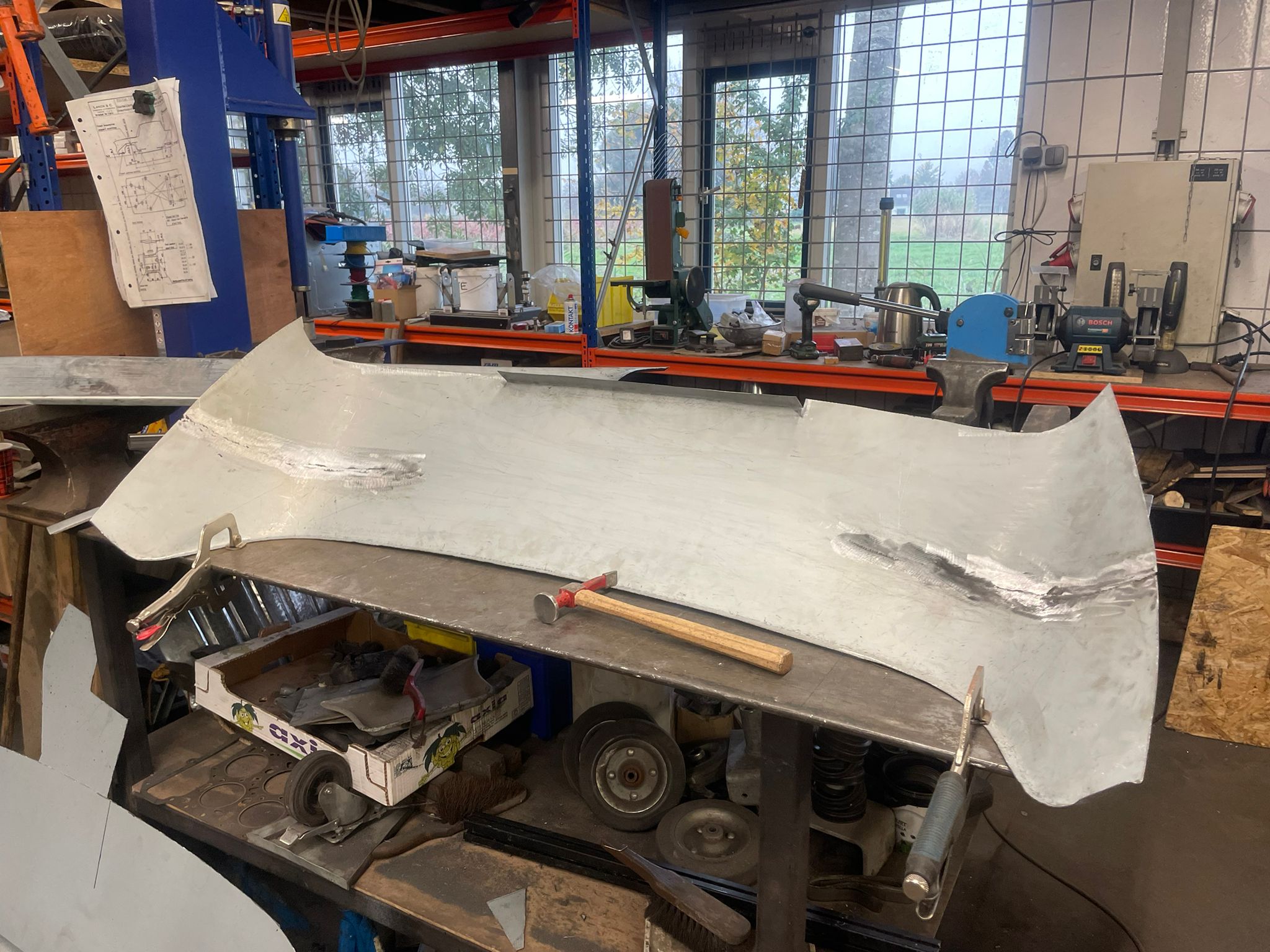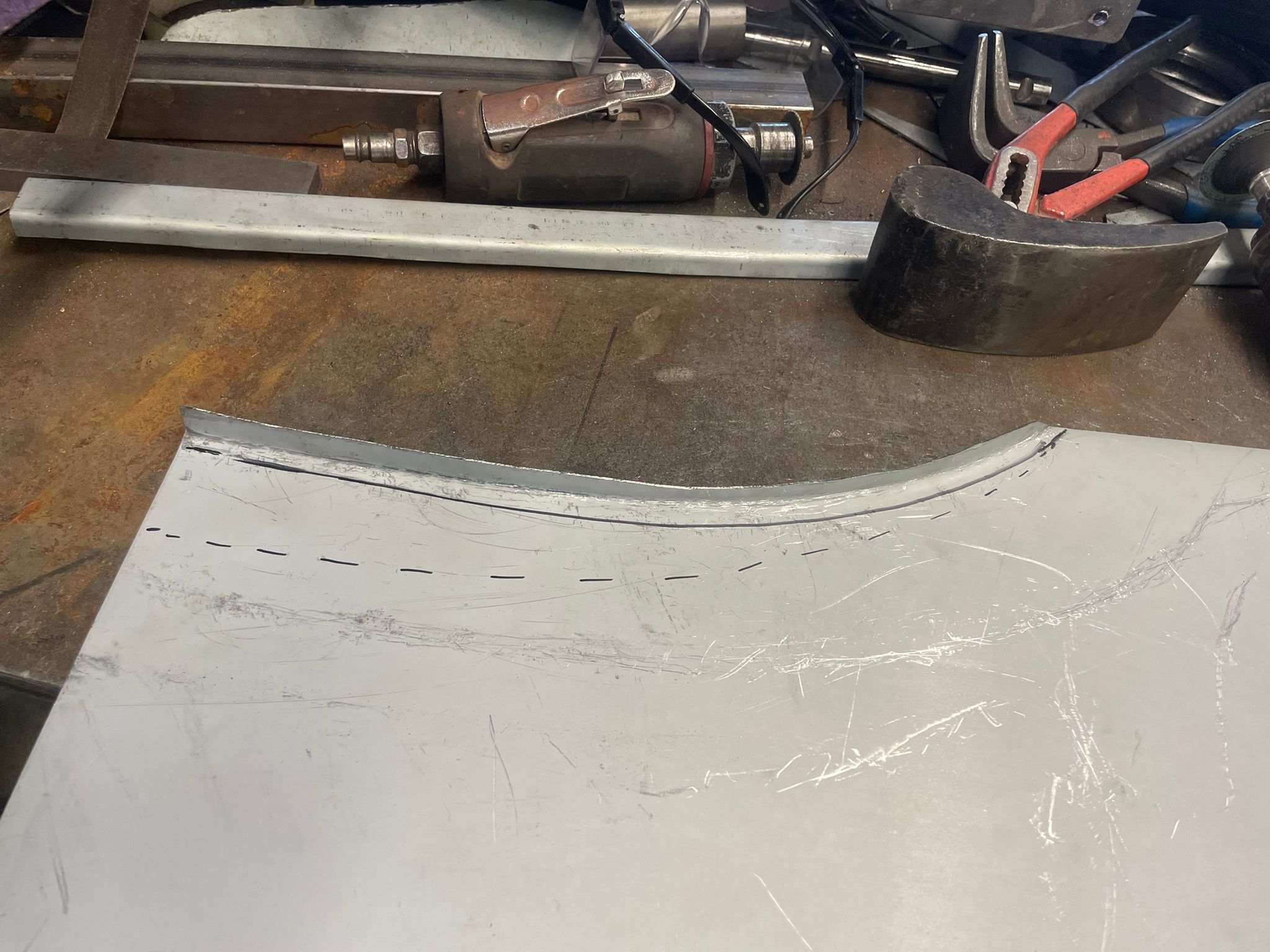The end of the top needed to be a bit lower to line up with the door and the rearsection moved a little backwards. The exces now on top of the doorskin has some extra material to fold over the edge later on. The middle needed around 30mm added to it