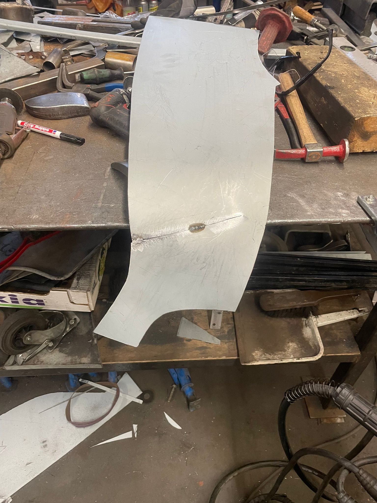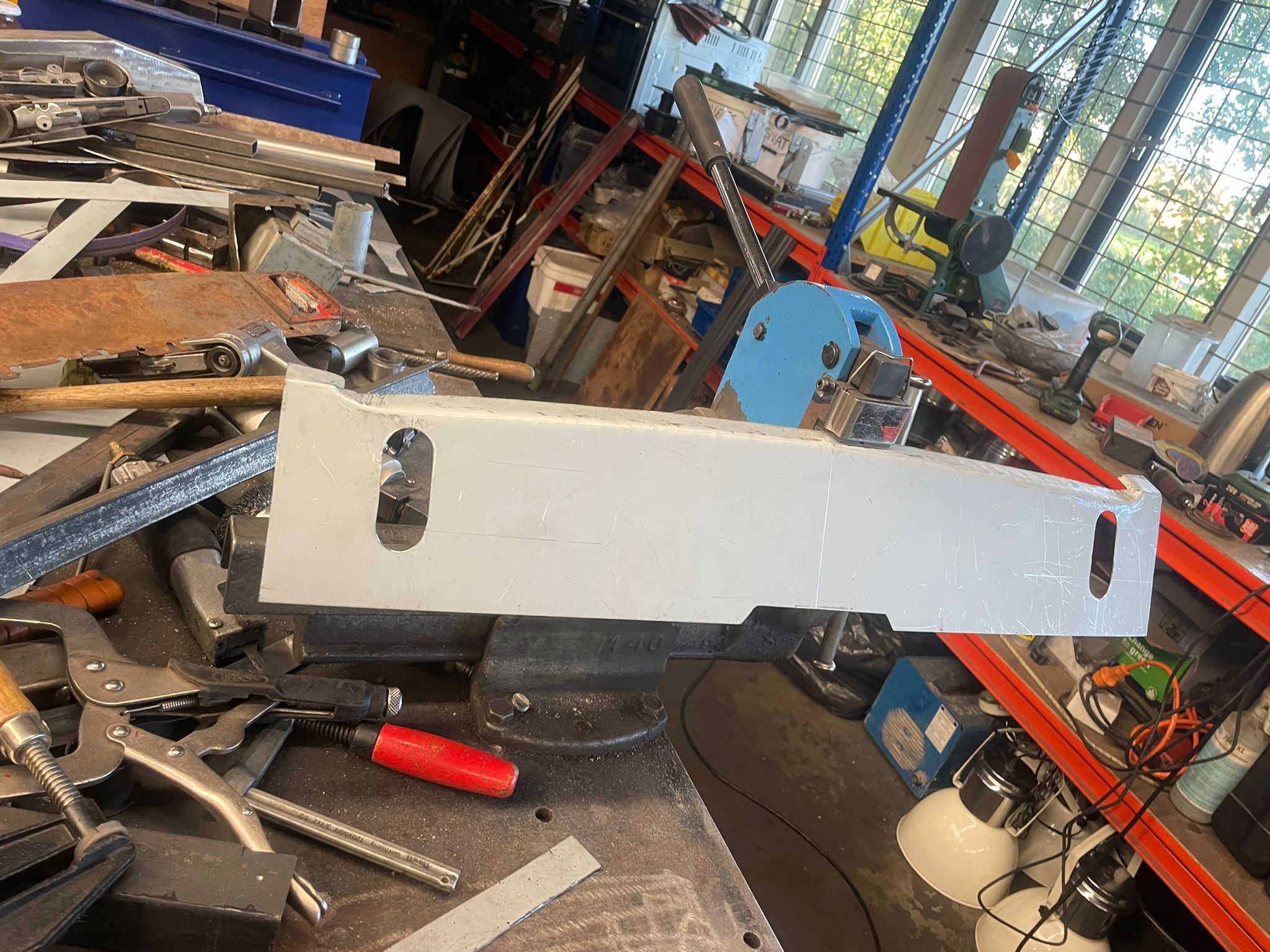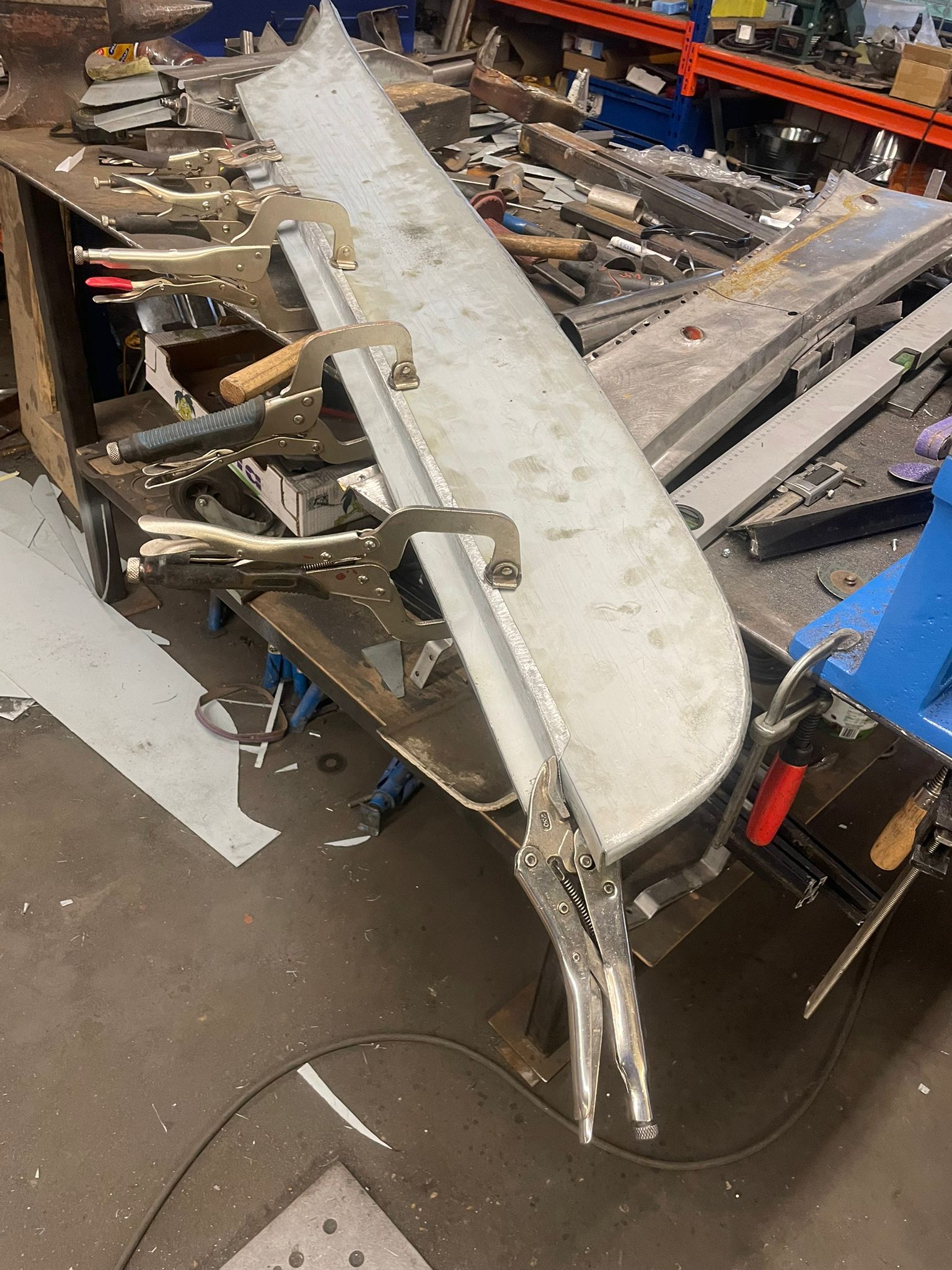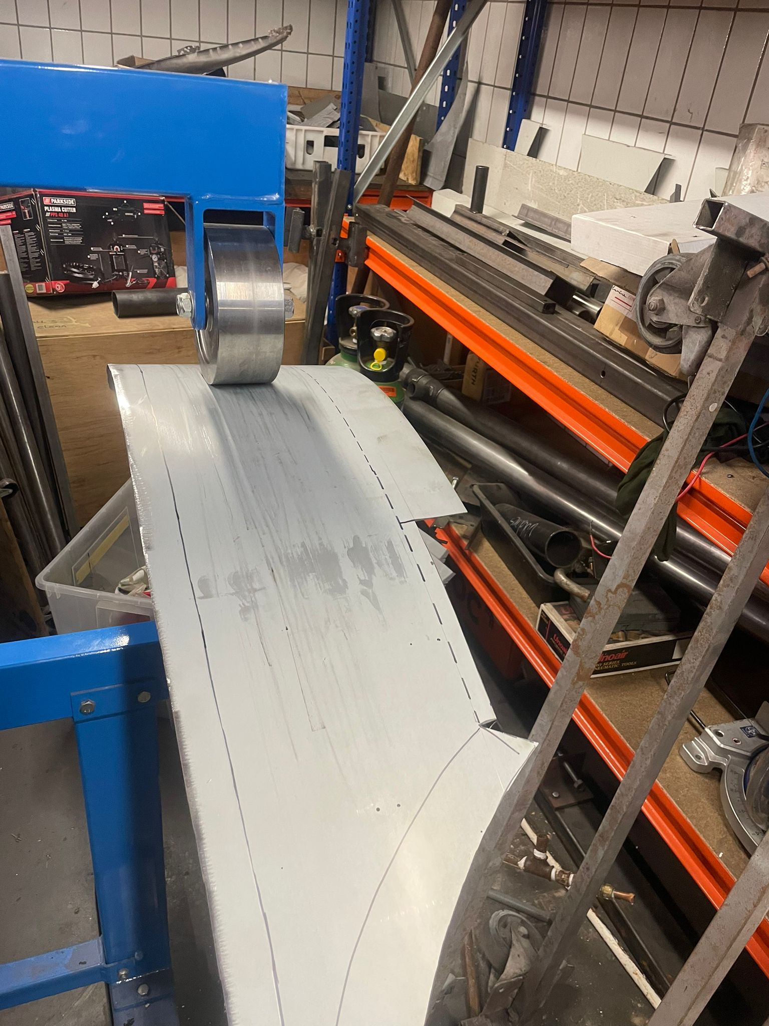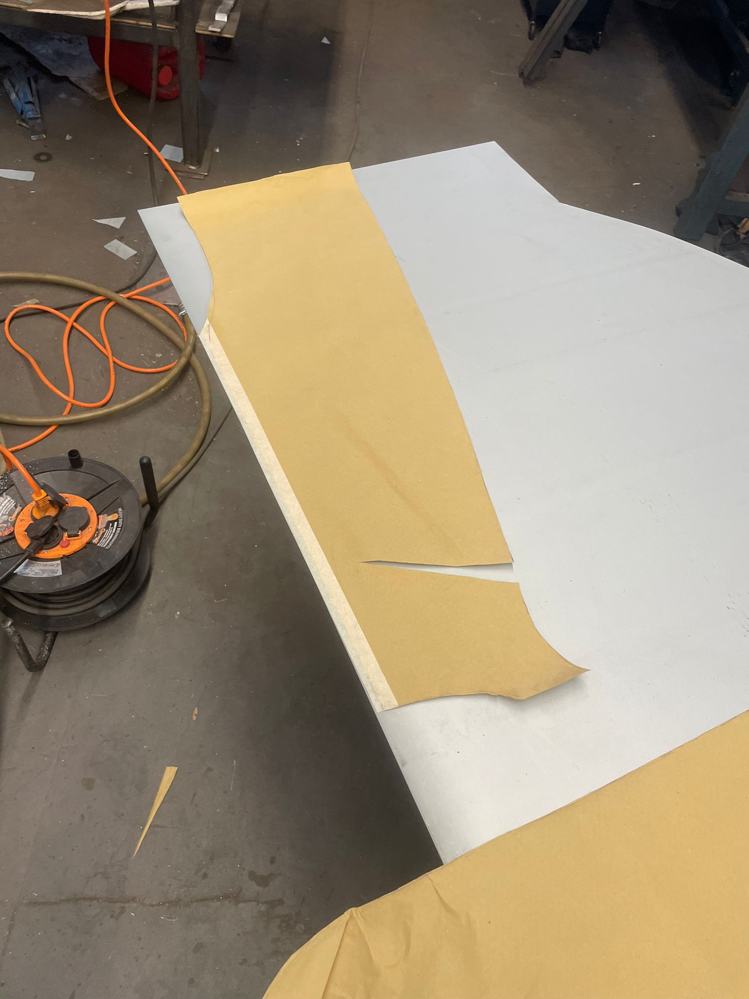 The end of the top needed to be a bit lower to line up with the door and the rearsection moved a little backwards. The exces now on top of the doorskin has some extra material to fold over the edge later on. The middle needed around 30mm added to it