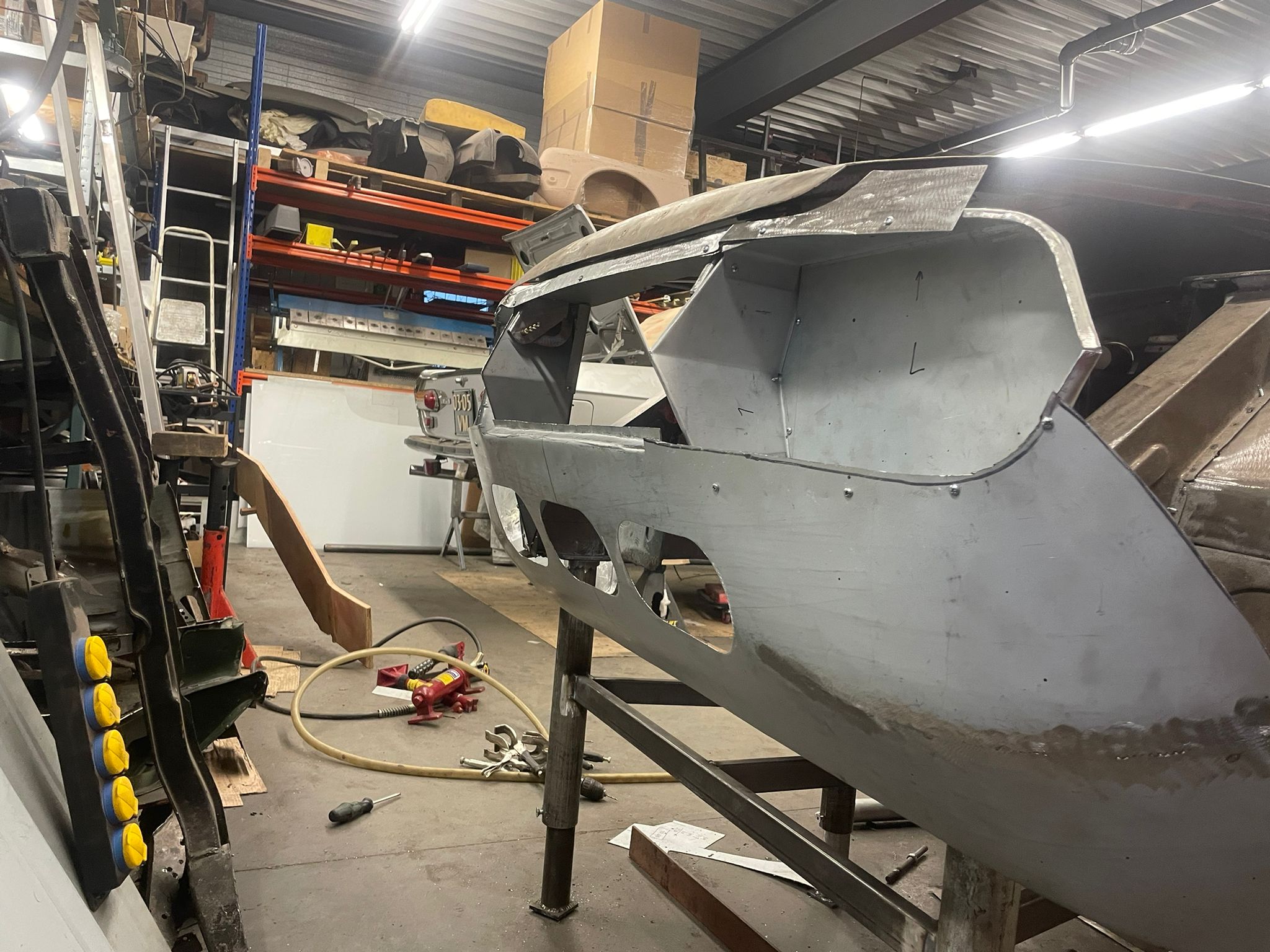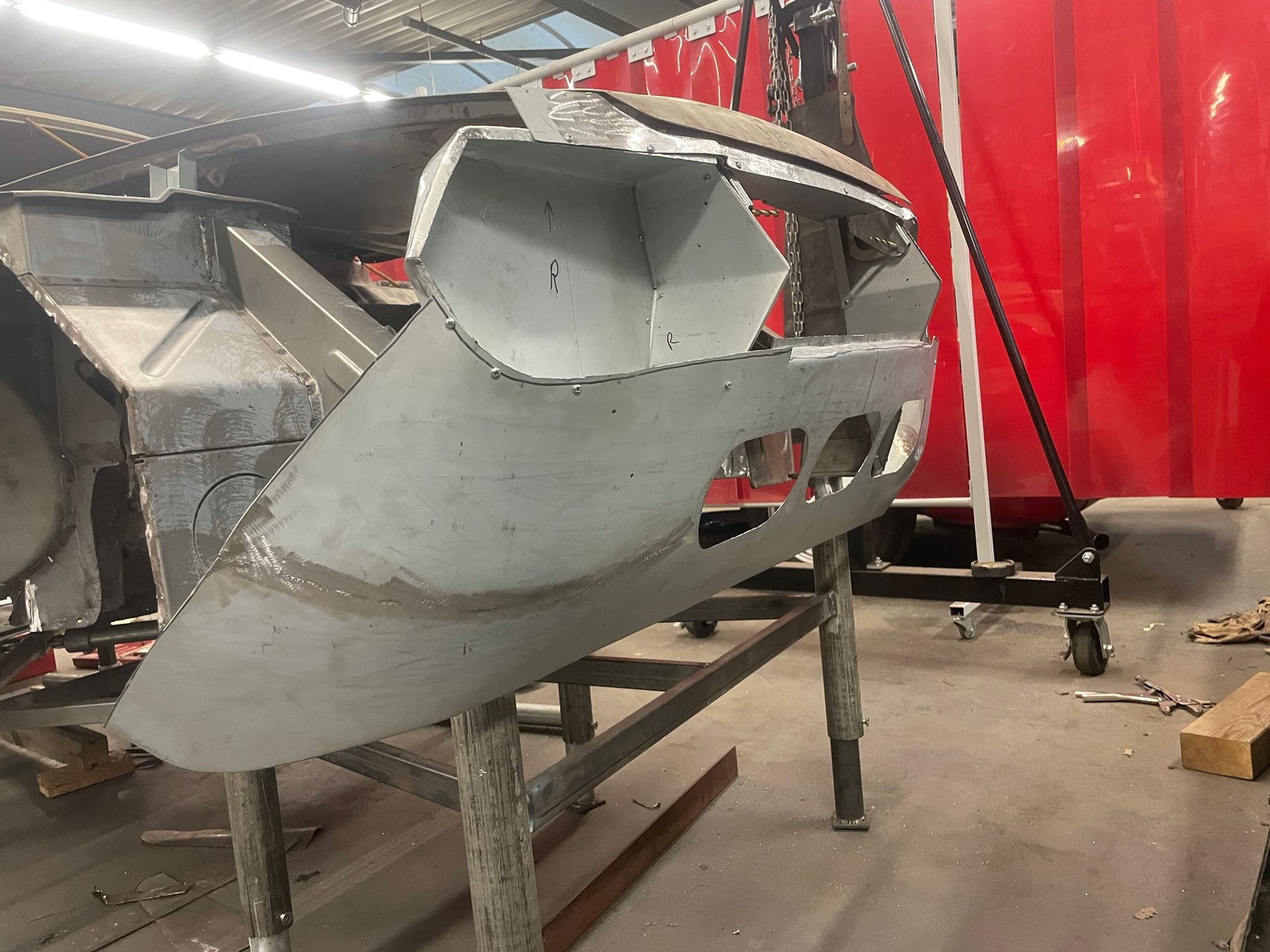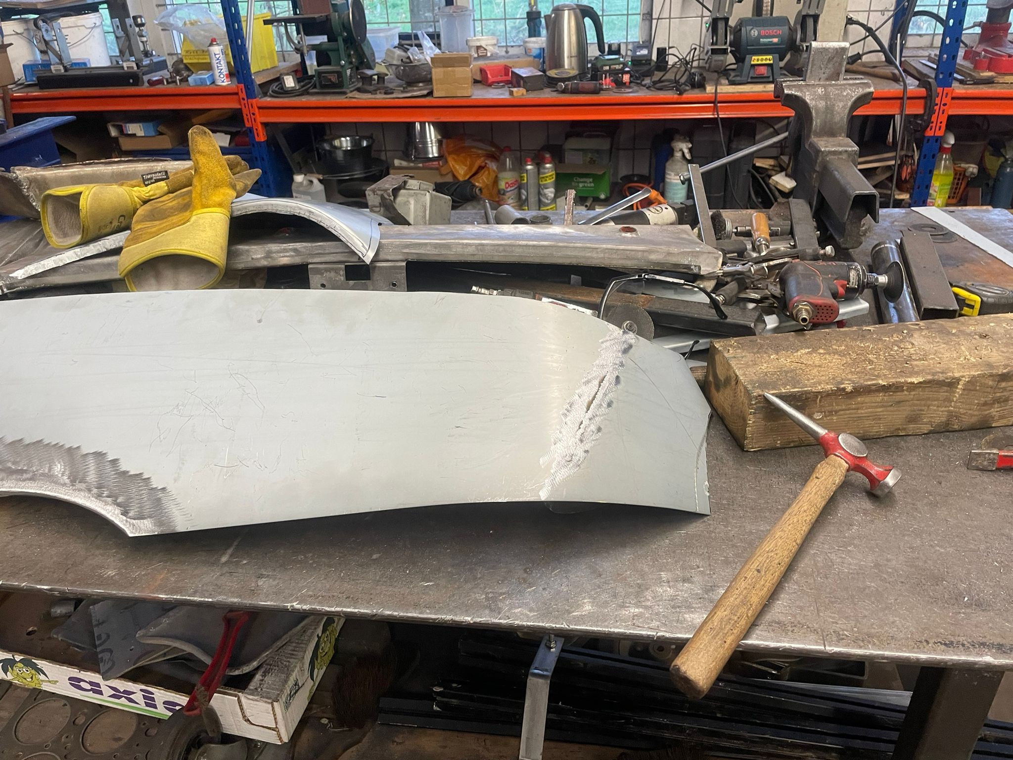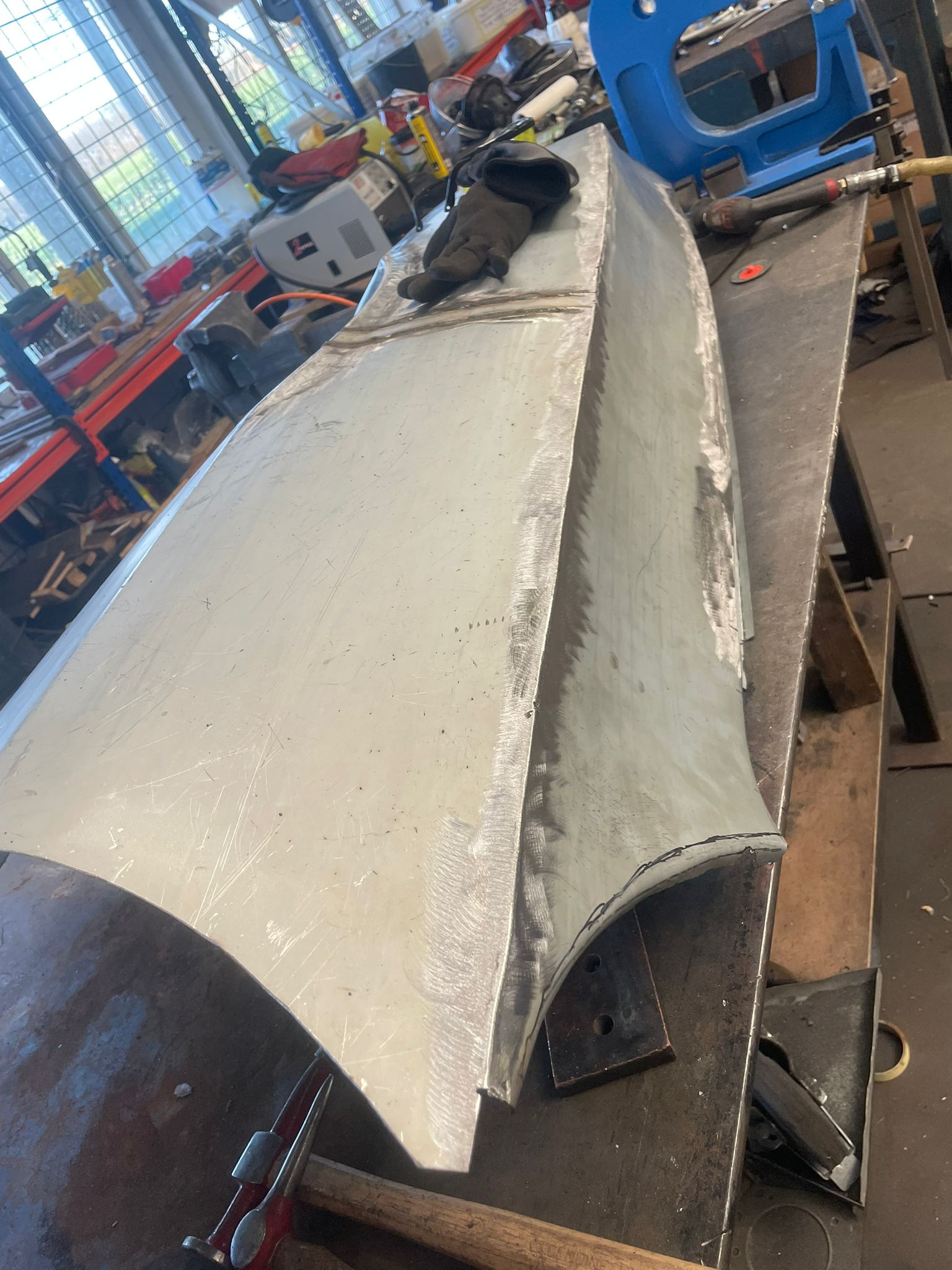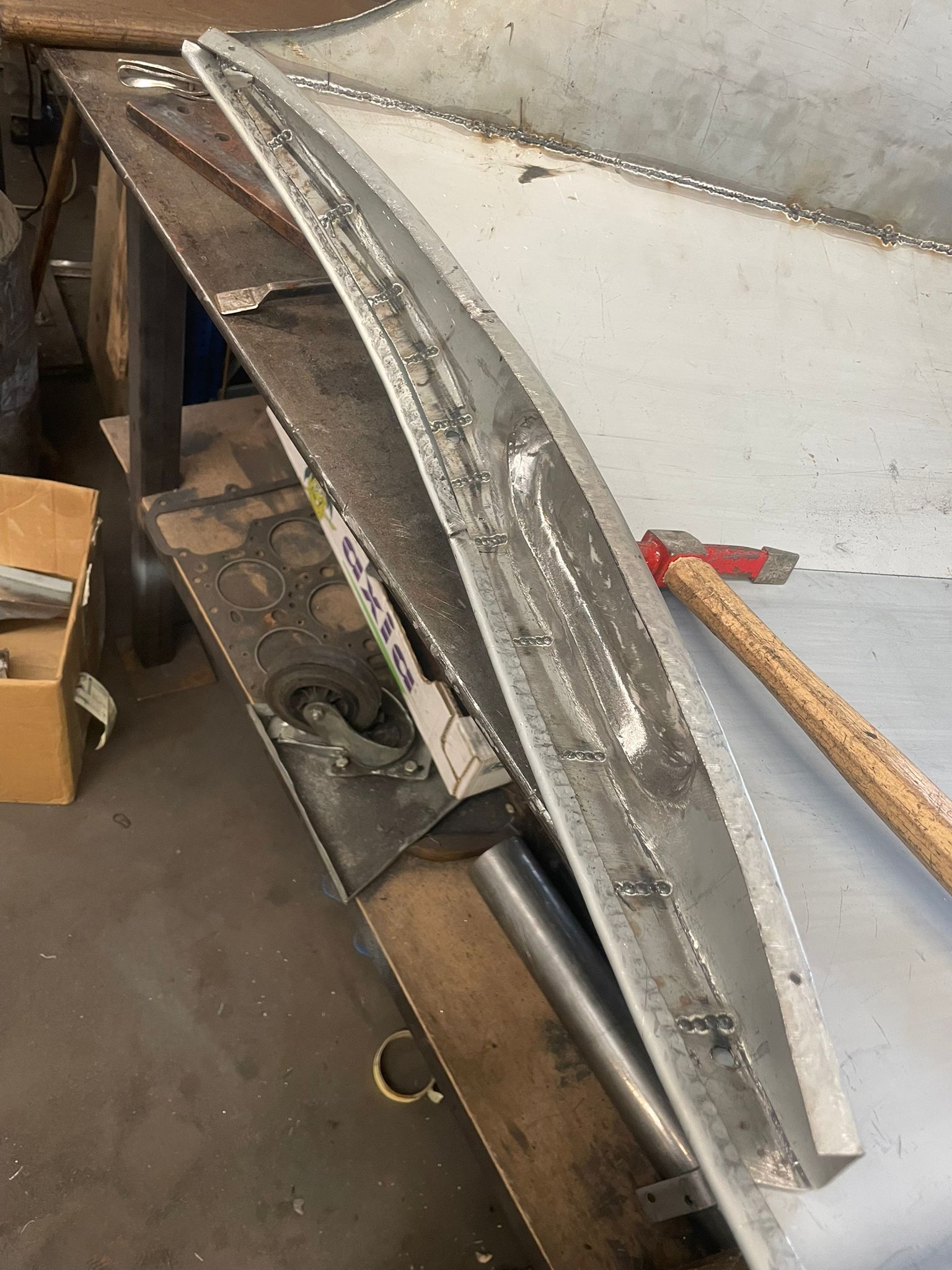 The end of the top needed to be a bit lower to line up with the door and the rearsection moved a little backwards. The exces now on top of the doorskin has some extra material to fold over the edge later on. The middle needed around 30mm added to it