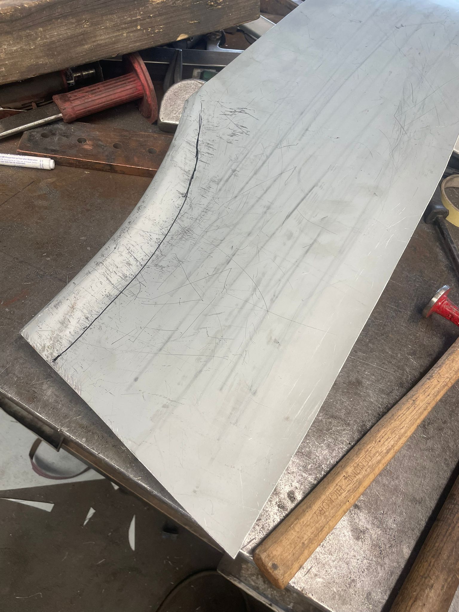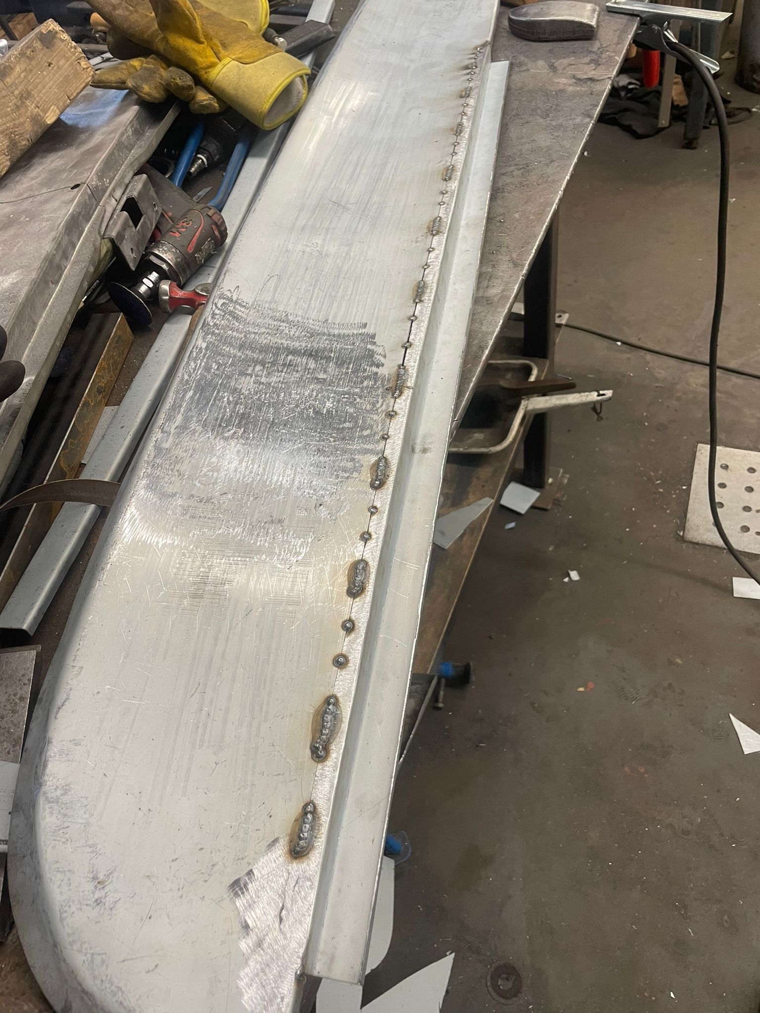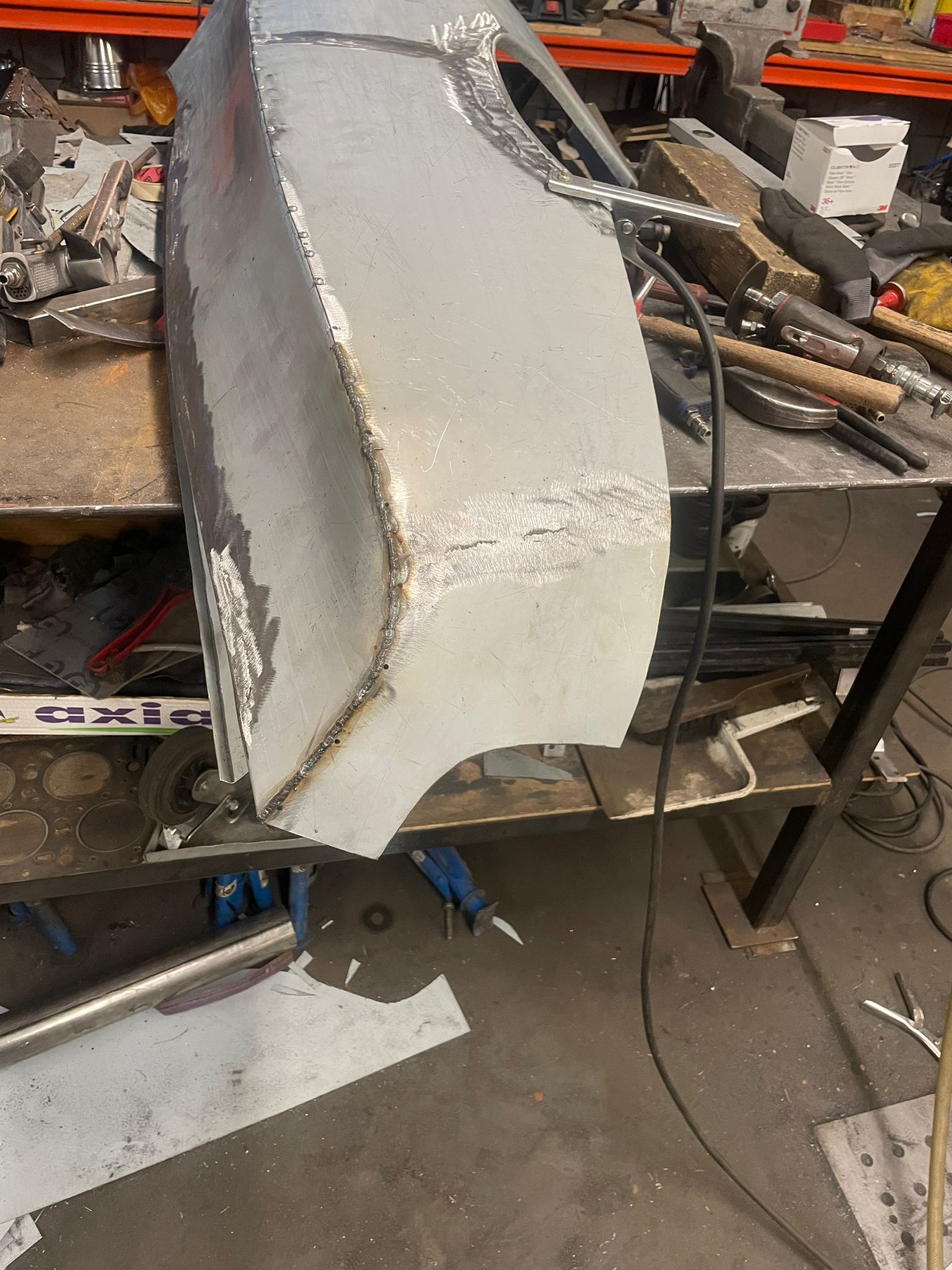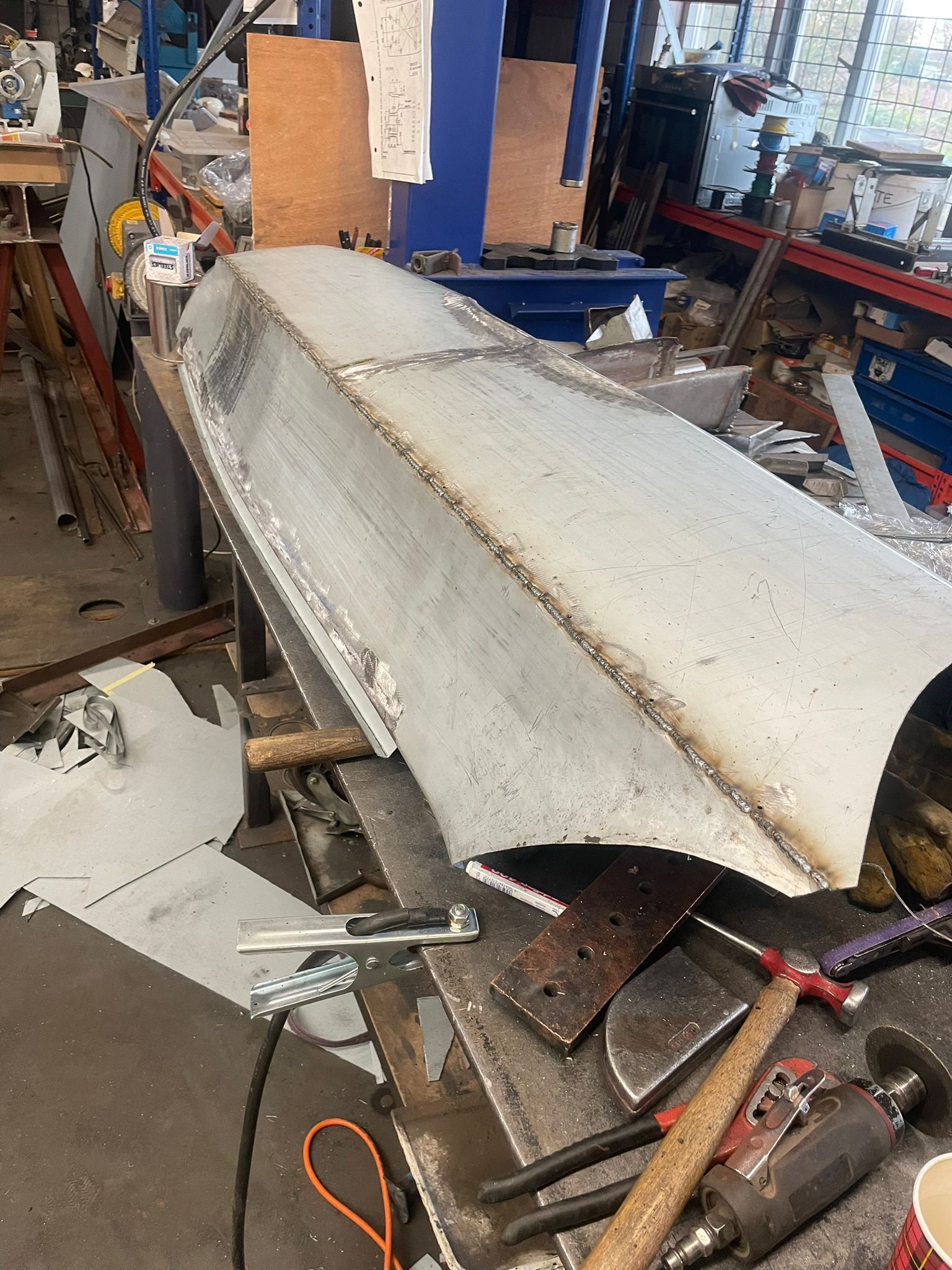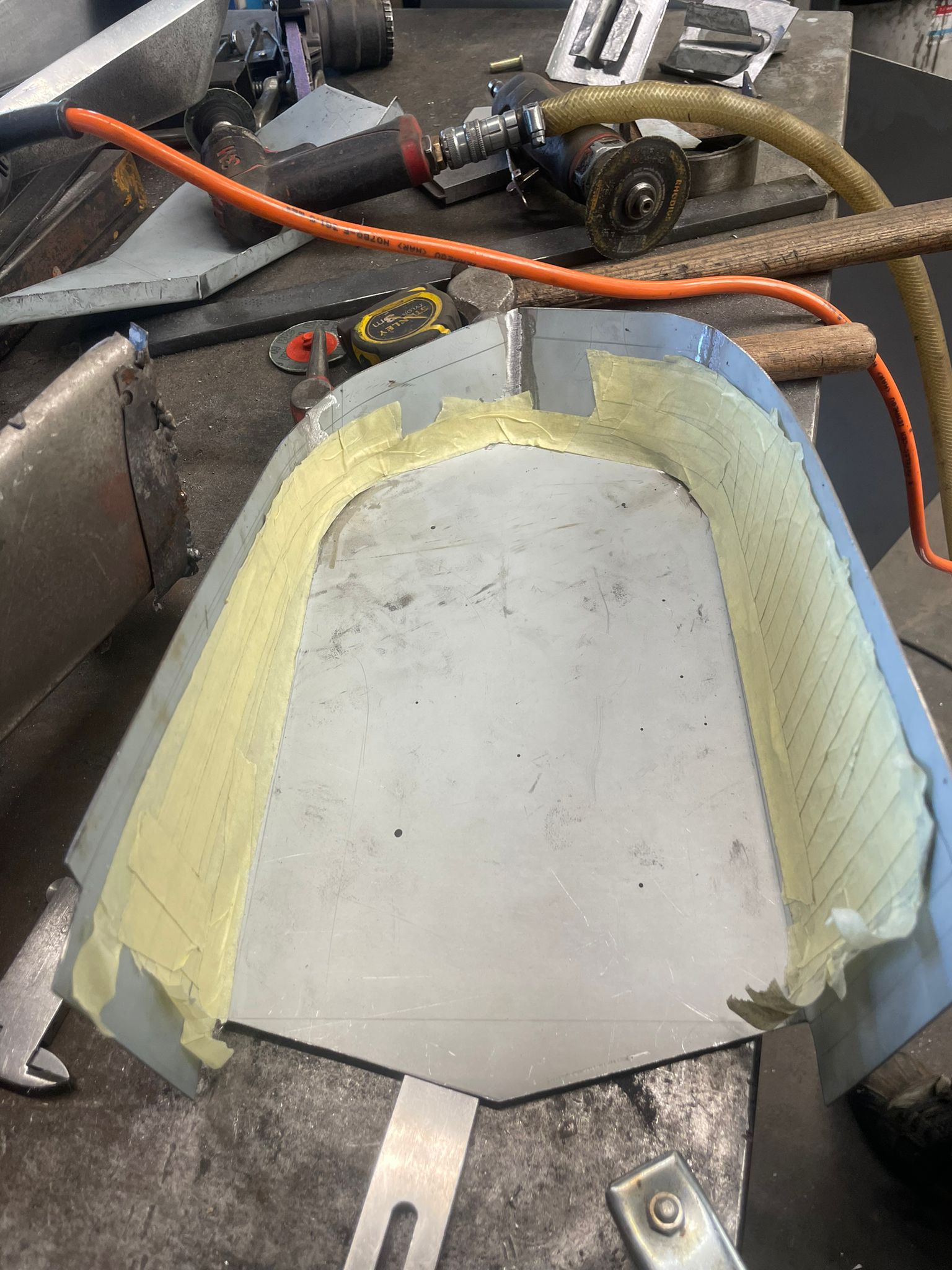 The end of the top needed to be a bit lower to line up with the door and the rearsection moved a little backwards. The exces now on top of the doorskin has some extra material to fold over the edge later on. The middle needed around 30mm added to it