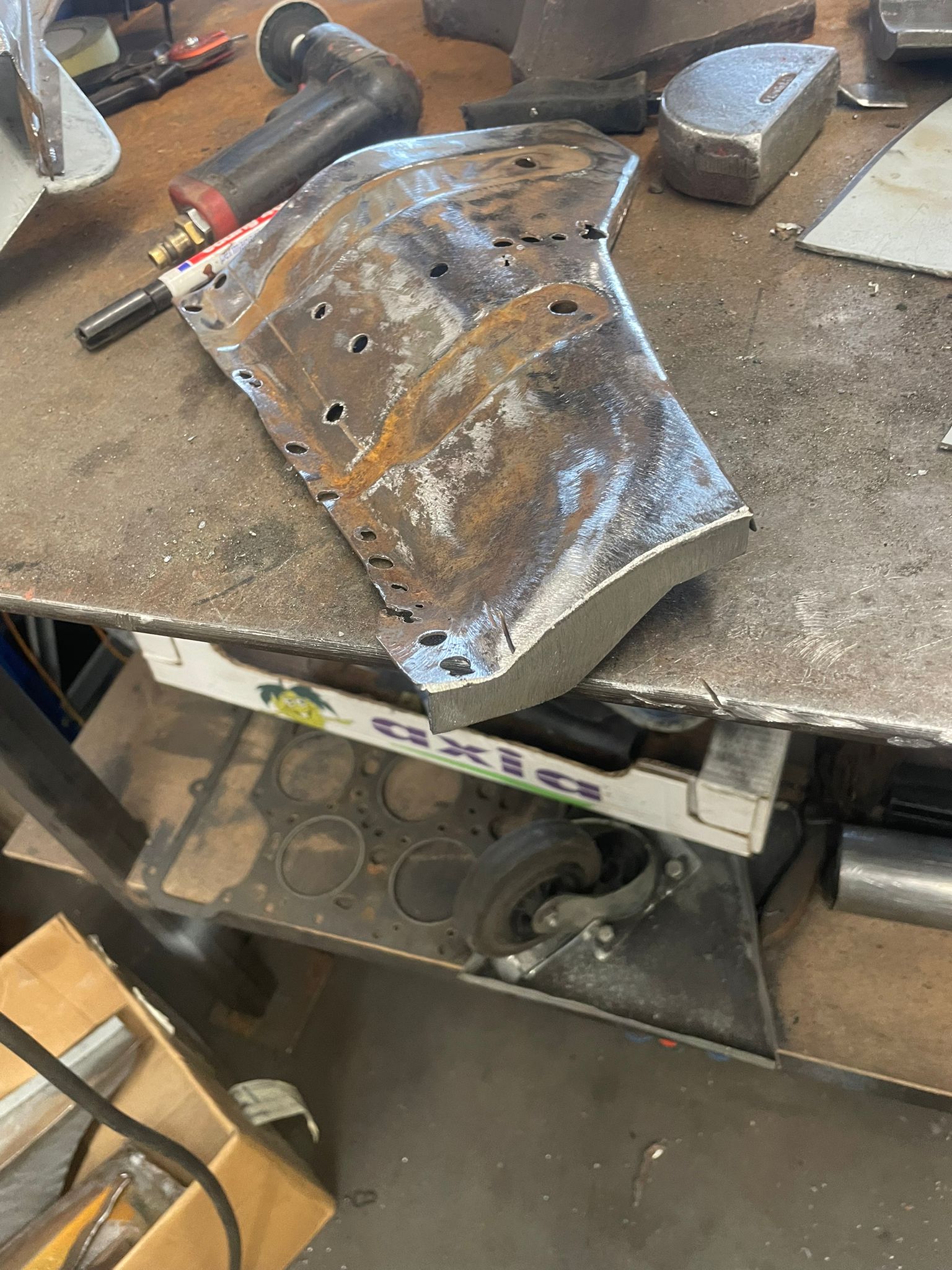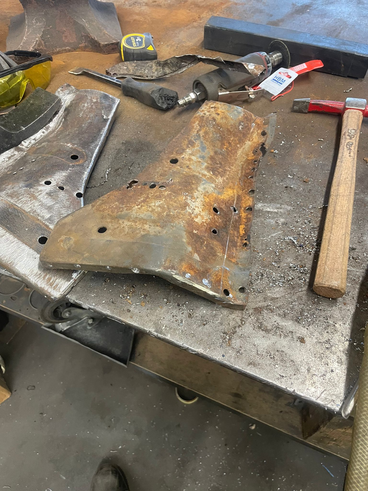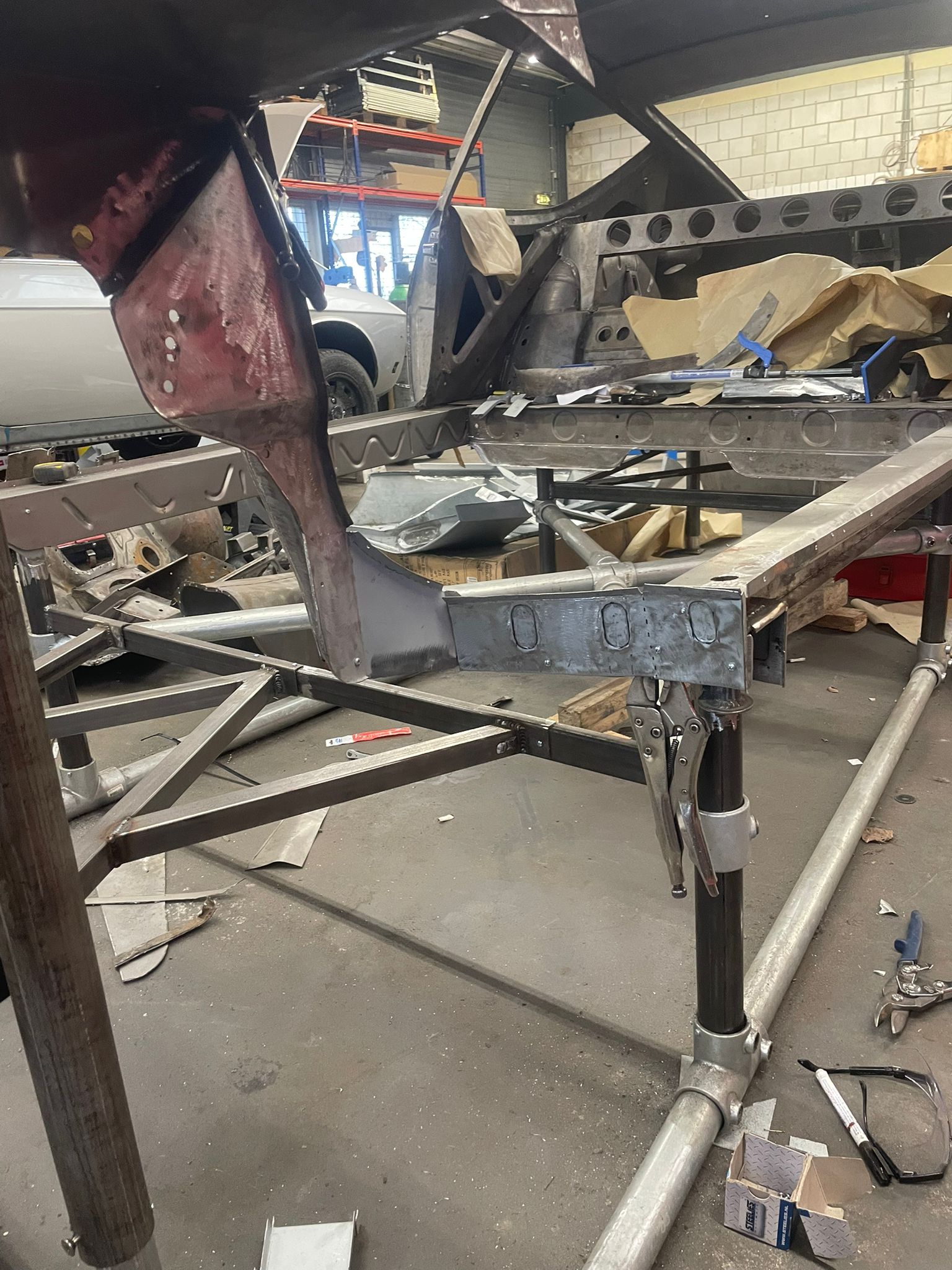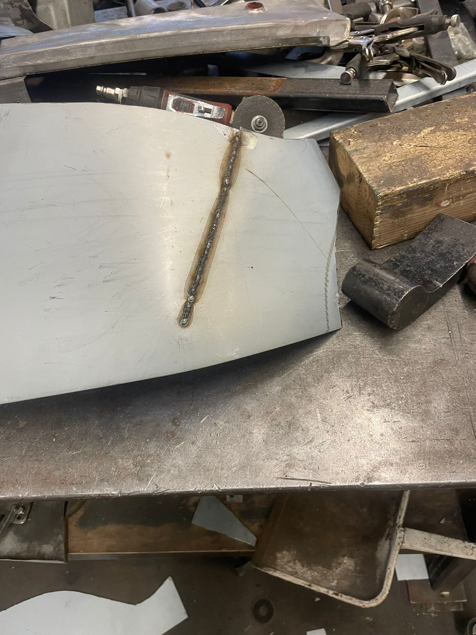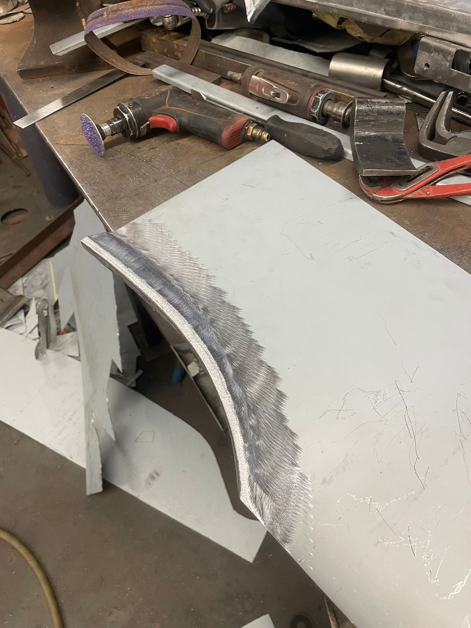 The end of the top needed to be a bit lower to line up with the door and the rearsection moved a little backwards. The exces now on top of the doorskin has some extra material to fold over the edge later on. The middle needed around 30mm added to it