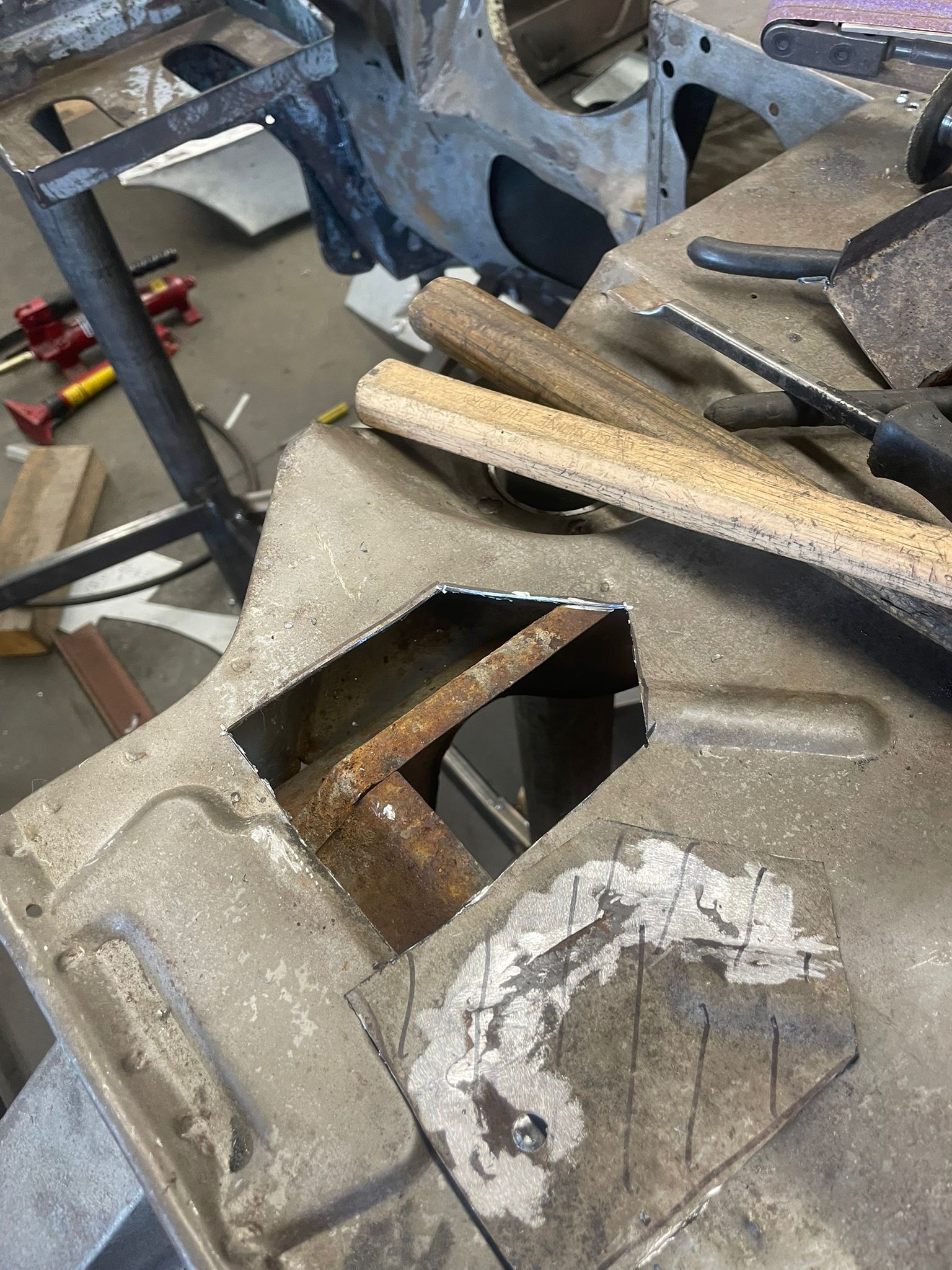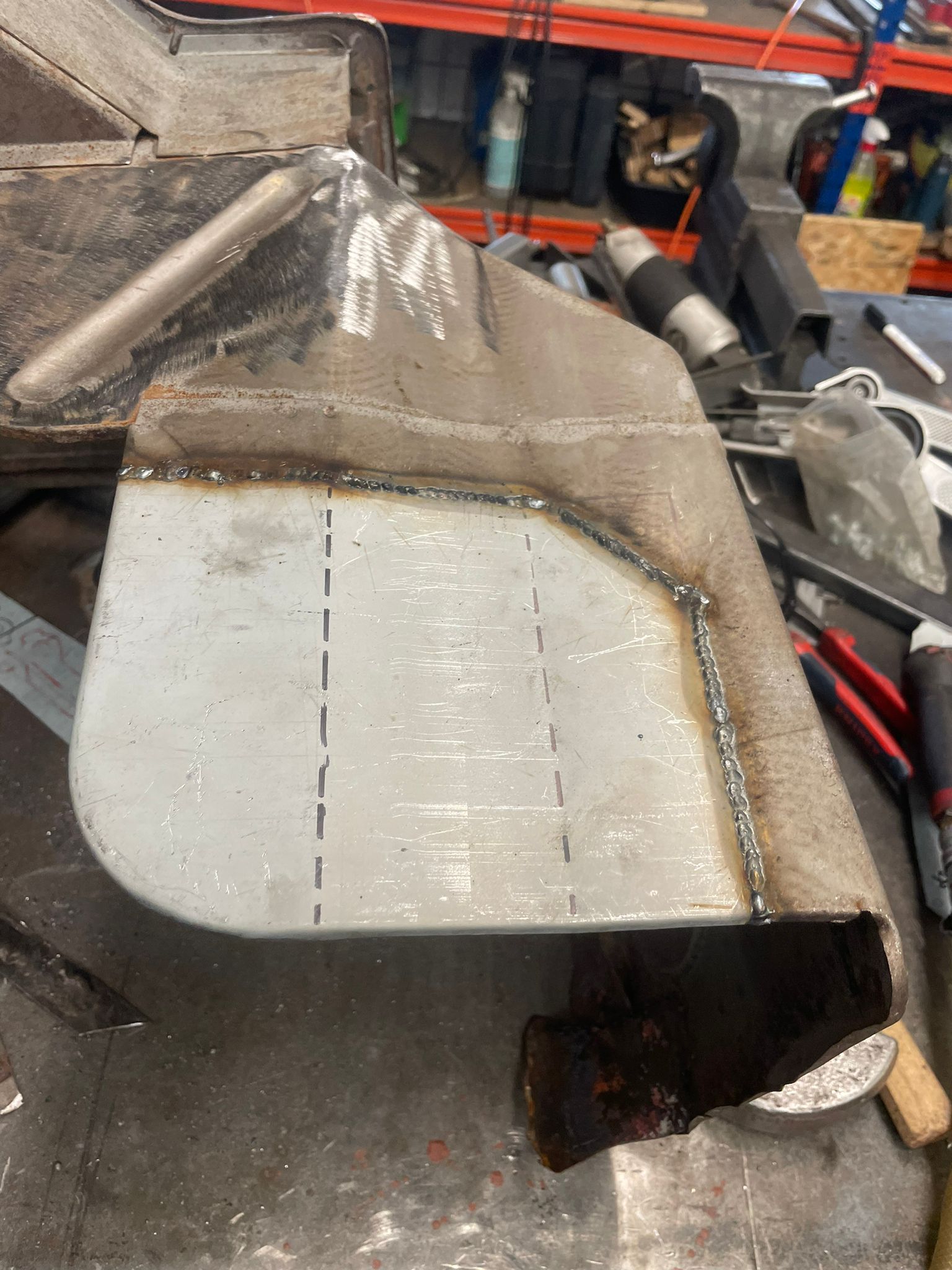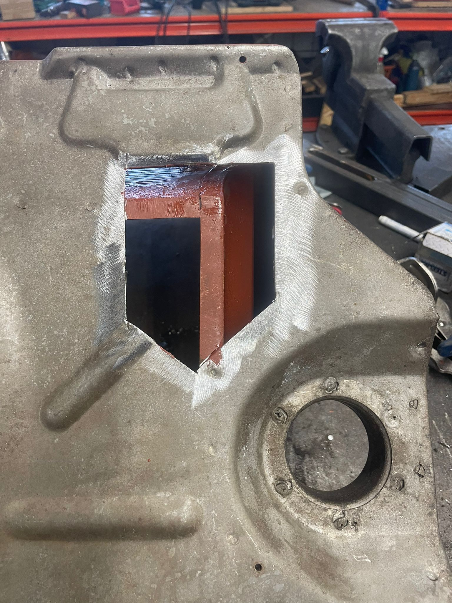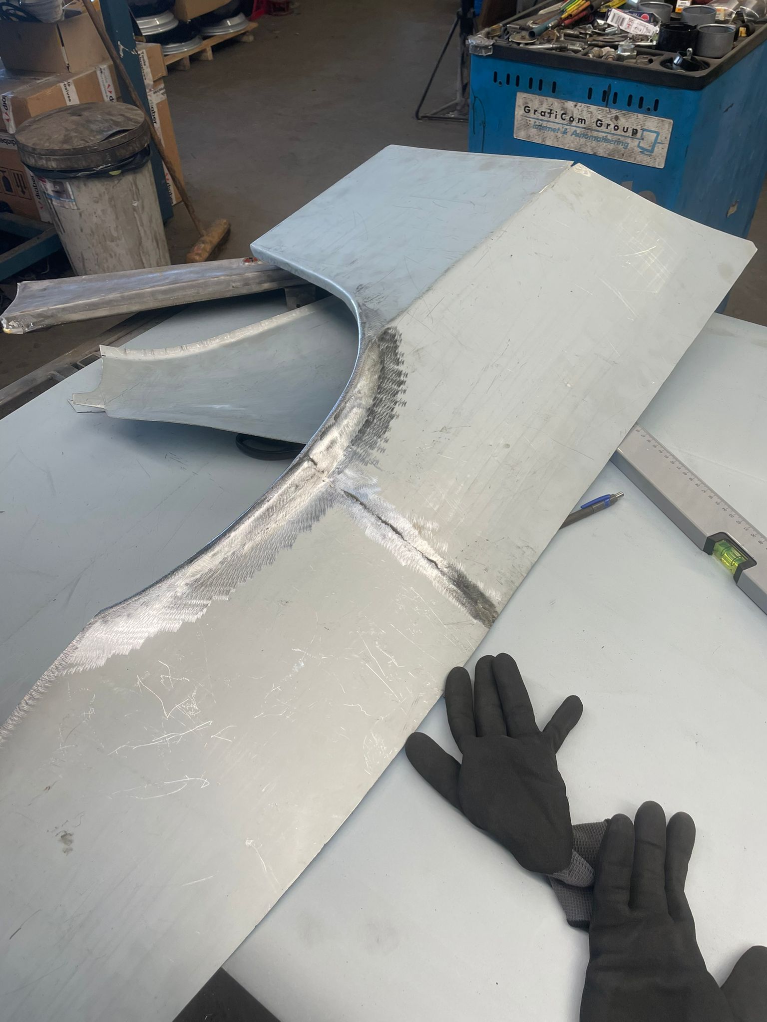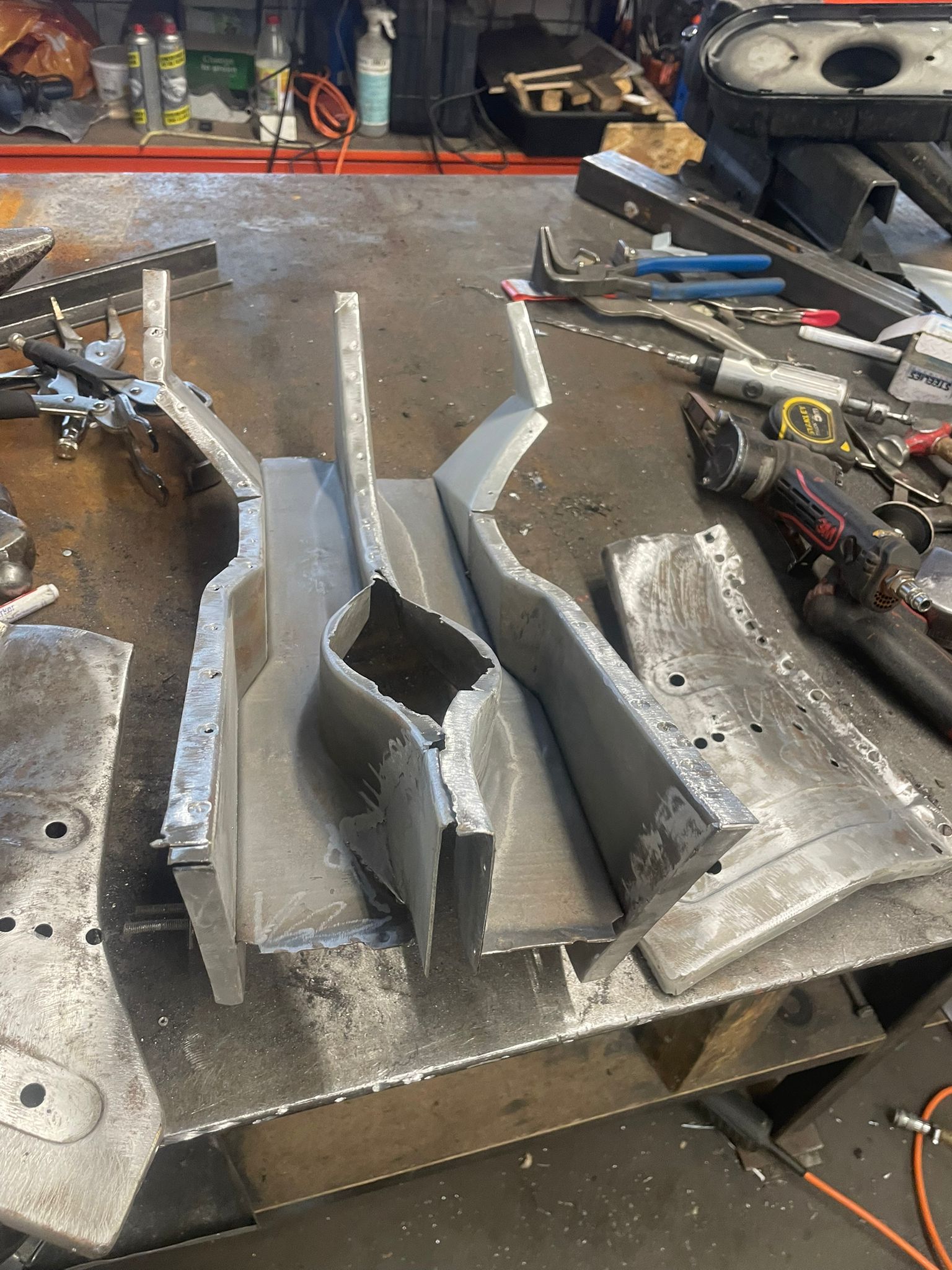 The end of the top needed to be a bit lower to line up with the door and the rearsection moved a little backwards. The exces now on top of the doorskin has some extra material to fold over the edge later on. The middle needed around 30mm added to it