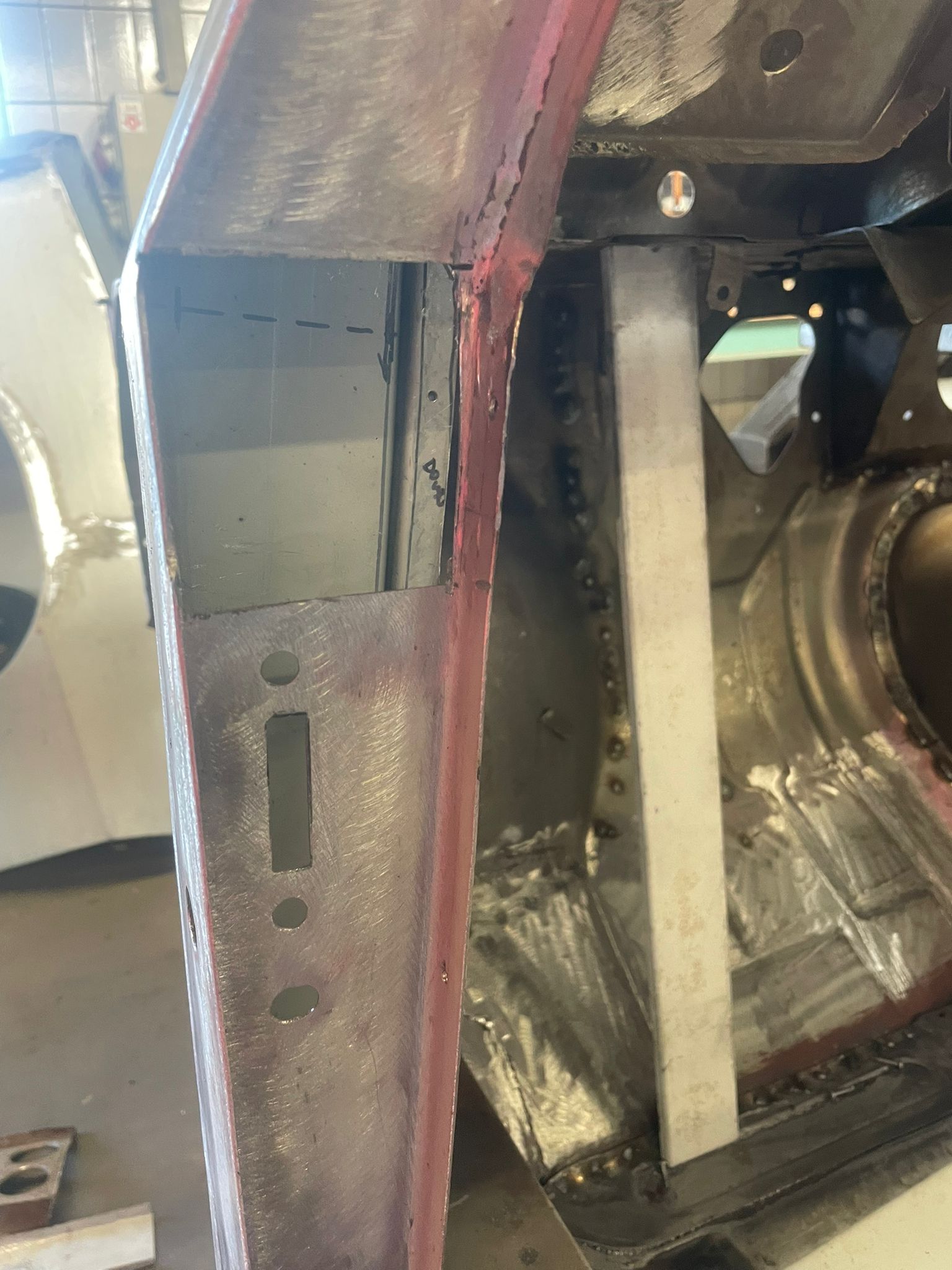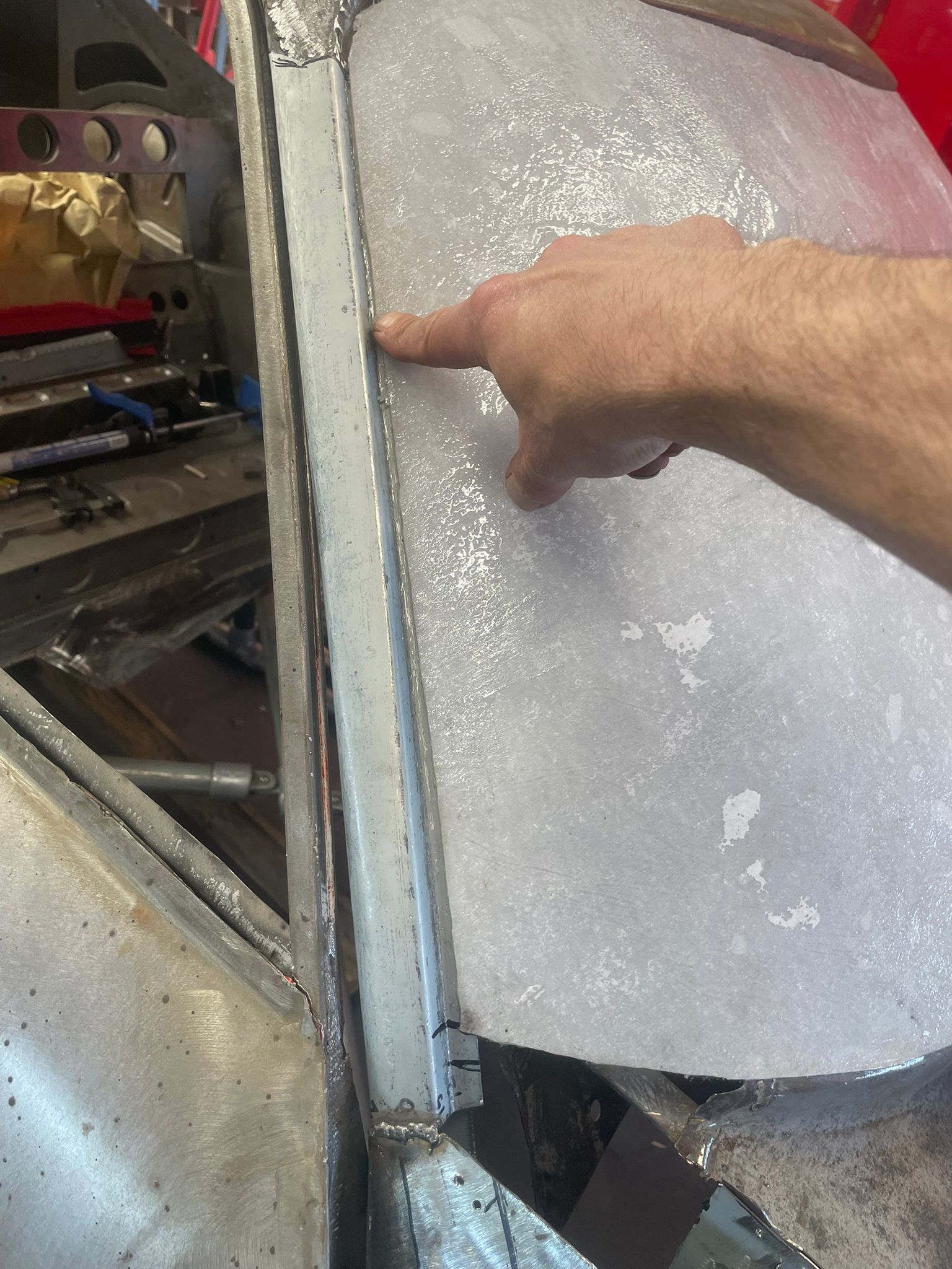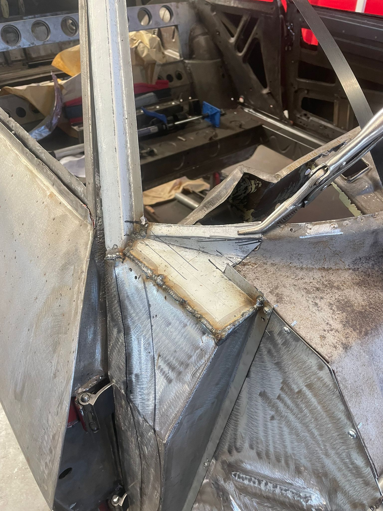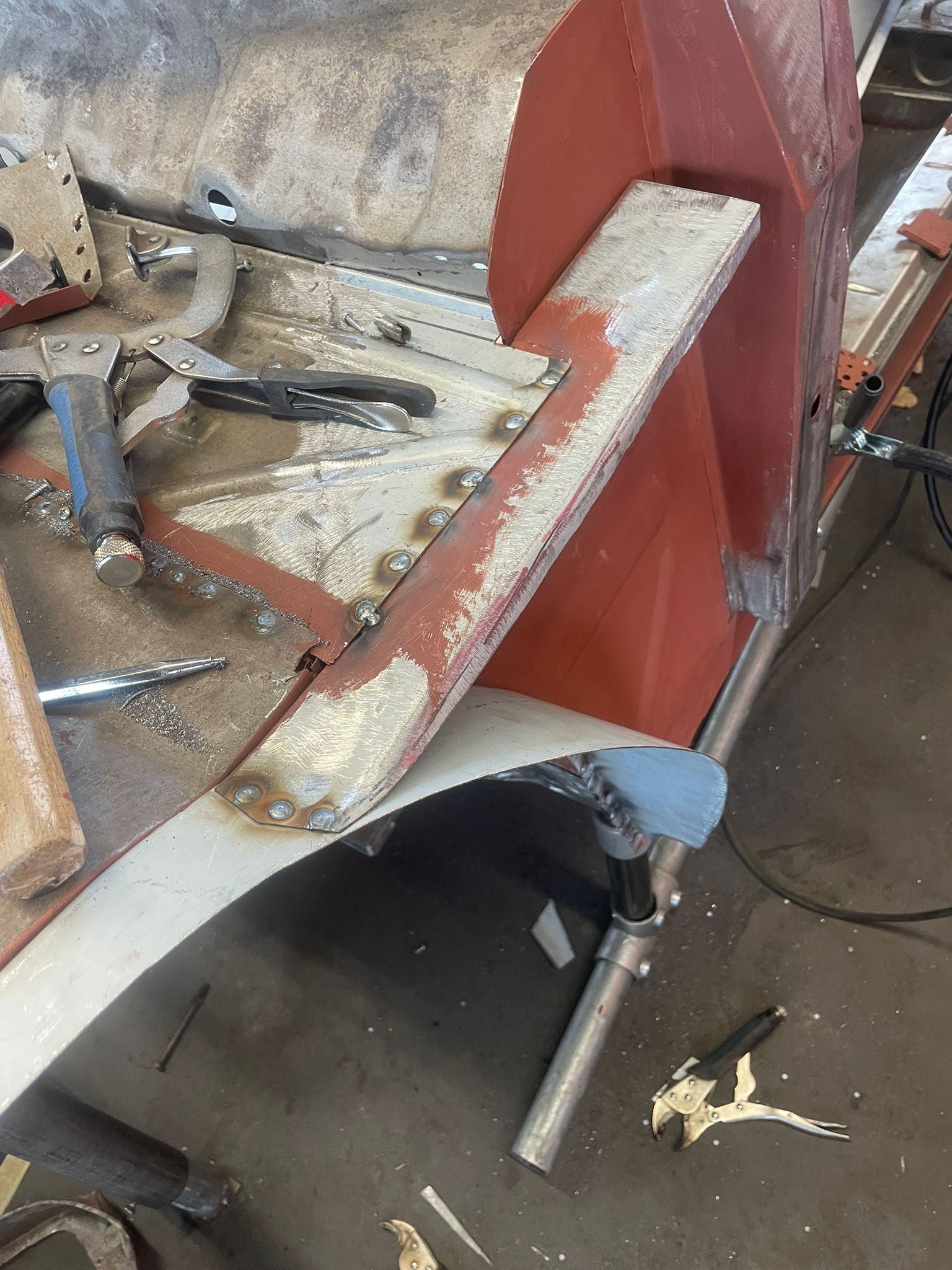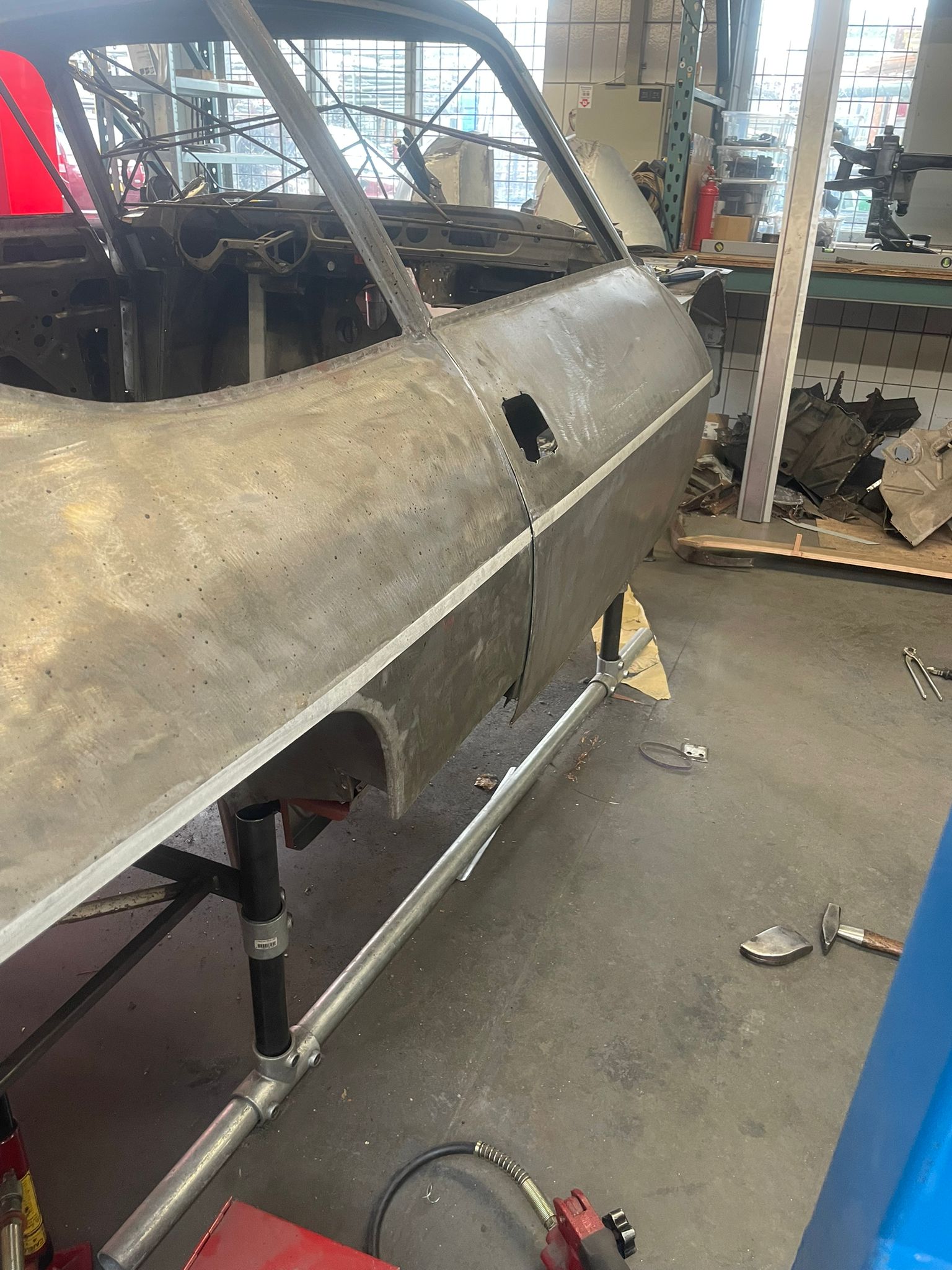 Another week on the zagato. Not a lot of pictures but a lot has happened. I repaired the uppercorners of the firewall. Changed the side profile of the driversside to match the passengerside. Knocked out some dents and stretched the driversside a little bit. Then located every stresscrack, knocked it flat and rewelded it. Remade the lower 20cm of the firewall and the passengerside already welded in after connecting the sidepanels to the firewall.
