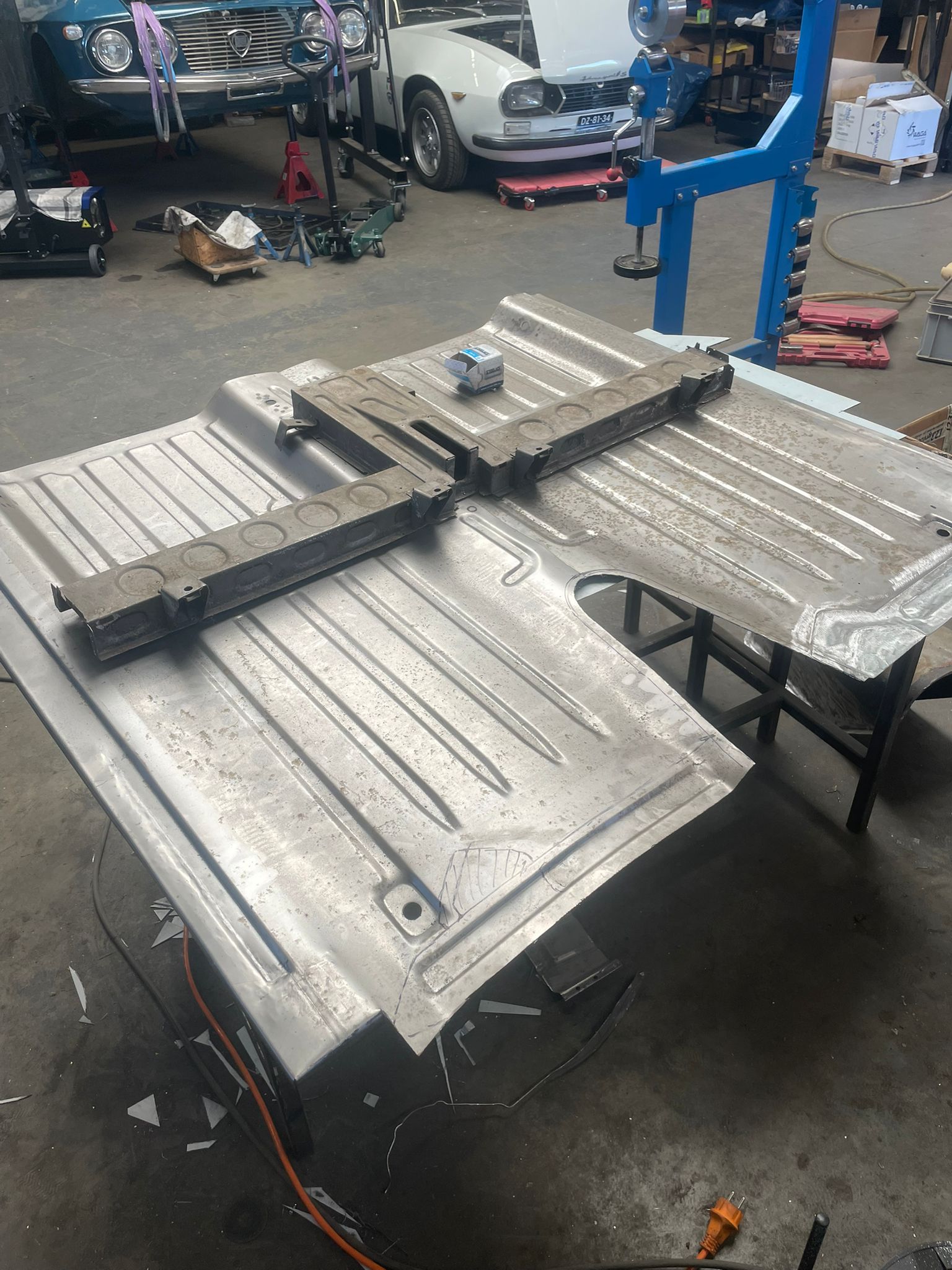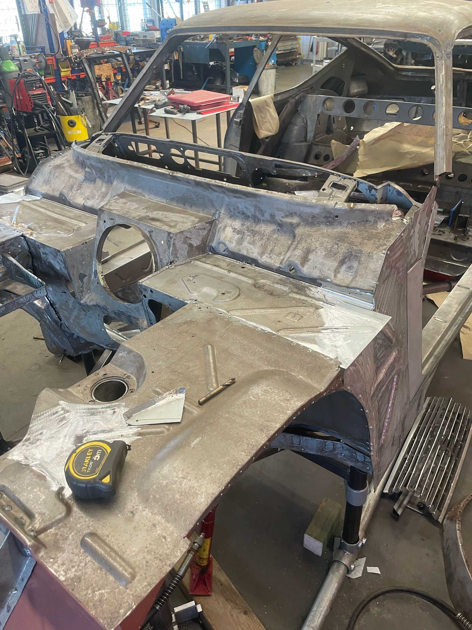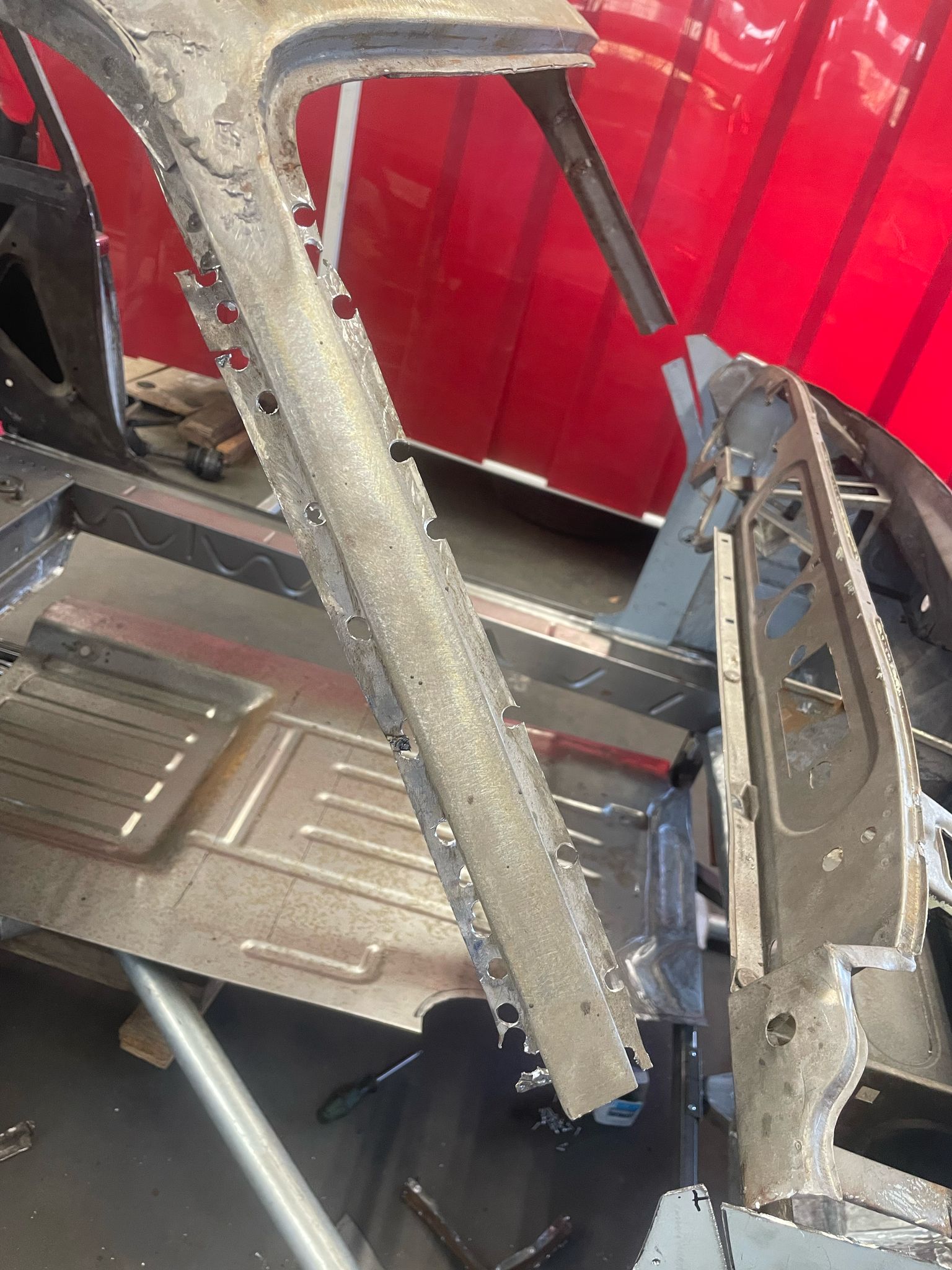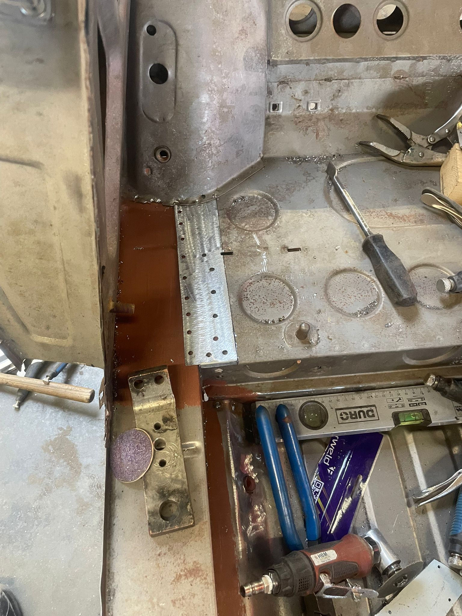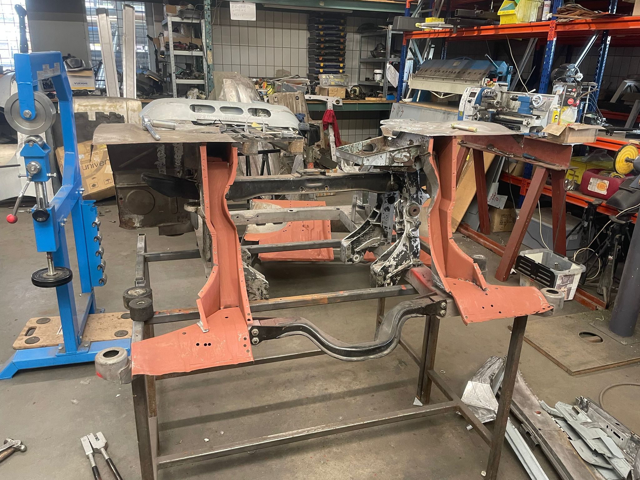 Another week on the zagato. Not a lot of pictures but a lot has happened. I repaired the uppercorners of the firewall. Changed the side profile of the driversside to match the passengerside. Knocked out some dents and stretched the driversside a little bit. Then located every stresscrack, knocked it flat and rewelded it. Remade the lower 20cm of the firewall and the passengerside already welded in after connecting the sidepanels to the firewall.