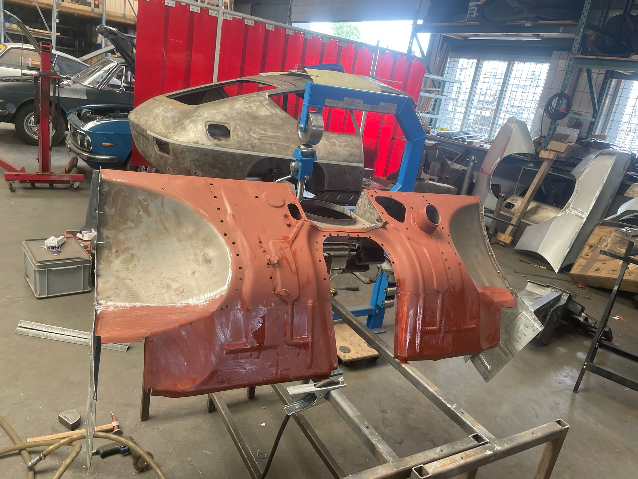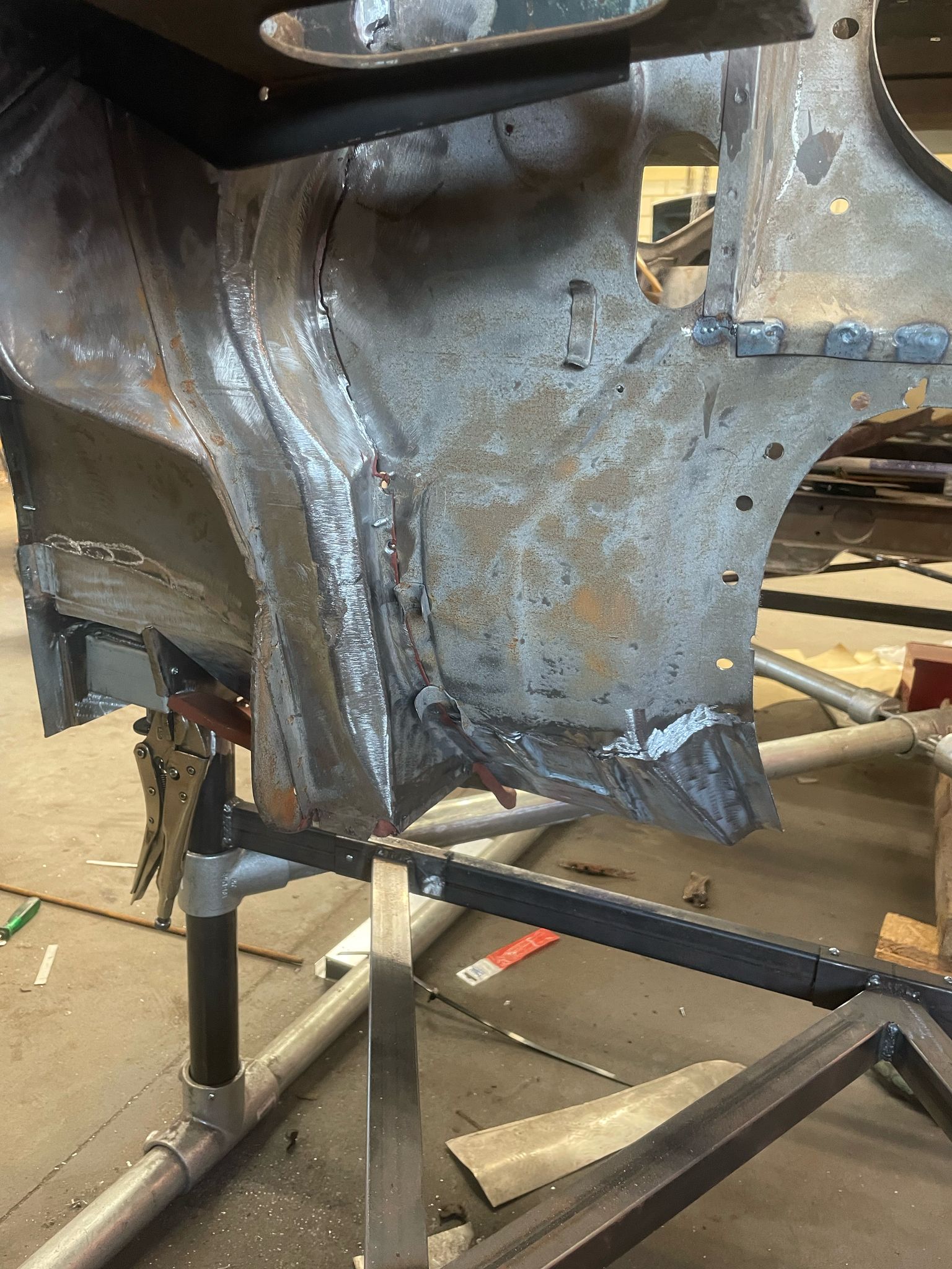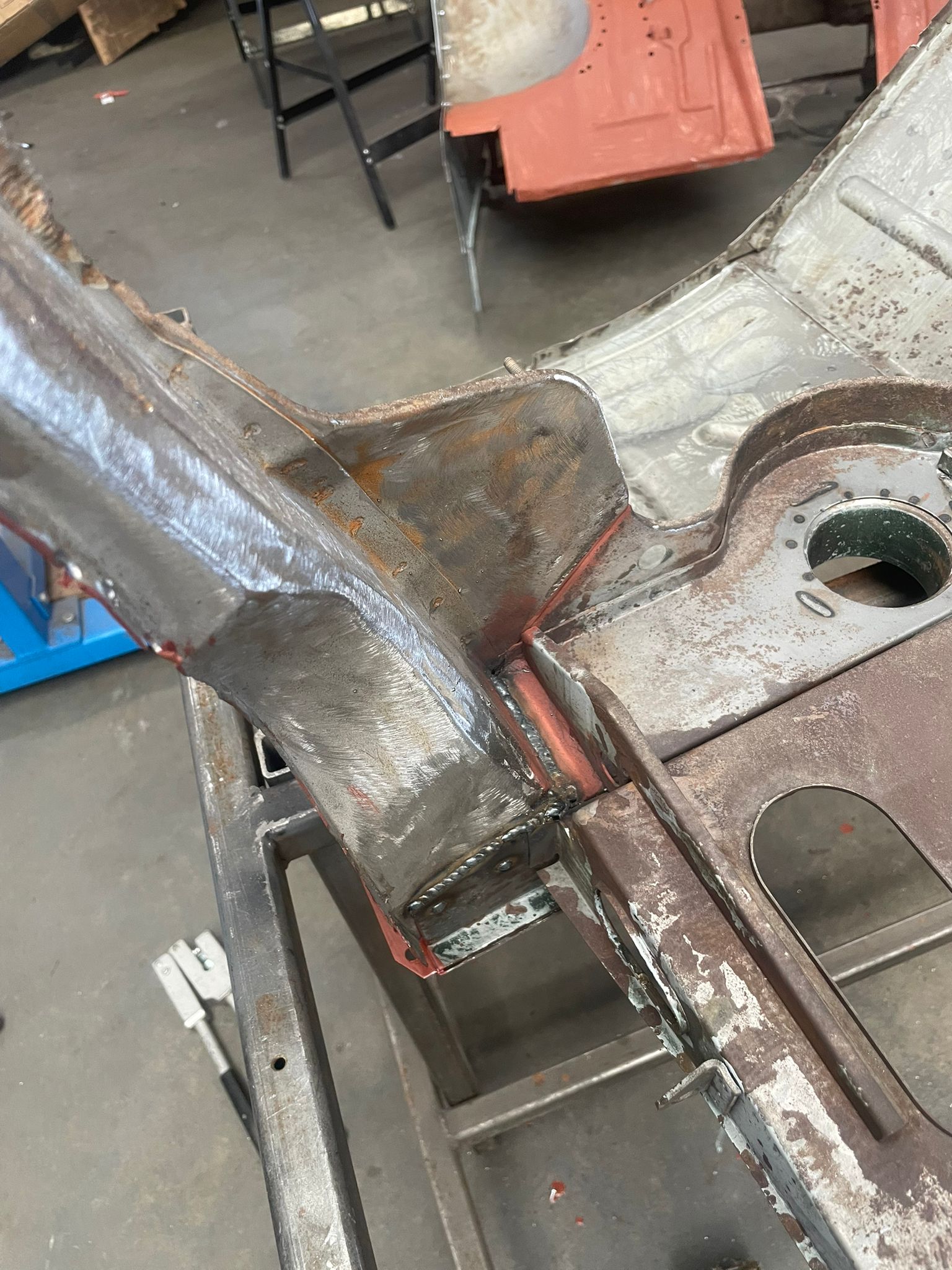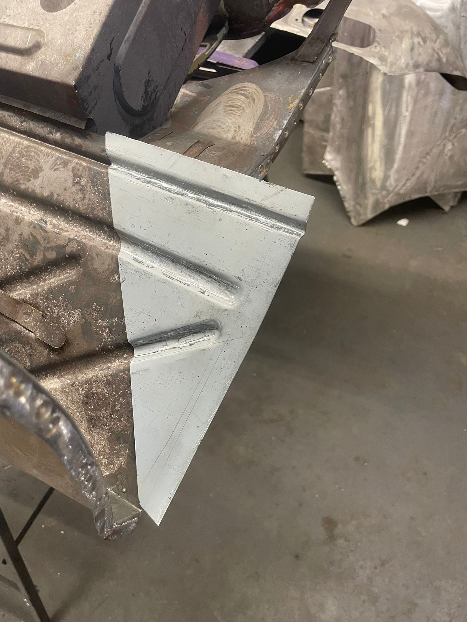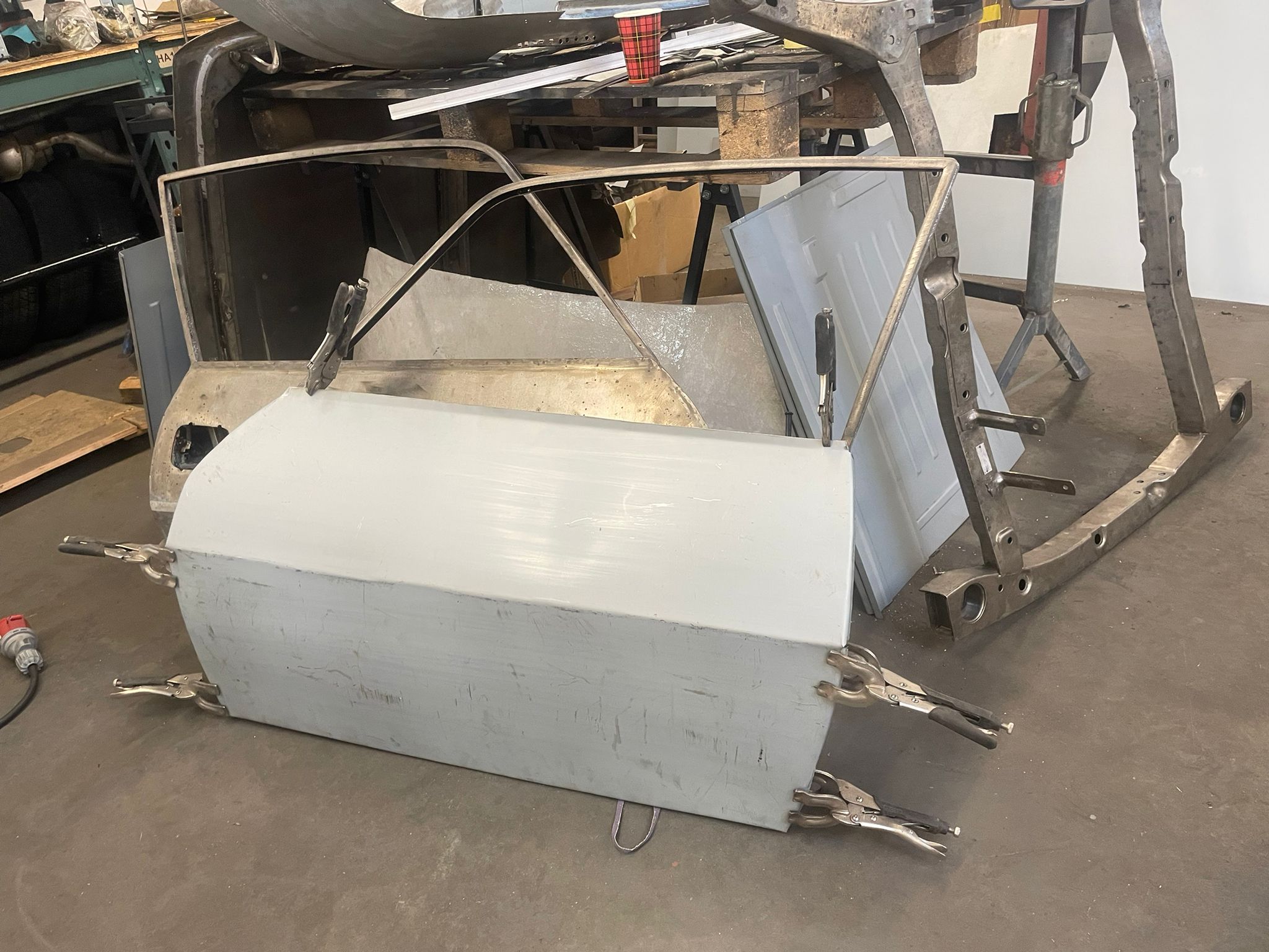 Another week on the zagato. Not a lot of pictures but a lot has happened. I repaired the uppercorners of the firewall. Changed the side profile of the driversside to match the passengerside. Knocked out some dents and stretched the driversside a little bit. Then located every stresscrack, knocked it flat and rewelded it. Remade the lower 20cm of the firewall and the passengerside already welded in after connecting the sidepanels to the firewall.