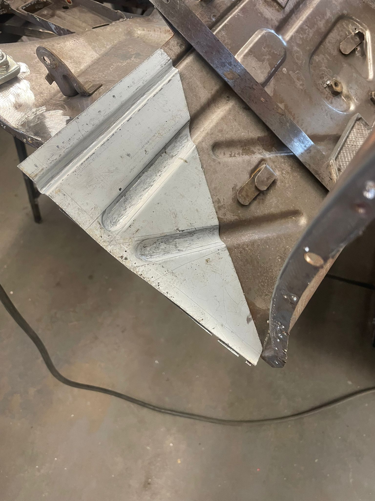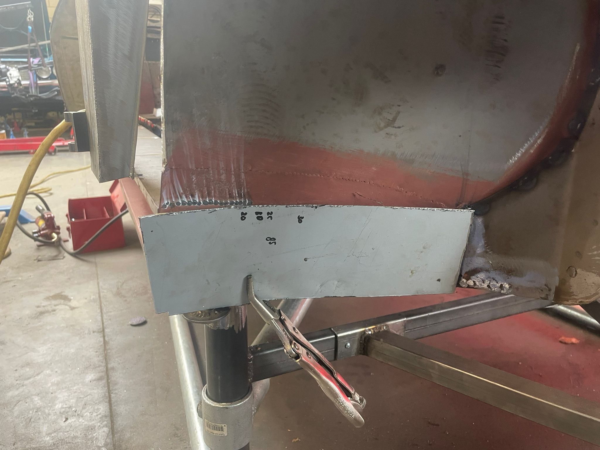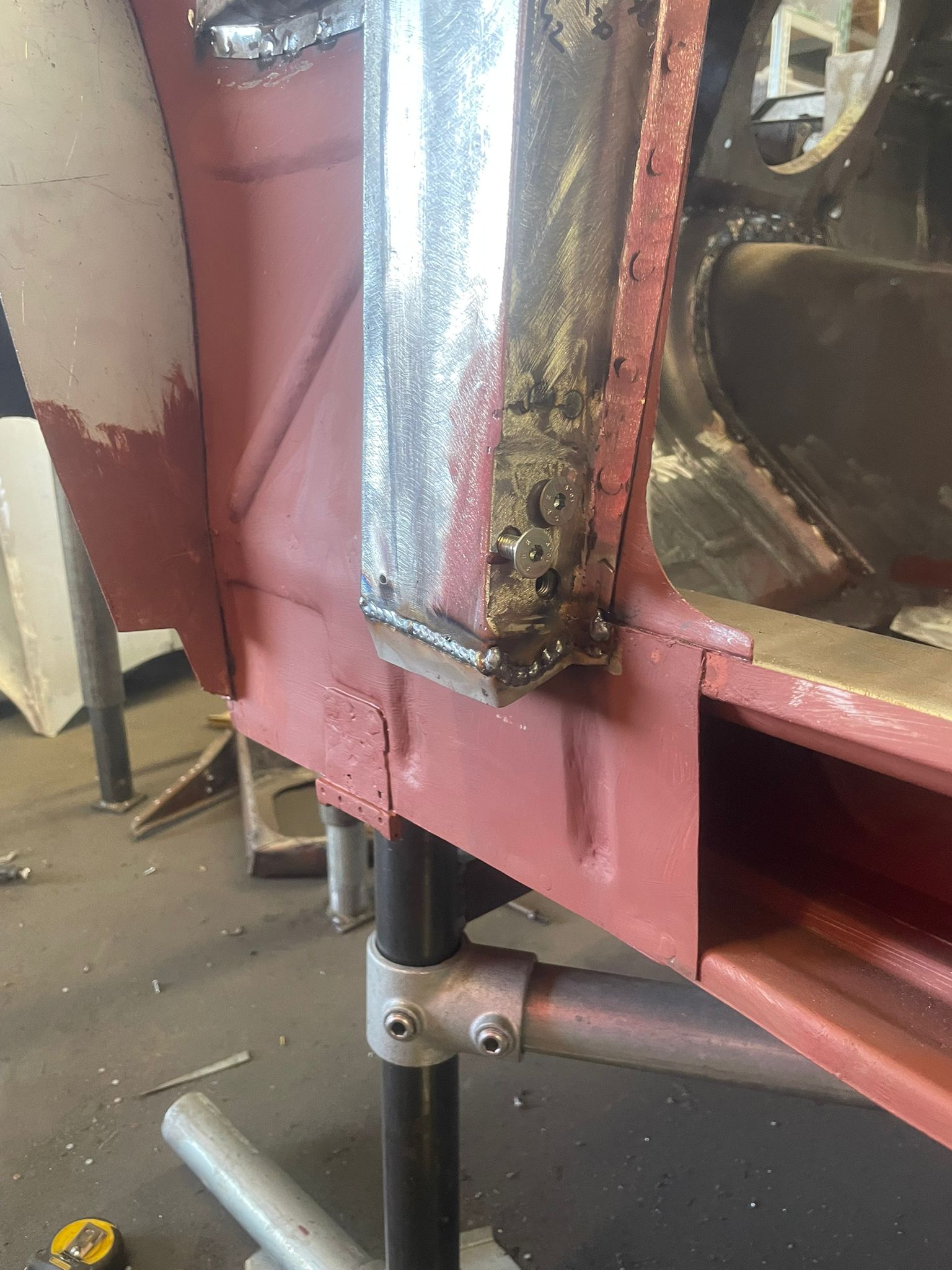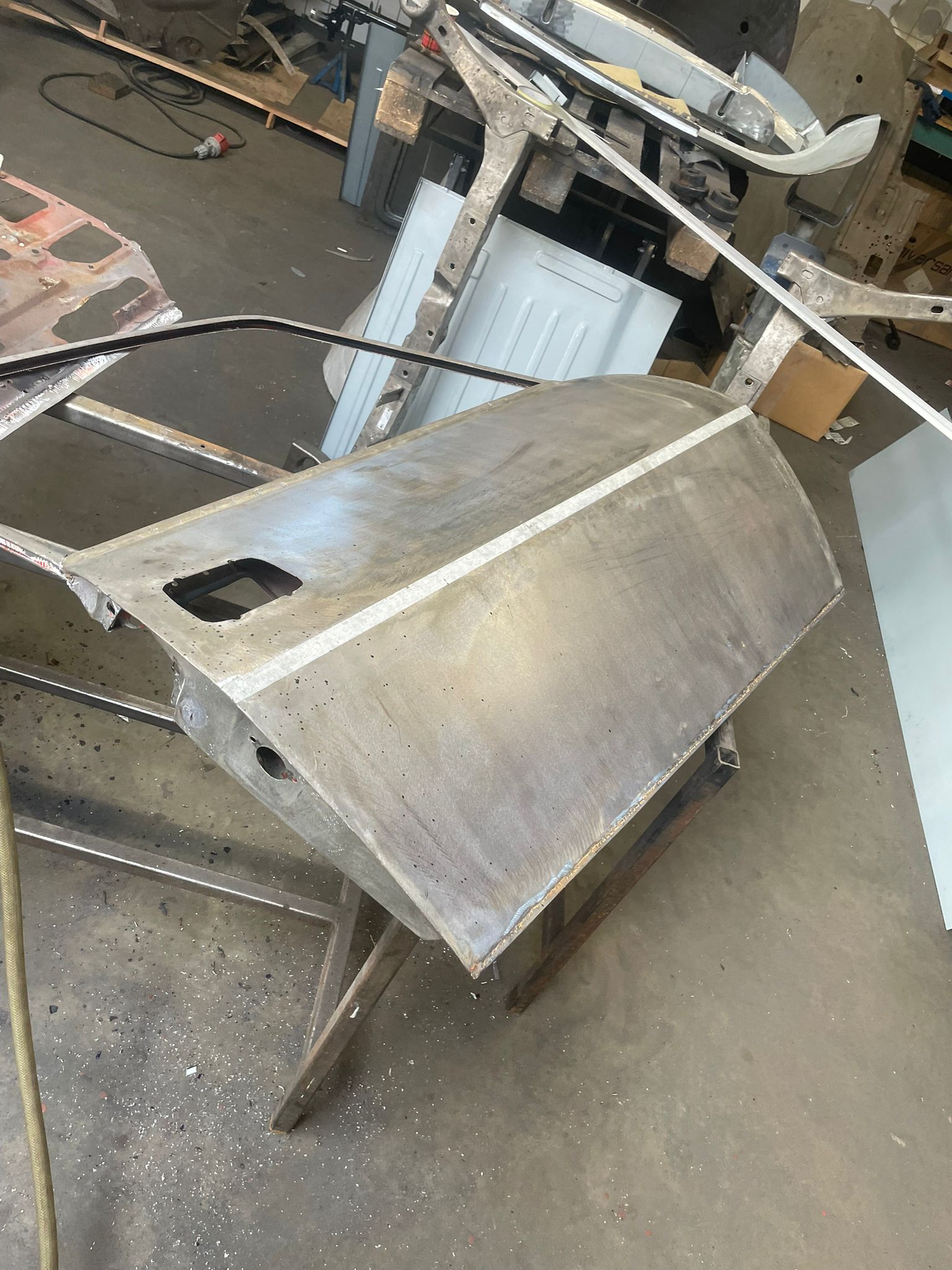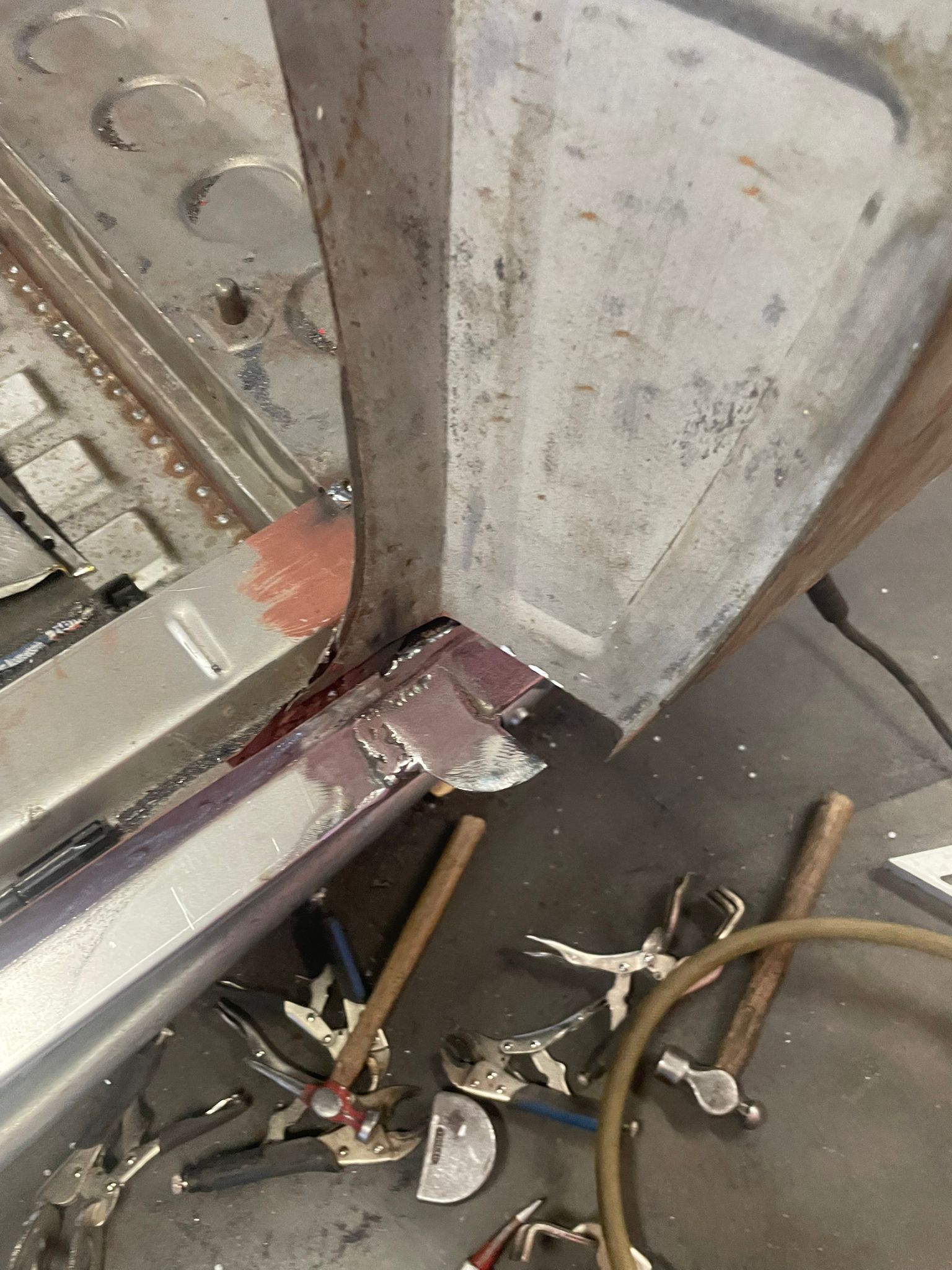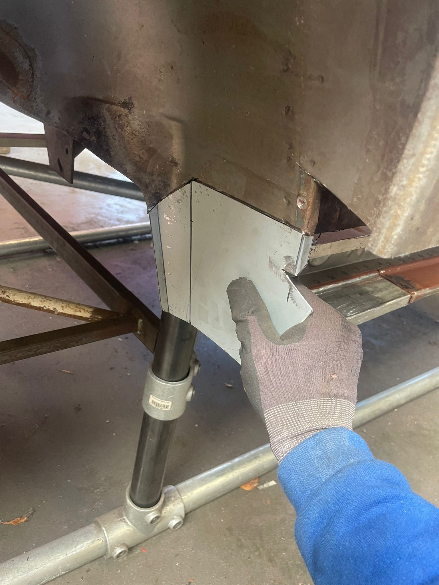 Another week on the zagato. Not a lot of pictures but a lot has happened. I repaired the uppercorners of the firewall. Changed the side profile of the driversside to match the passengerside. Knocked out some dents and stretched the driversside a little bit. Then located every stresscrack, knocked it flat and rewelded it. Remade the lower 20cm of the firewall and the passengerside already welded in after connecting the sidepanels to the firewall.