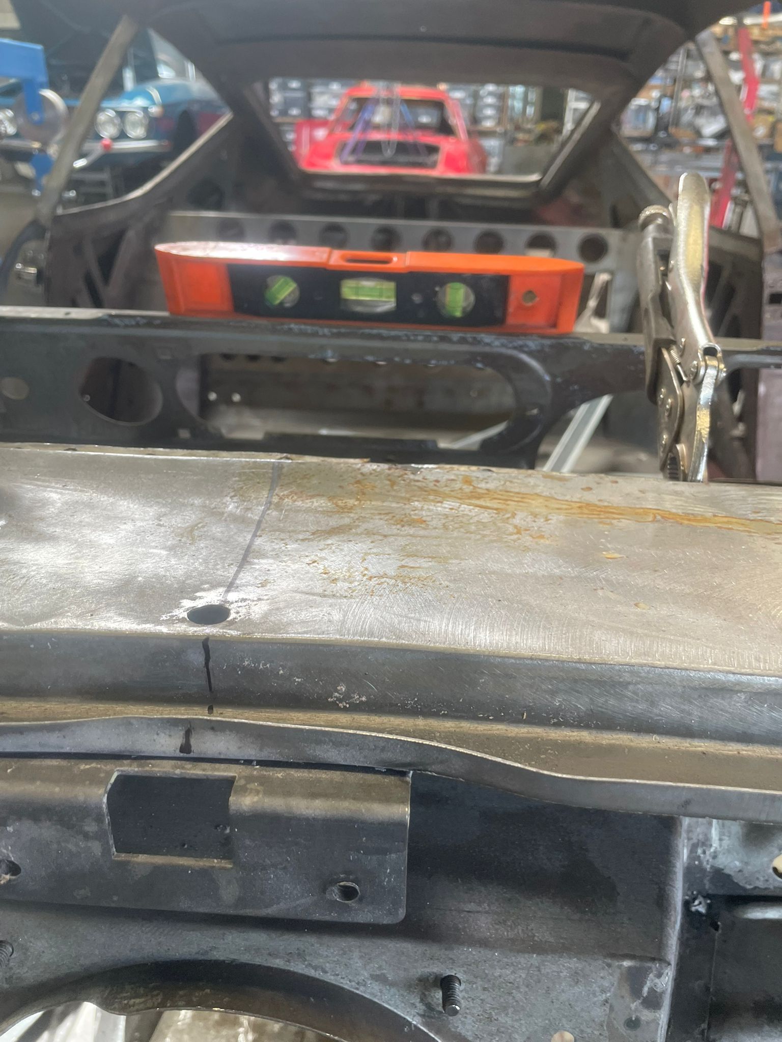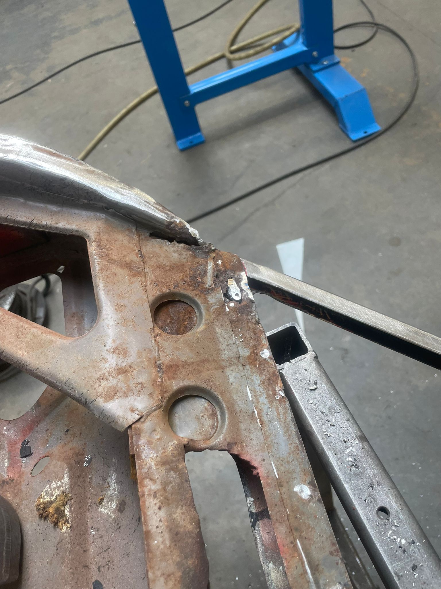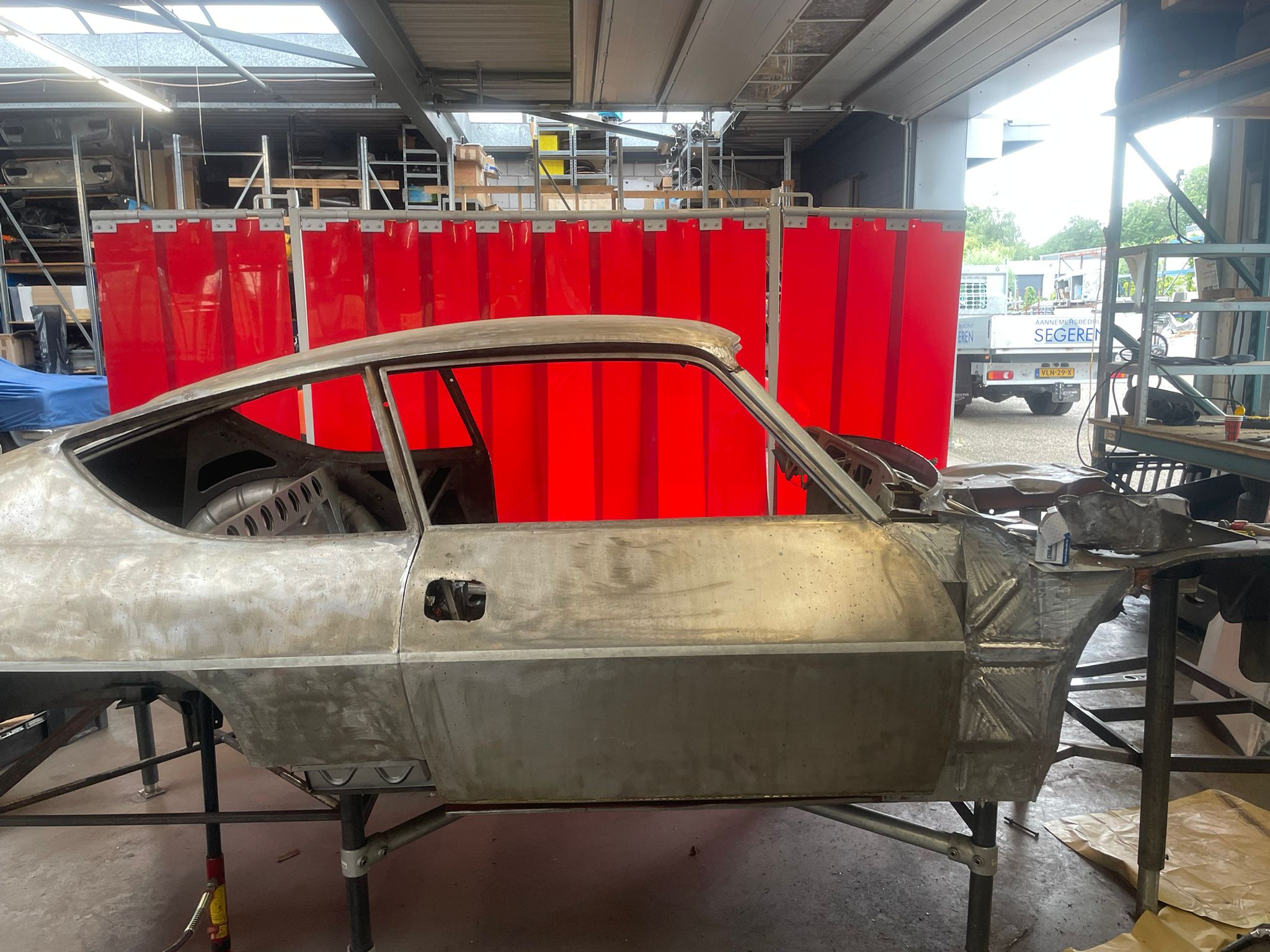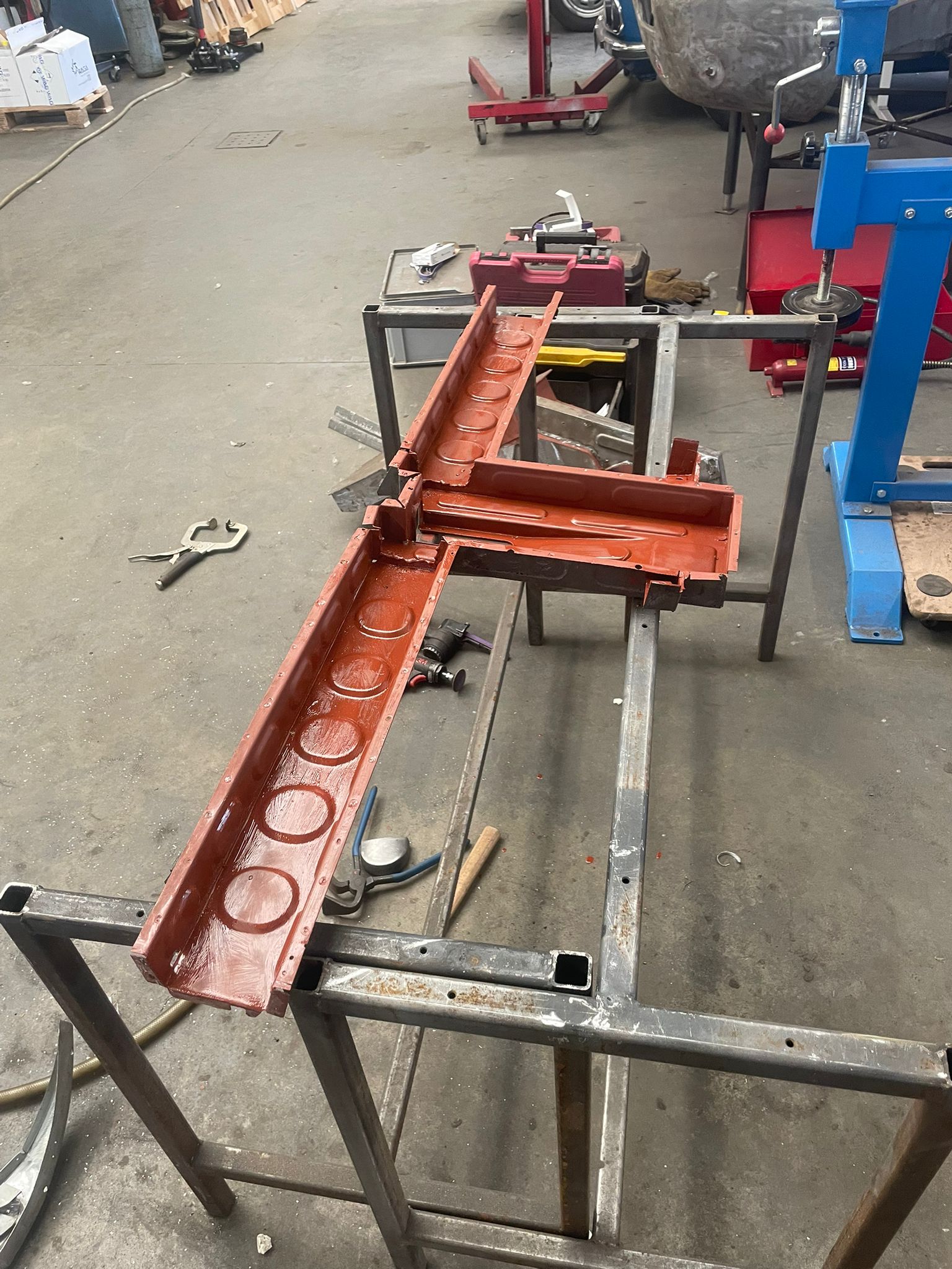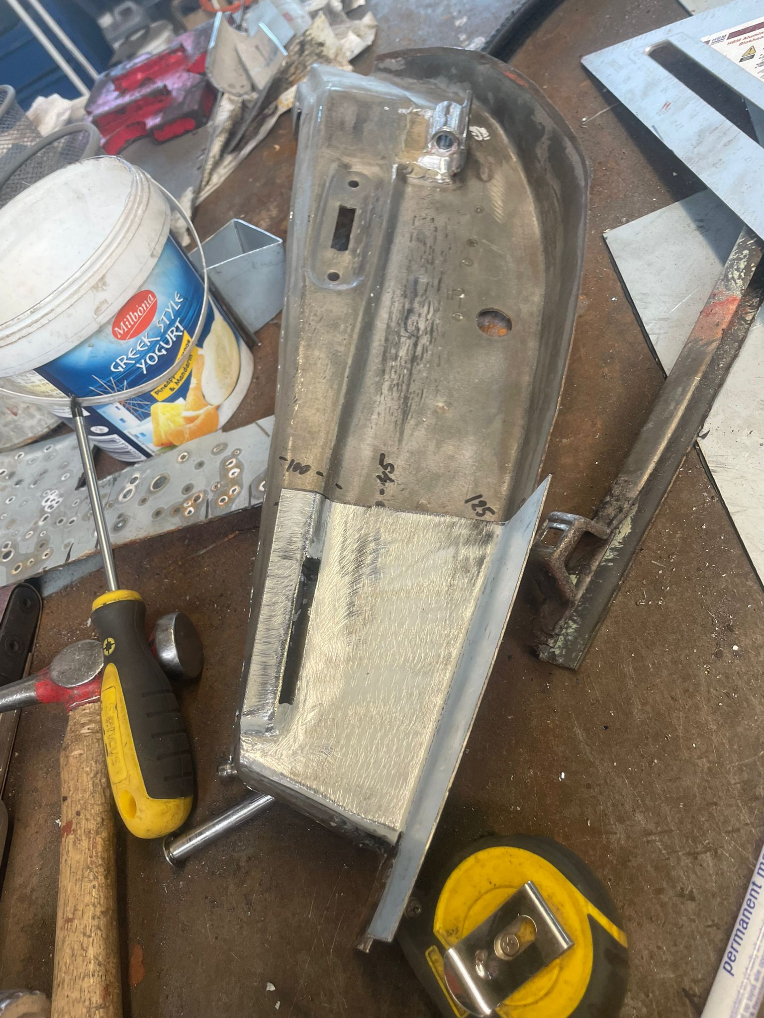 Another week on the zagato. Not a lot of pictures but a lot has happened. I repaired the uppercorners of the firewall. Changed the side profile of the driversside to match the passengerside. Knocked out some dents and stretched the driversside a little bit. Then located every stresscrack, knocked it flat and rewelded it. Remade the lower 20cm of the firewall and the passengerside already welded in after connecting the sidepanels to the firewall.
