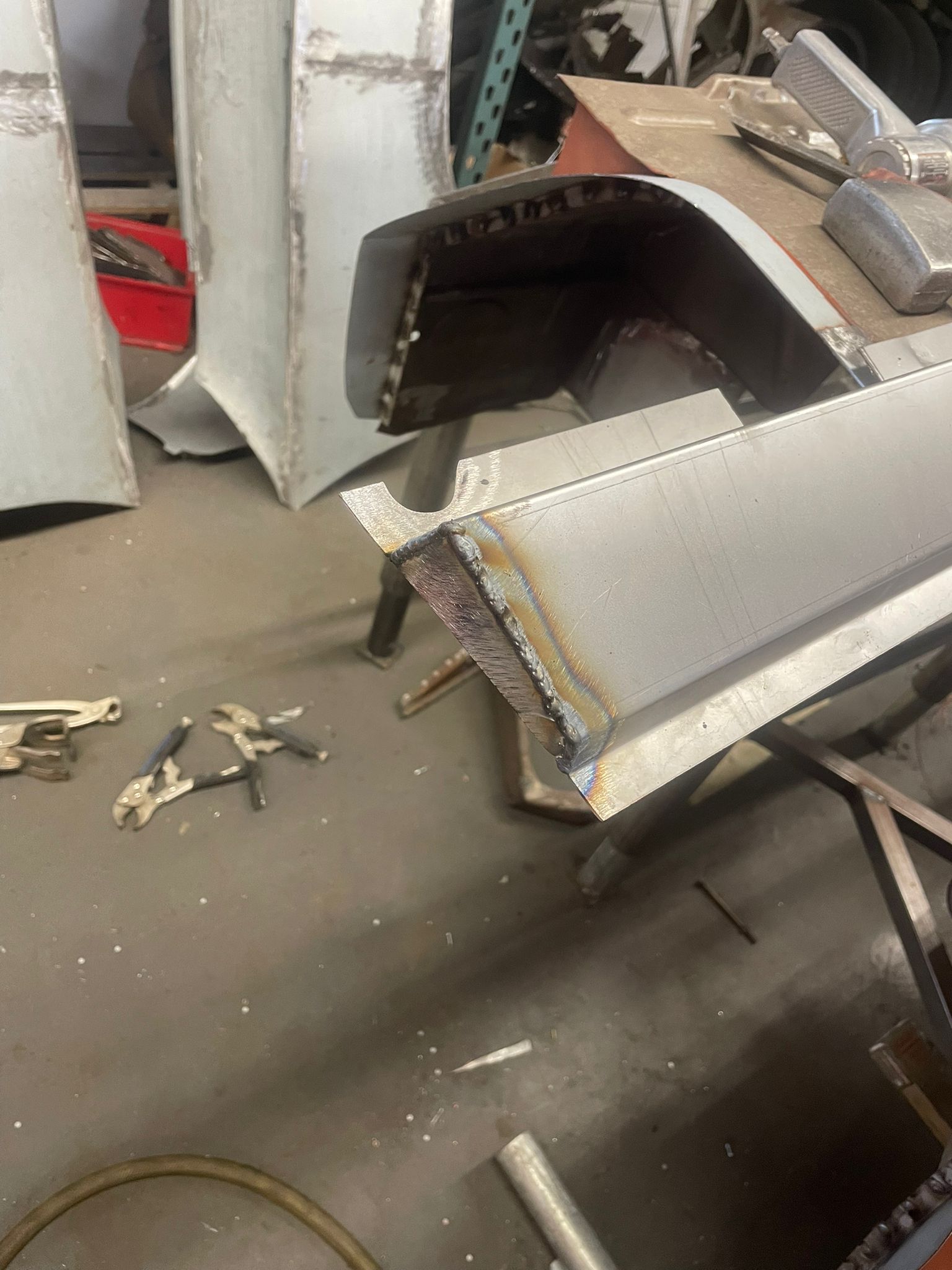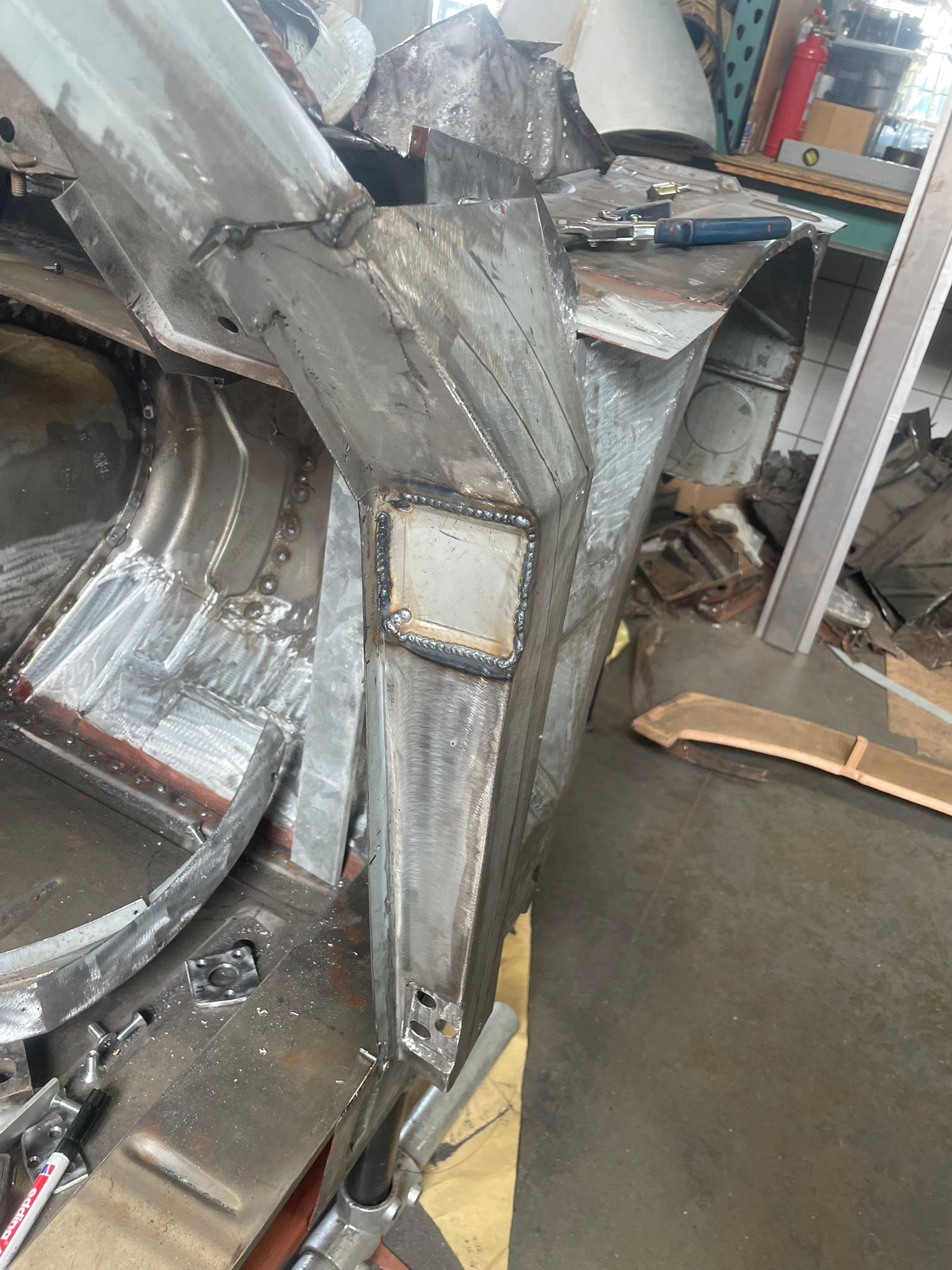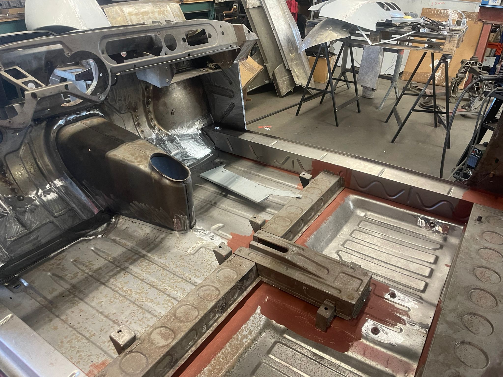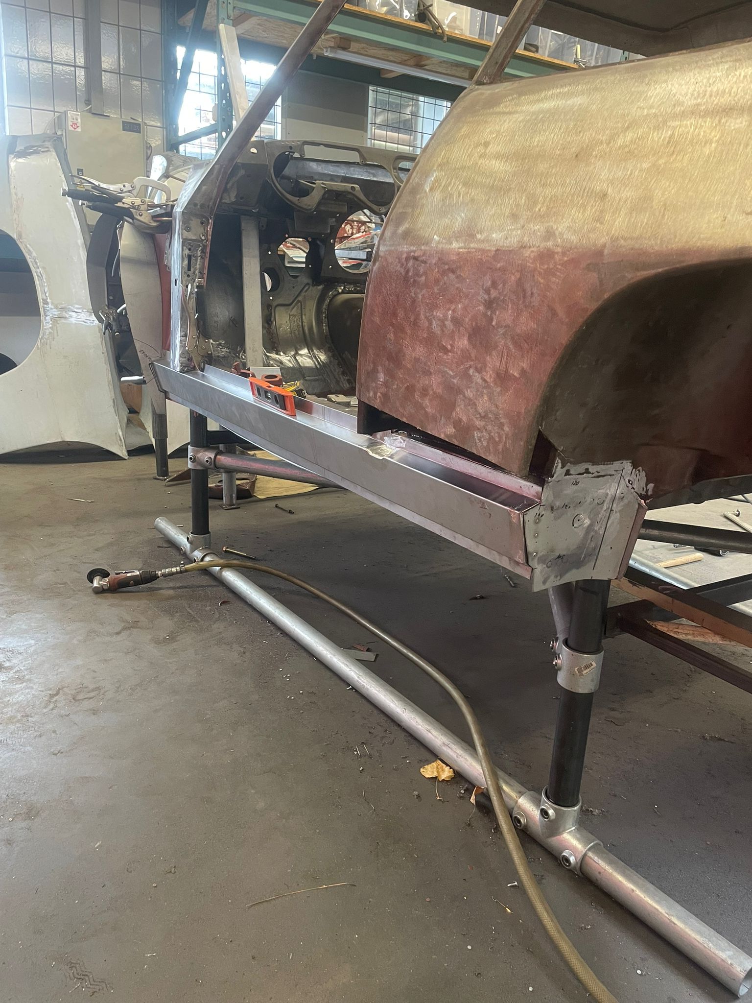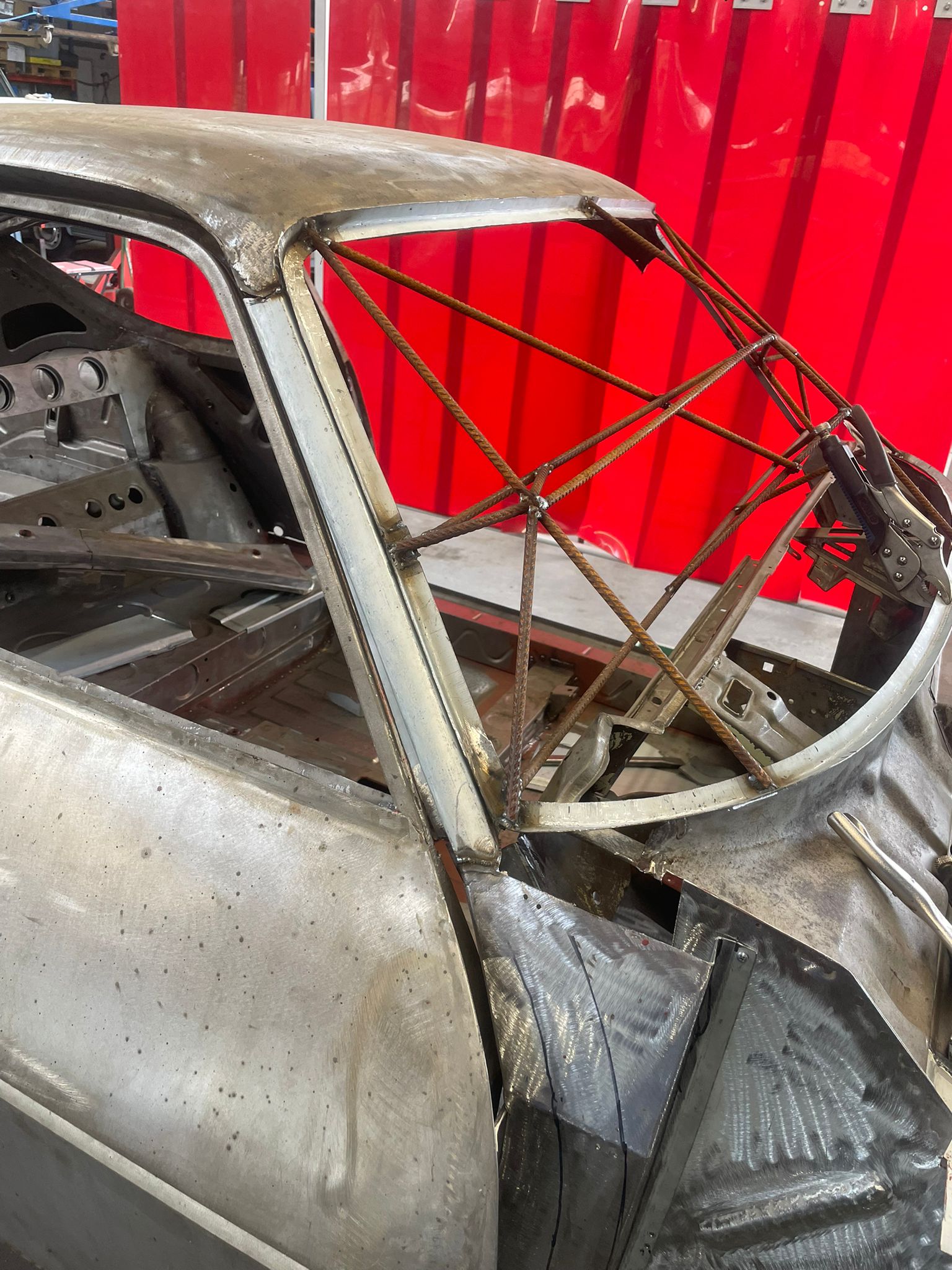 Another week on the zagato. Not a lot of pictures but a lot has happened. I repaired the uppercorners of the firewall. Changed the side profile of the driversside to match the passengerside. Knocked out some dents and stretched the driversside a little bit. Then located every stresscrack, knocked it flat and rewelded it. Remade the lower 20cm of the firewall and the passengerside already welded in after connecting the sidepanels to the firewall.