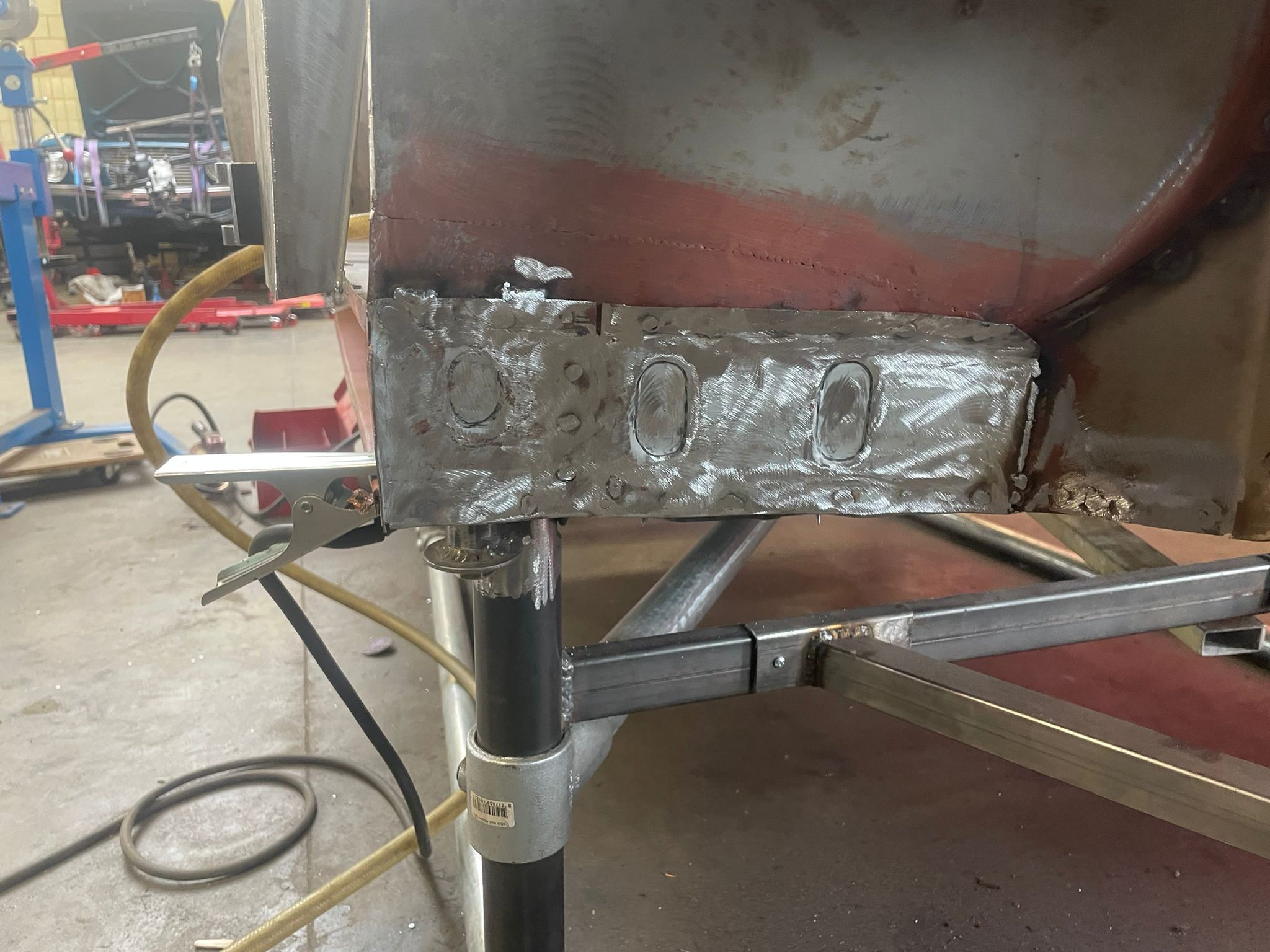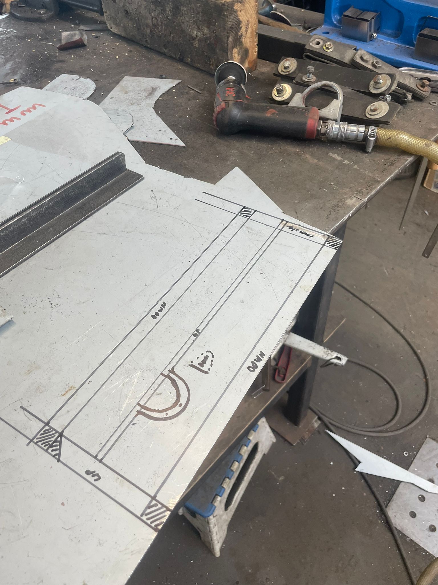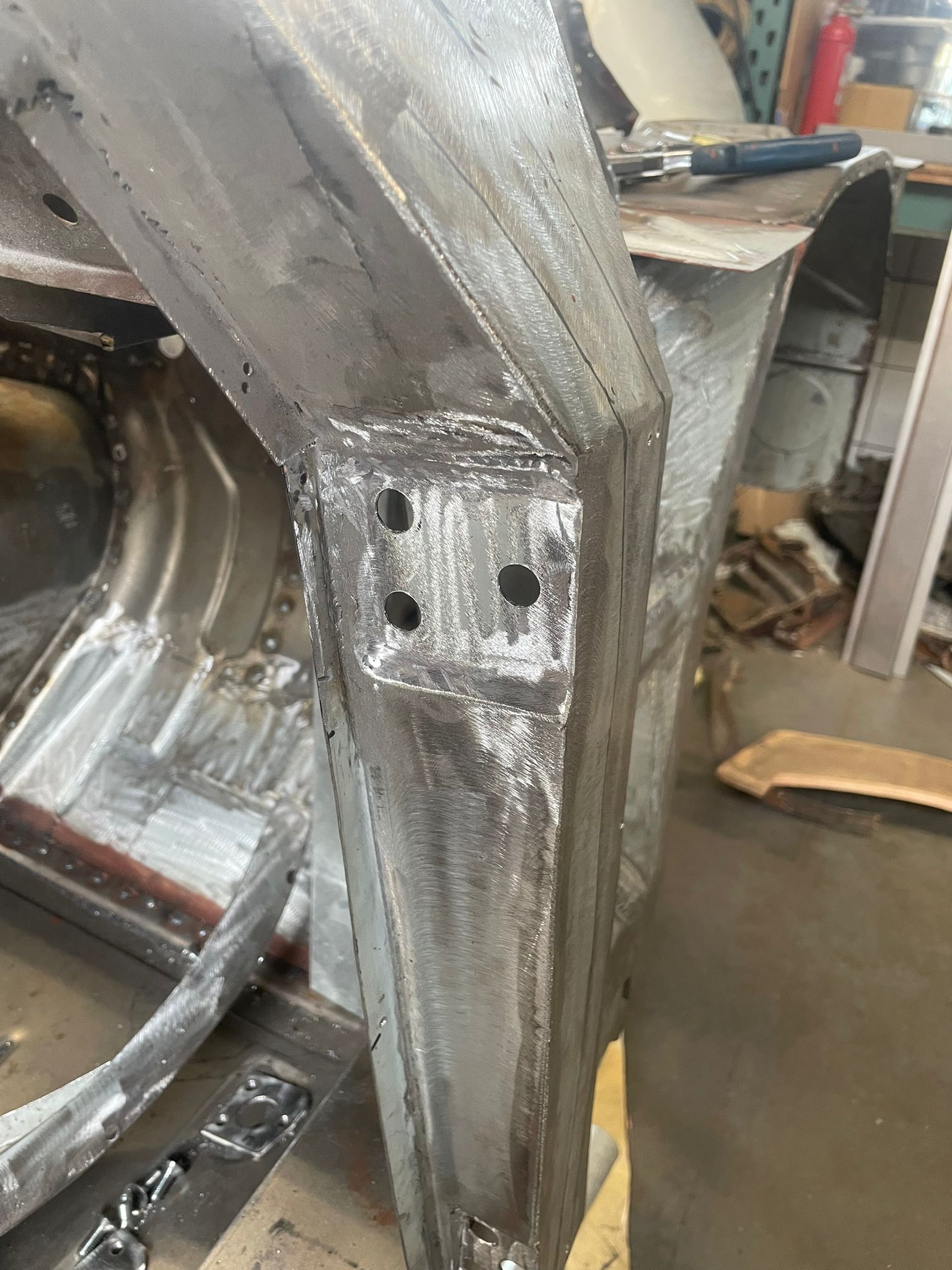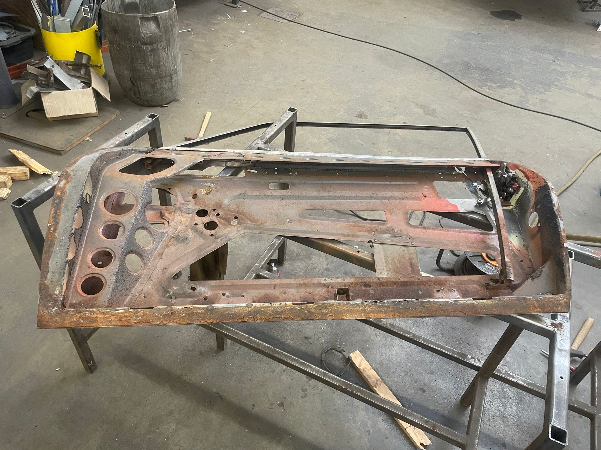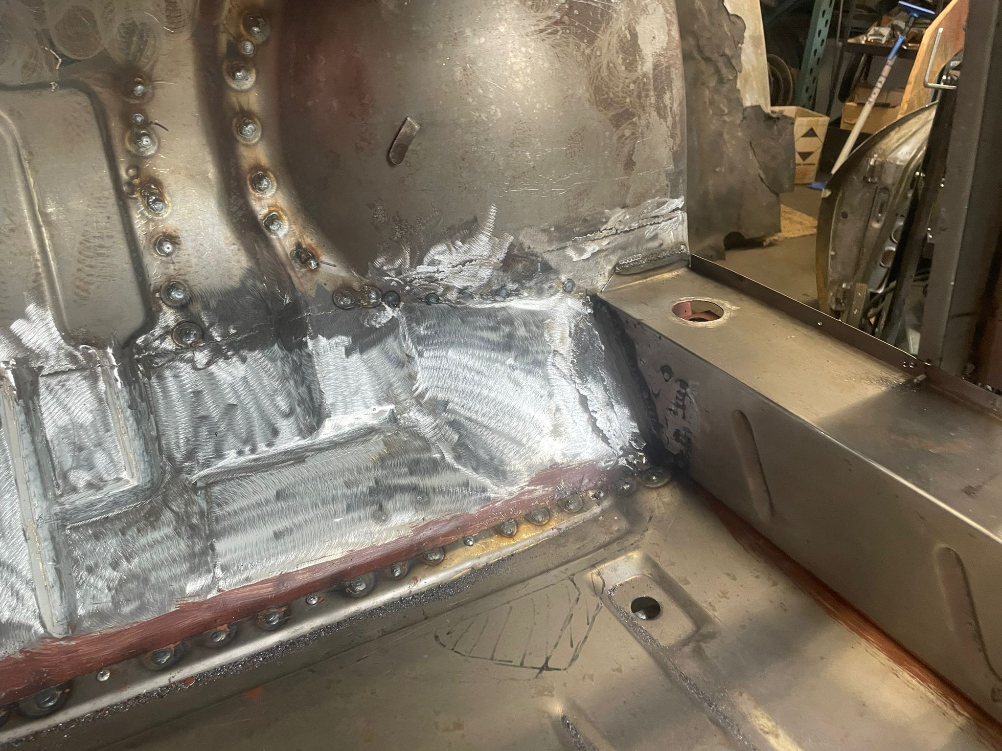 Another week on the zagato. Not a lot of pictures but a lot has happened. I repaired the uppercorners of the firewall. Changed the side profile of the driversside to match the passengerside. Knocked out some dents and stretched the driversside a little bit. Then located every stresscrack, knocked it flat and rewelded it. Remade the lower 20cm of the firewall and the passengerside already welded in after connecting the sidepanels to the firewall.