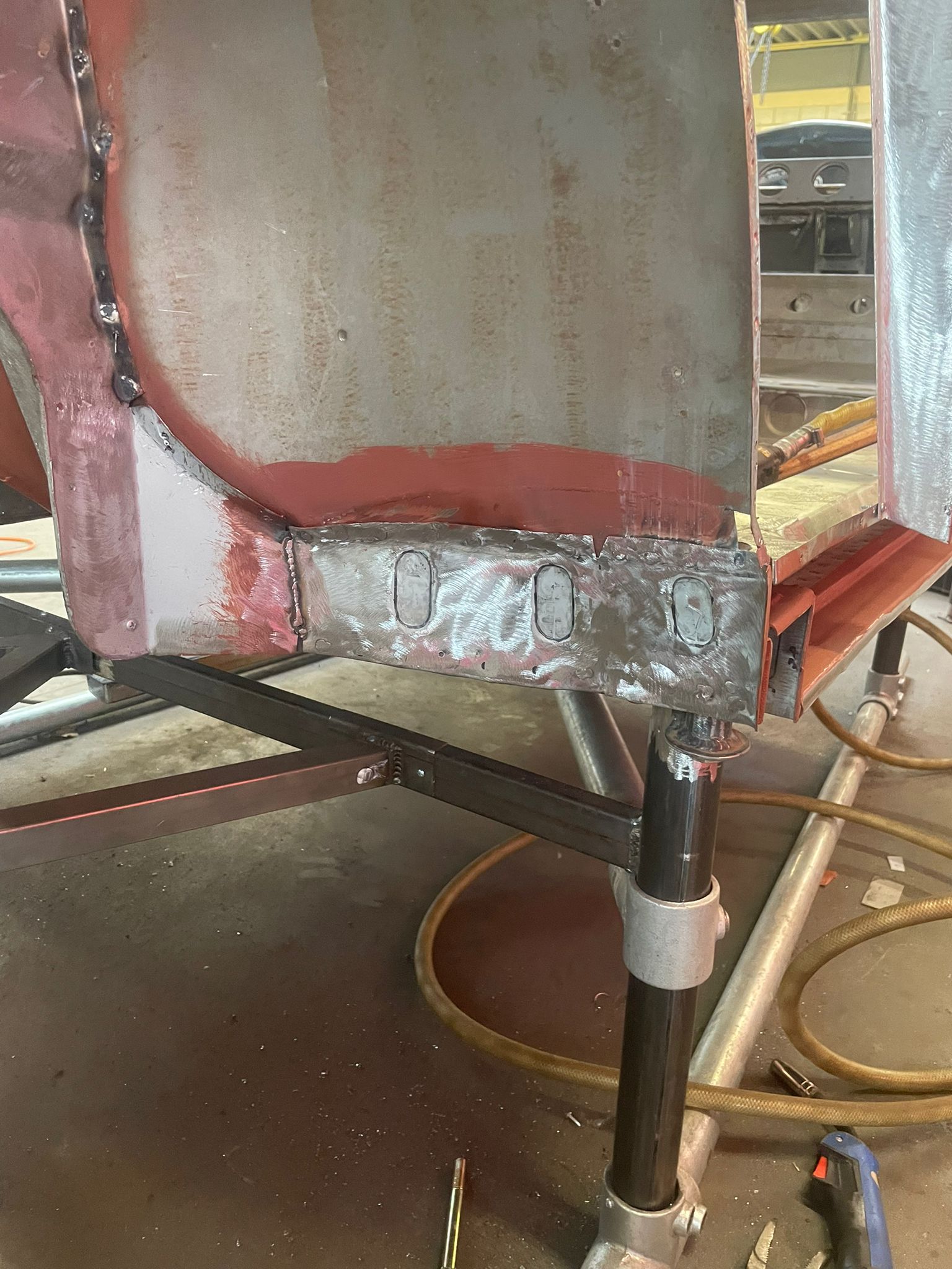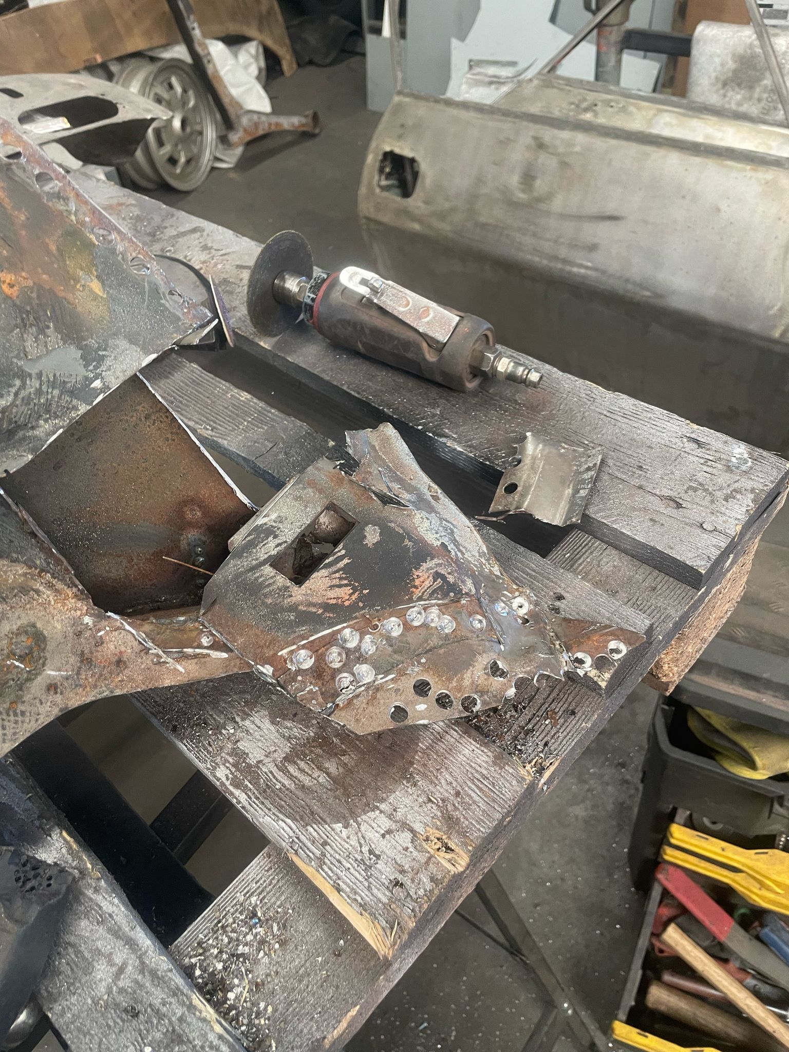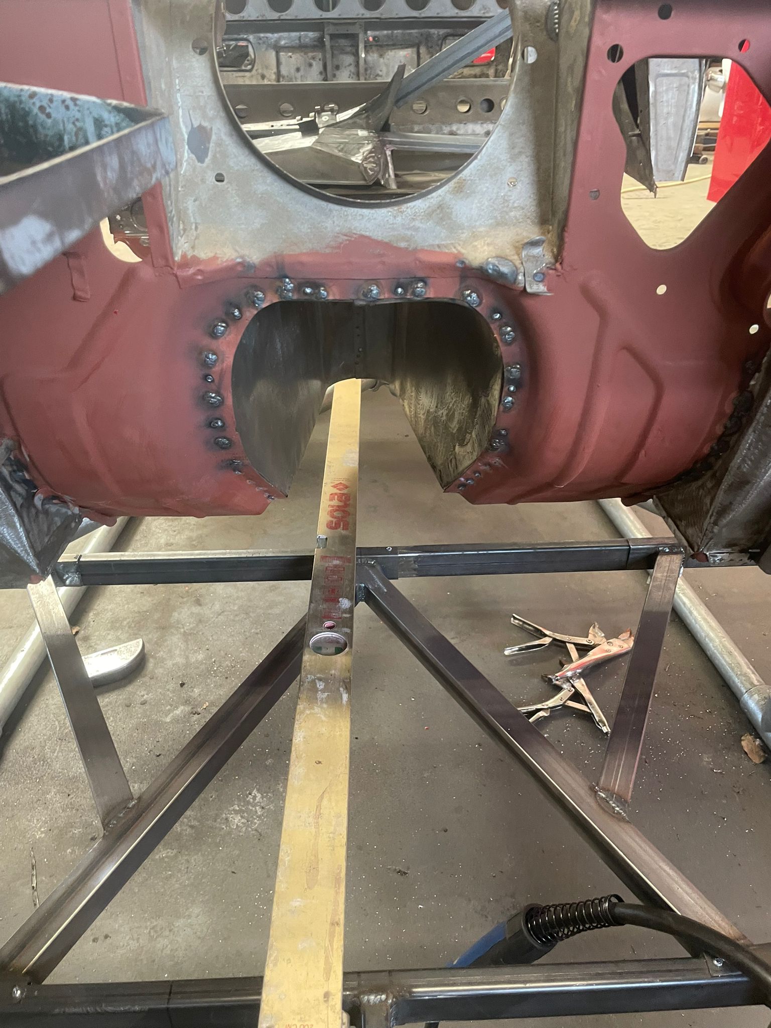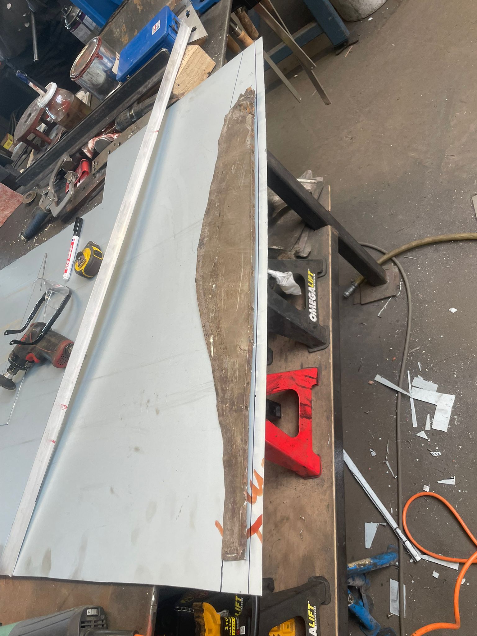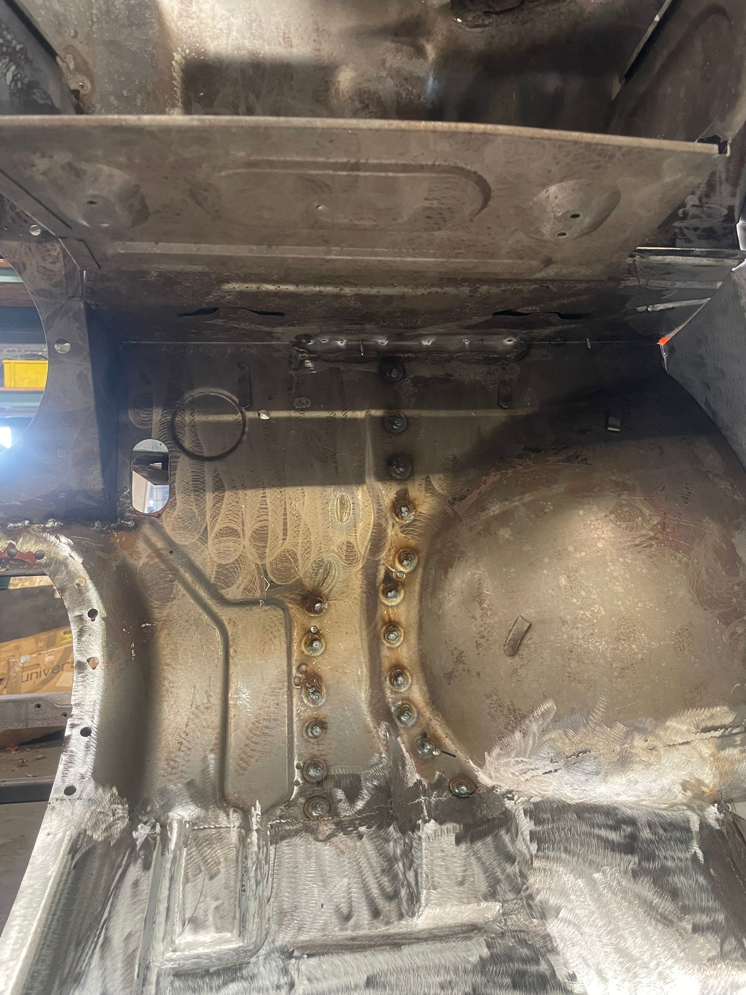 Another week on the zagato. Not a lot of pictures but a lot has happened. I repaired the uppercorners of the firewall. Changed the side profile of the driversside to match the passengerside. Knocked out some dents and stretched the driversside a little bit. Then located every stresscrack, knocked it flat and rewelded it. Remade the lower 20cm of the firewall and the passengerside already welded in after connecting the sidepanels to the firewall.