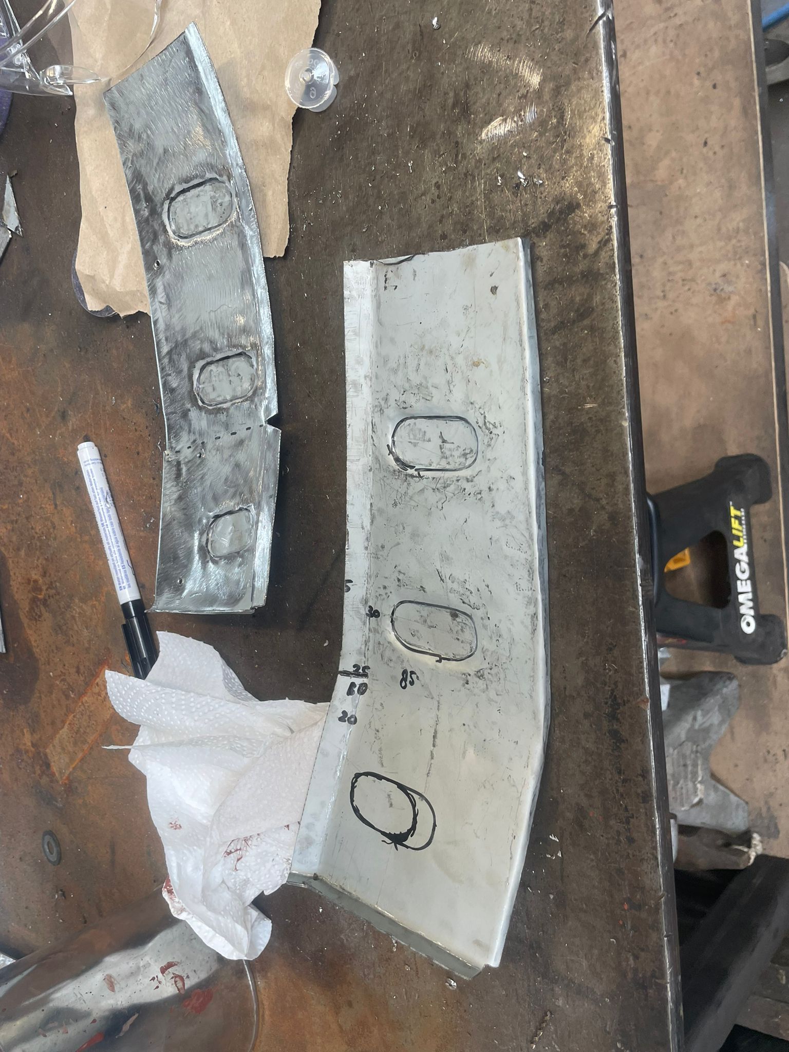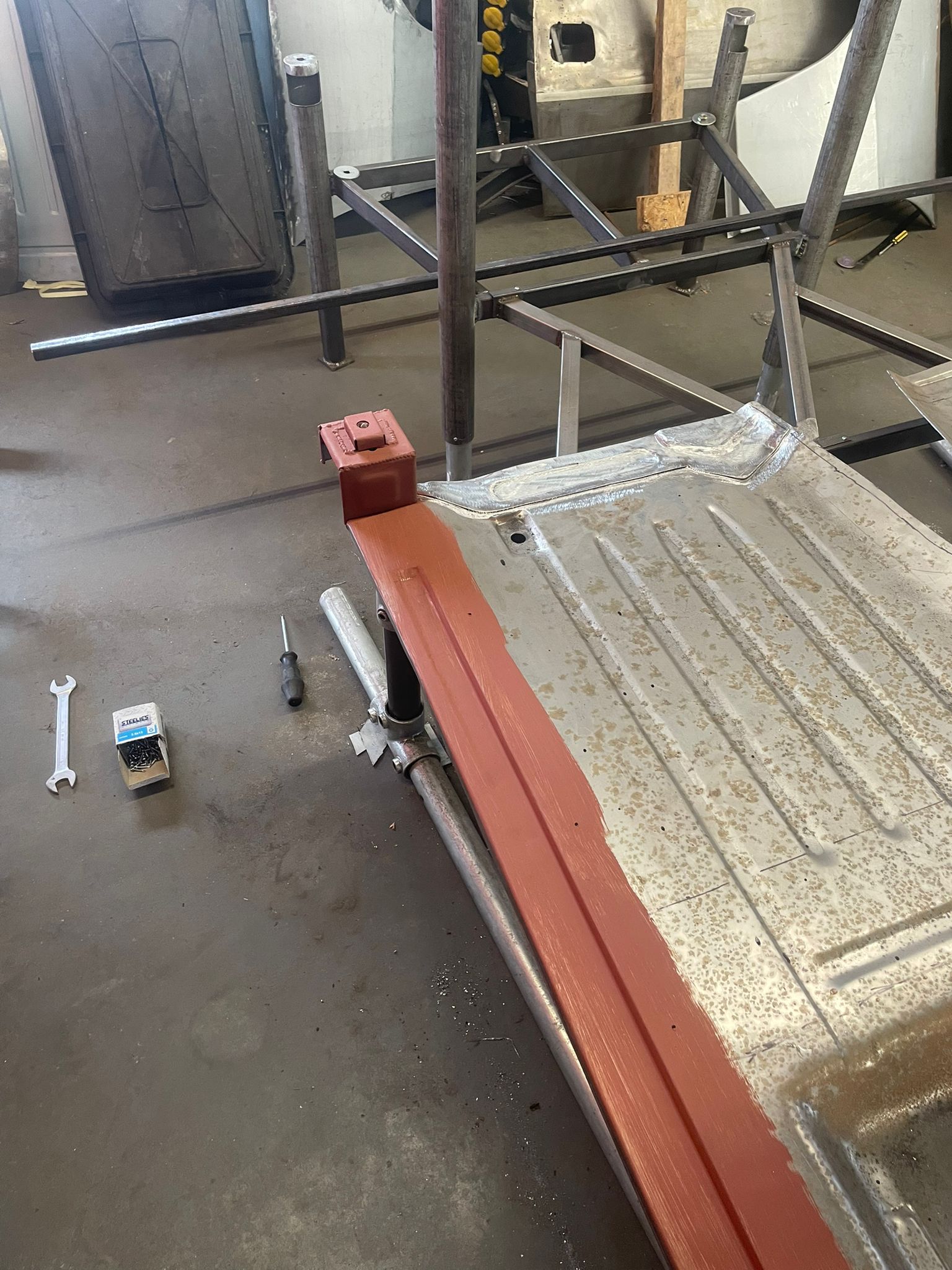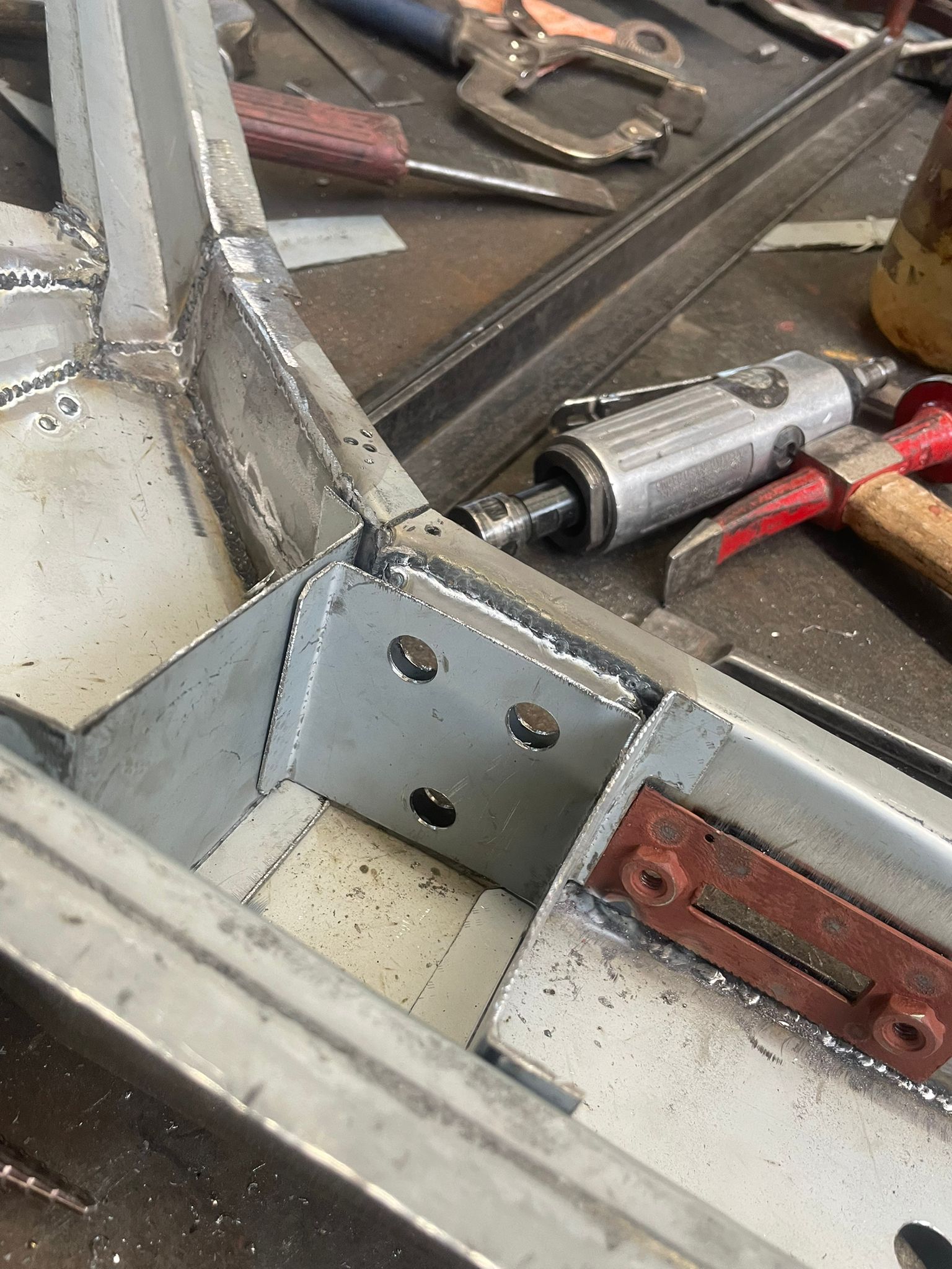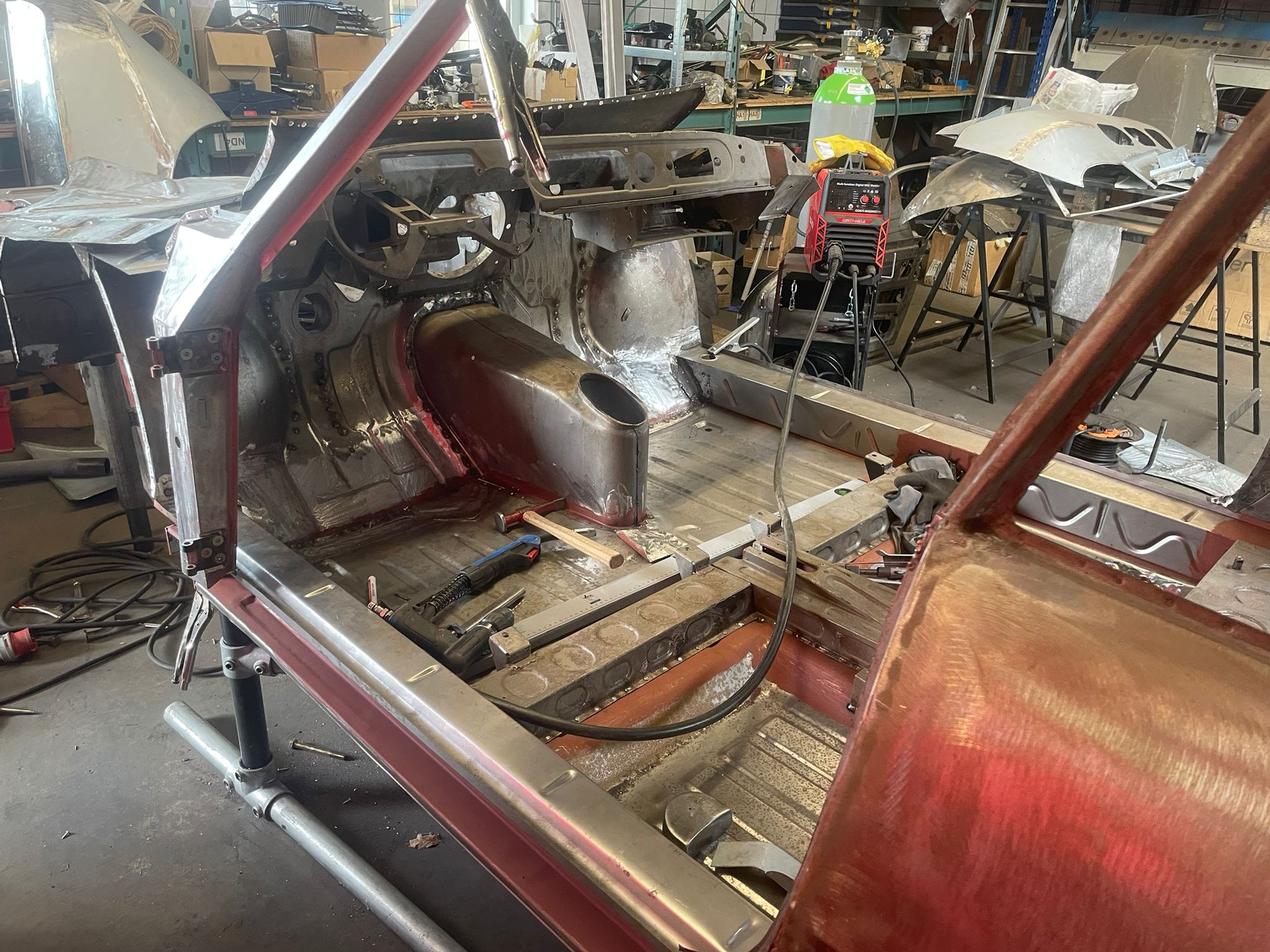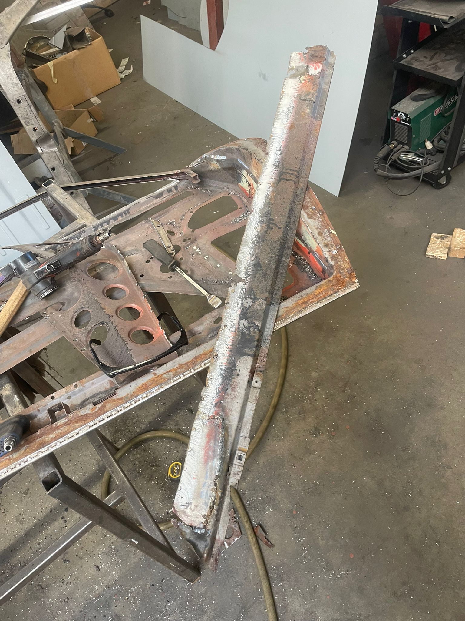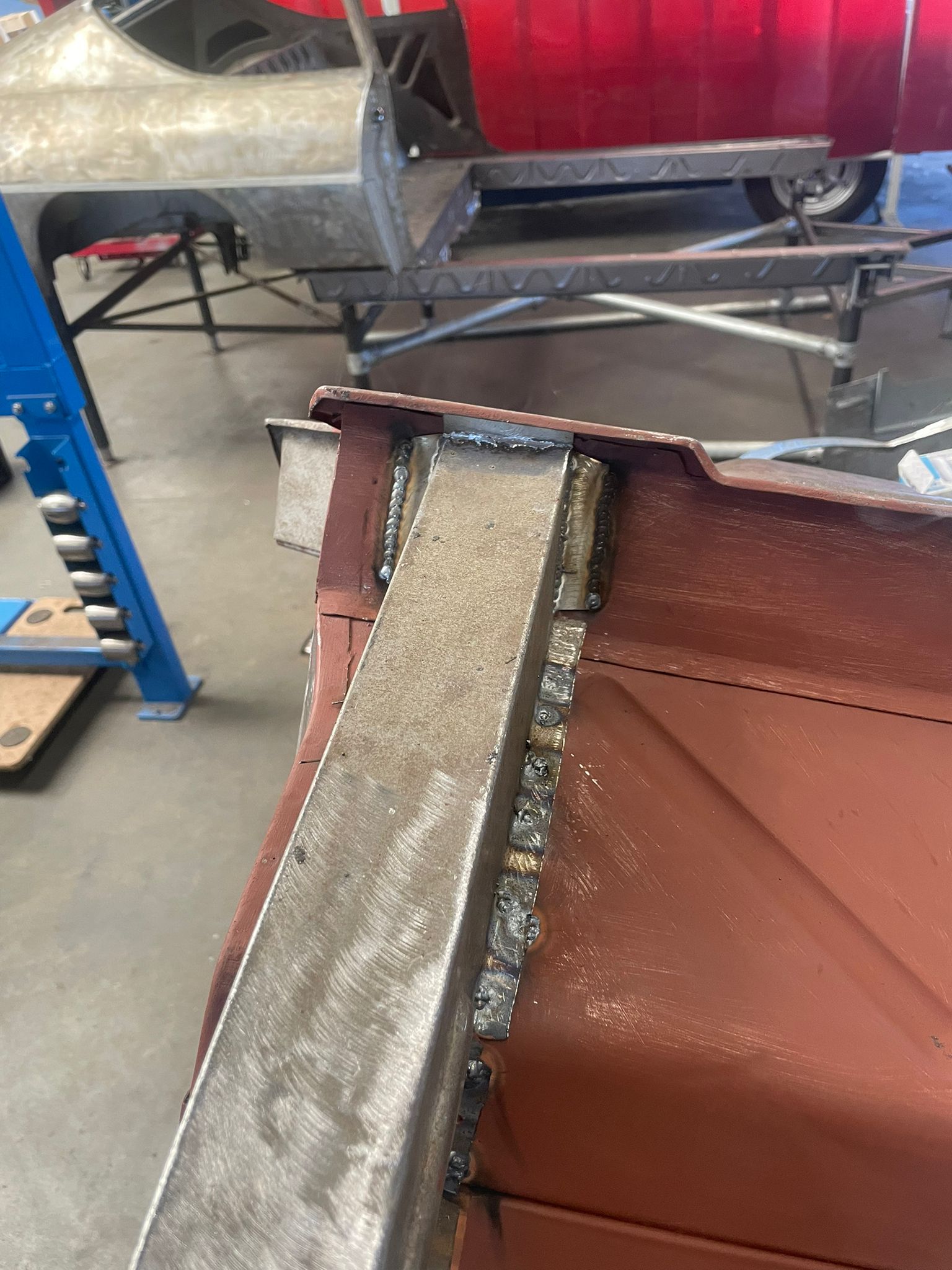 Another week on the zagato. Not a lot of pictures but a lot has happened. I repaired the uppercorners of the firewall. Changed the side profile of the driversside to match the passengerside. Knocked out some dents and stretched the driversside a little bit. Then located every stresscrack, knocked it flat and rewelded it. Remade the lower 20cm of the firewall and the passengerside already welded in after connecting the sidepanels to the firewall.