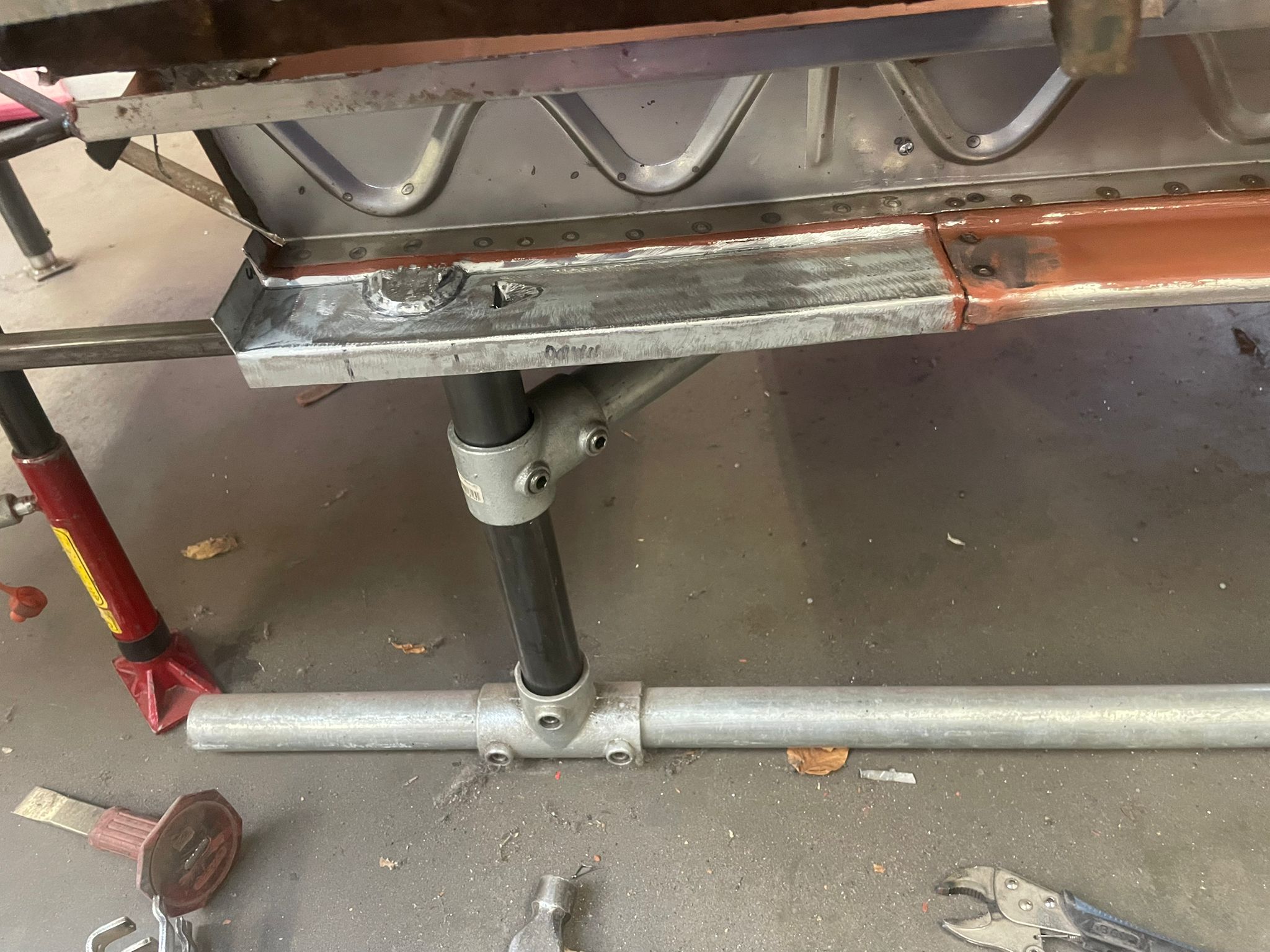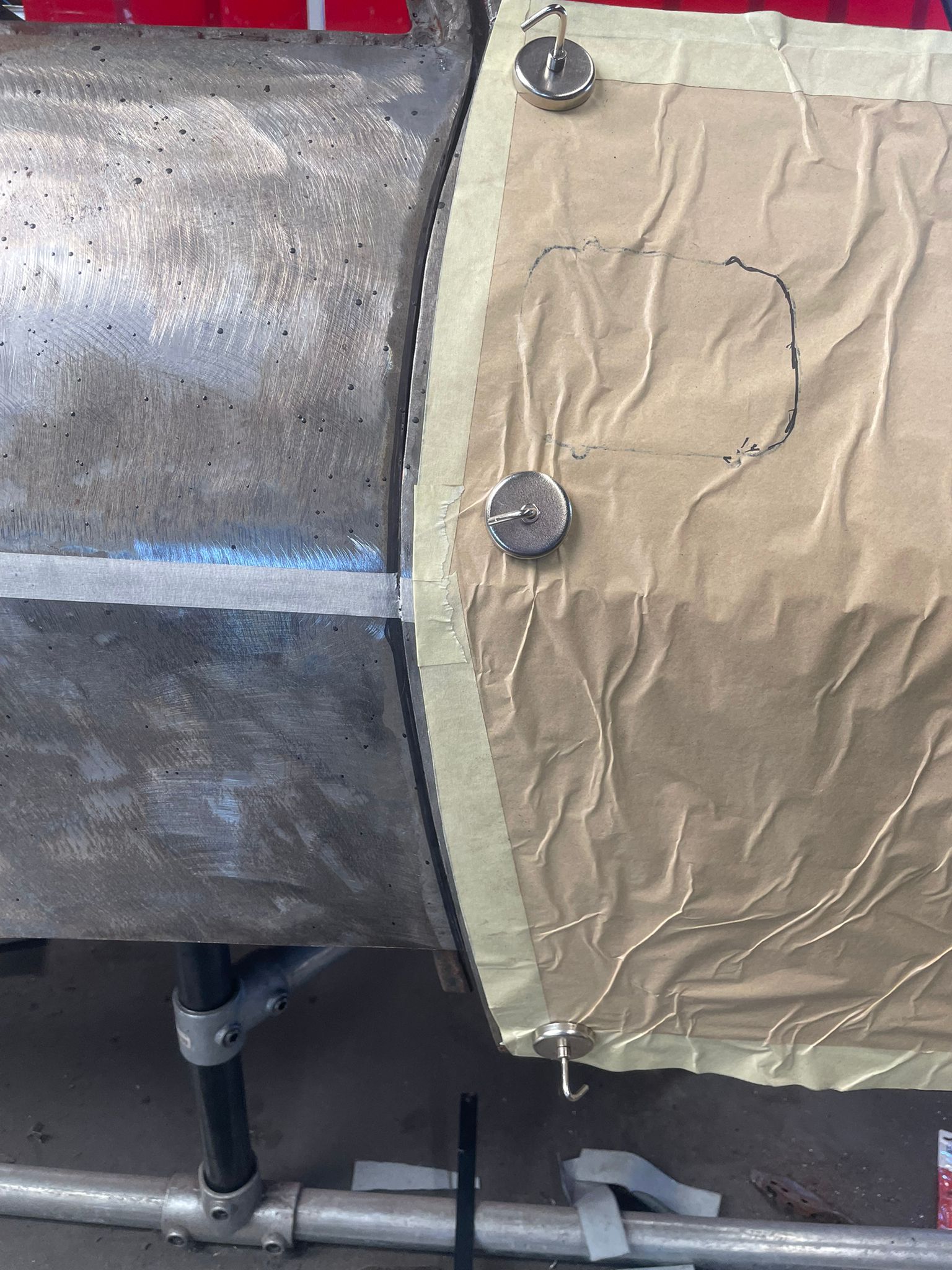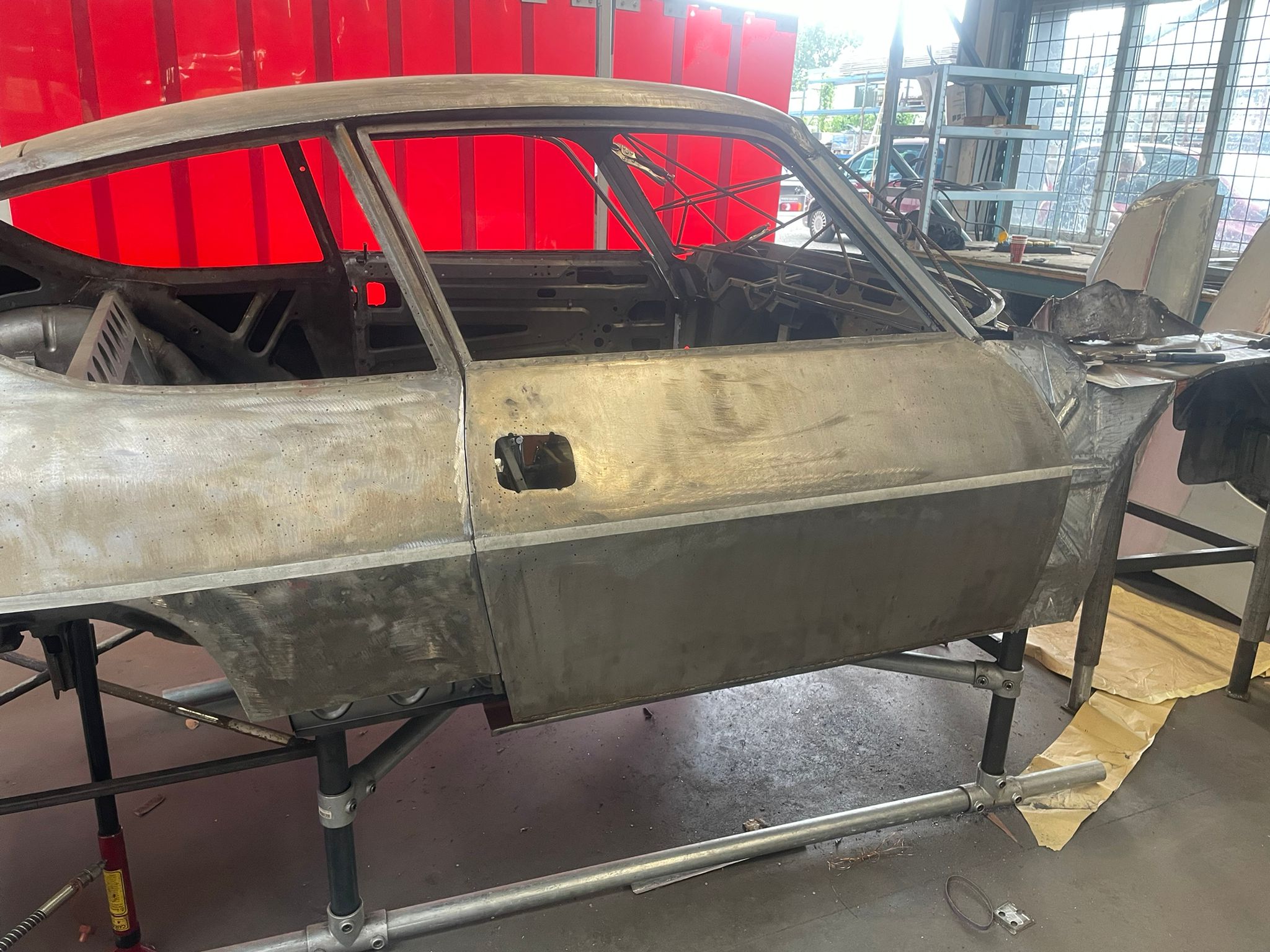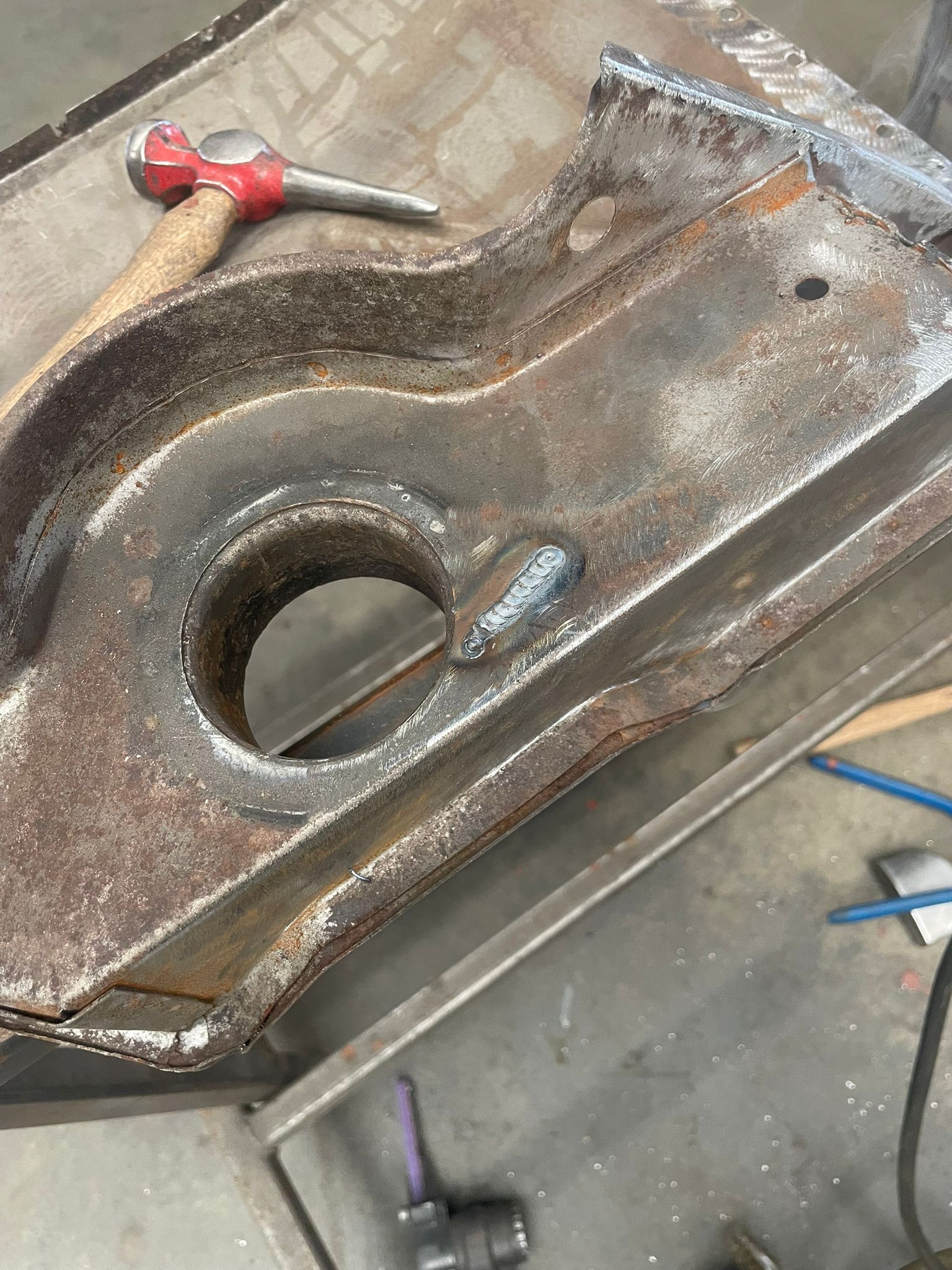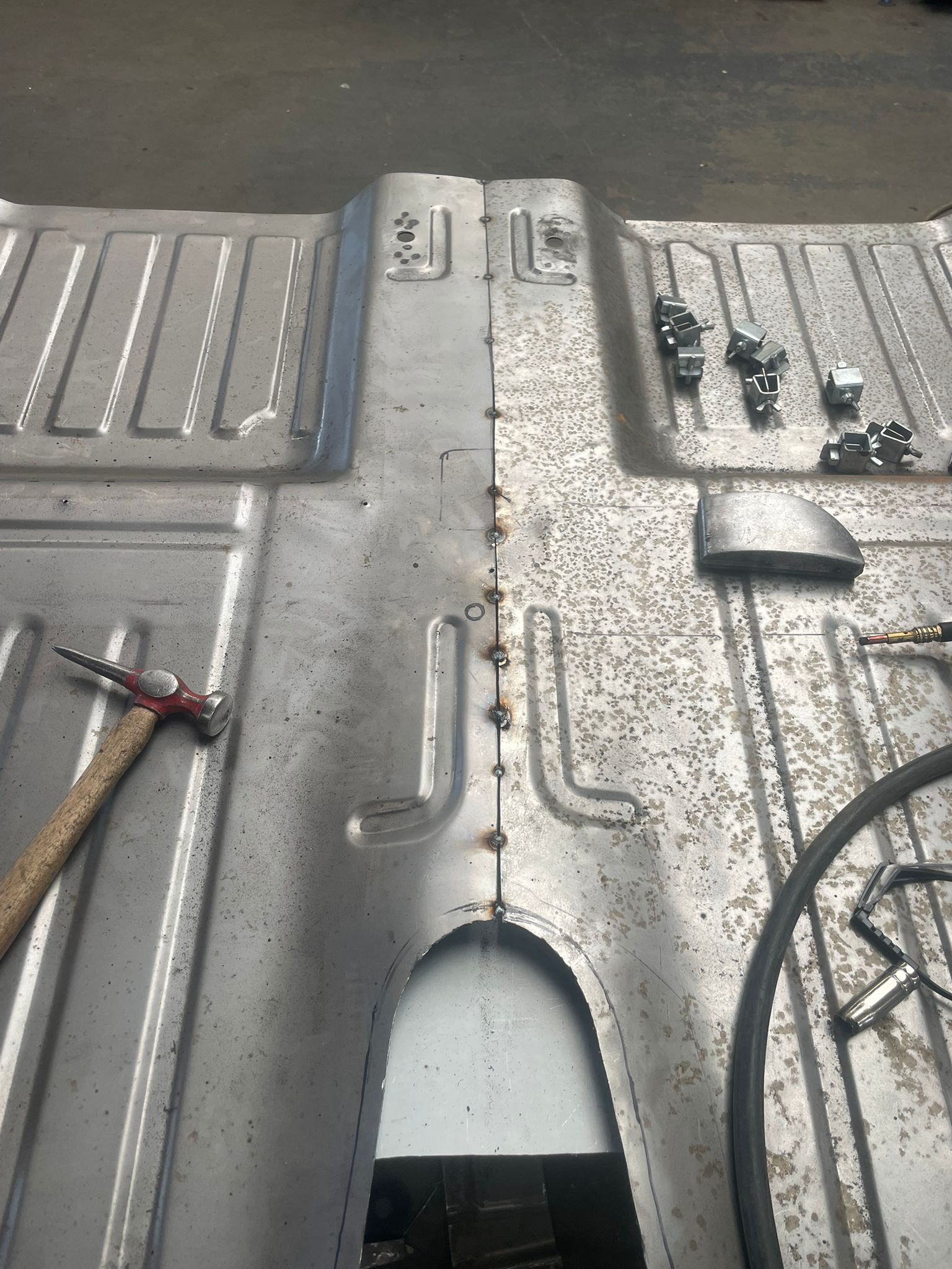 Another week on the zagato. Not a lot of pictures but a lot has happened. I repaired the uppercorners of the firewall. Changed the side profile of the driversside to match the passengerside. Knocked out some dents and stretched the driversside a little bit. Then located every stresscrack, knocked it flat and rewelded it. Remade the lower 20cm of the firewall and the passengerside already welded in after connecting the sidepanels to the firewall.