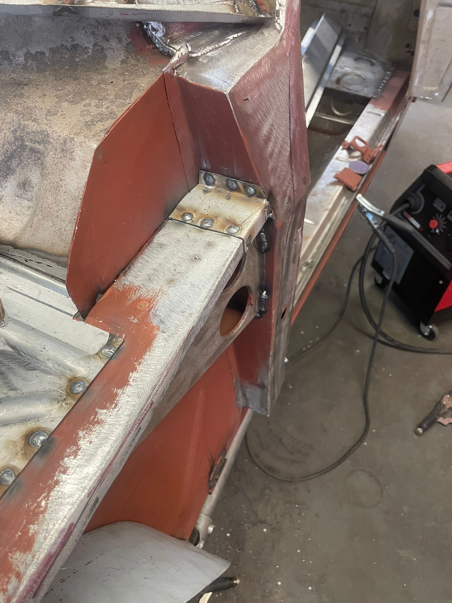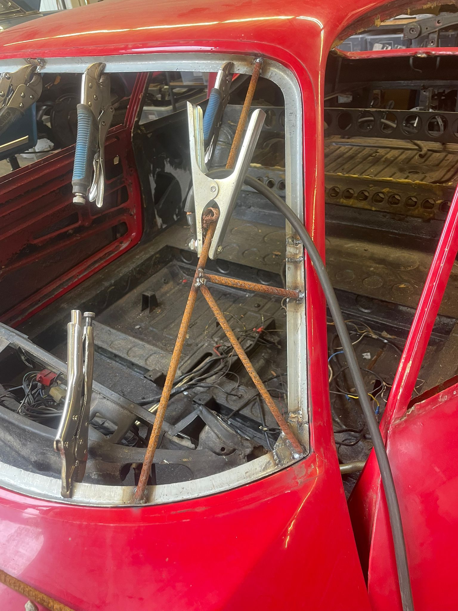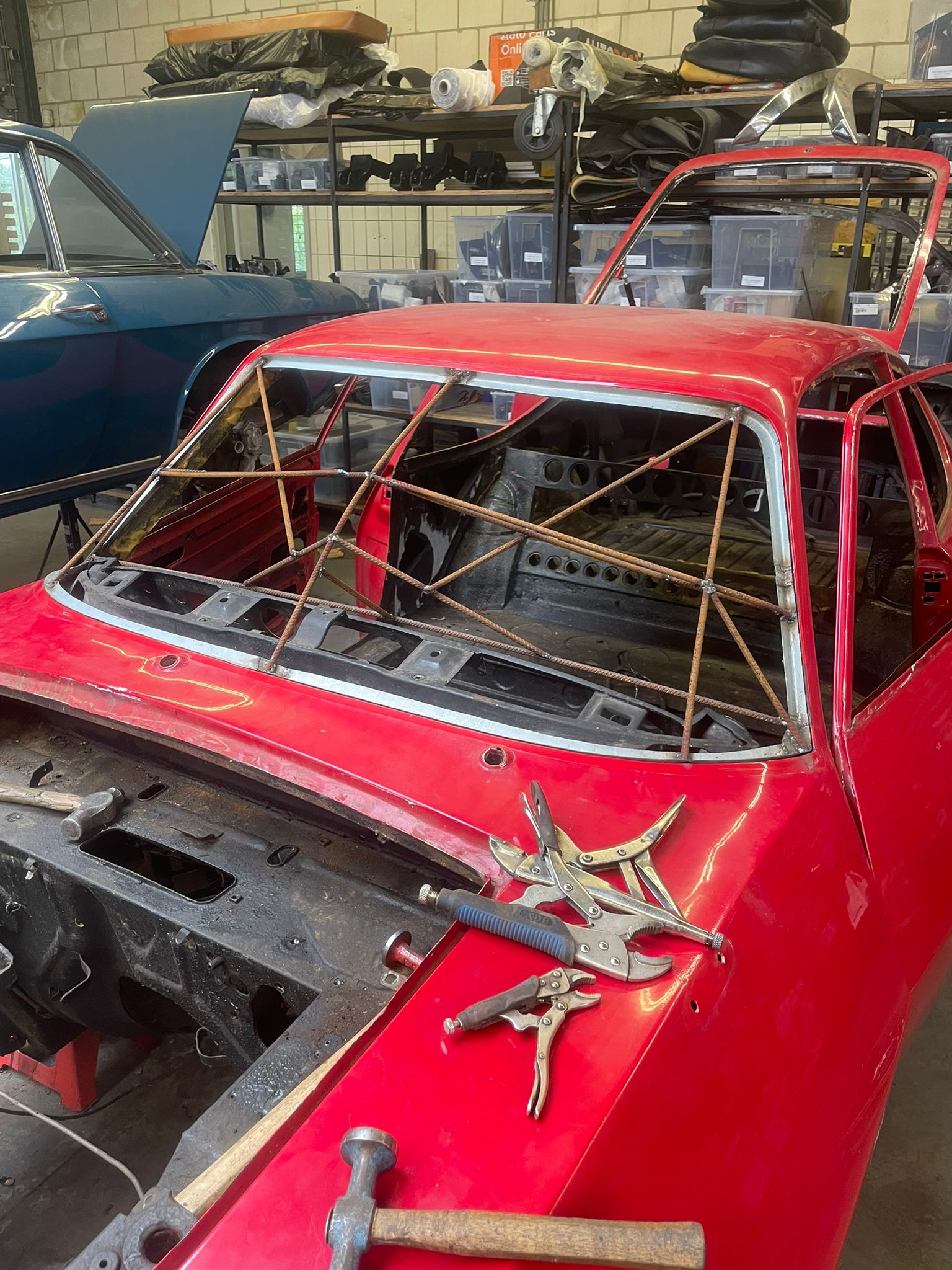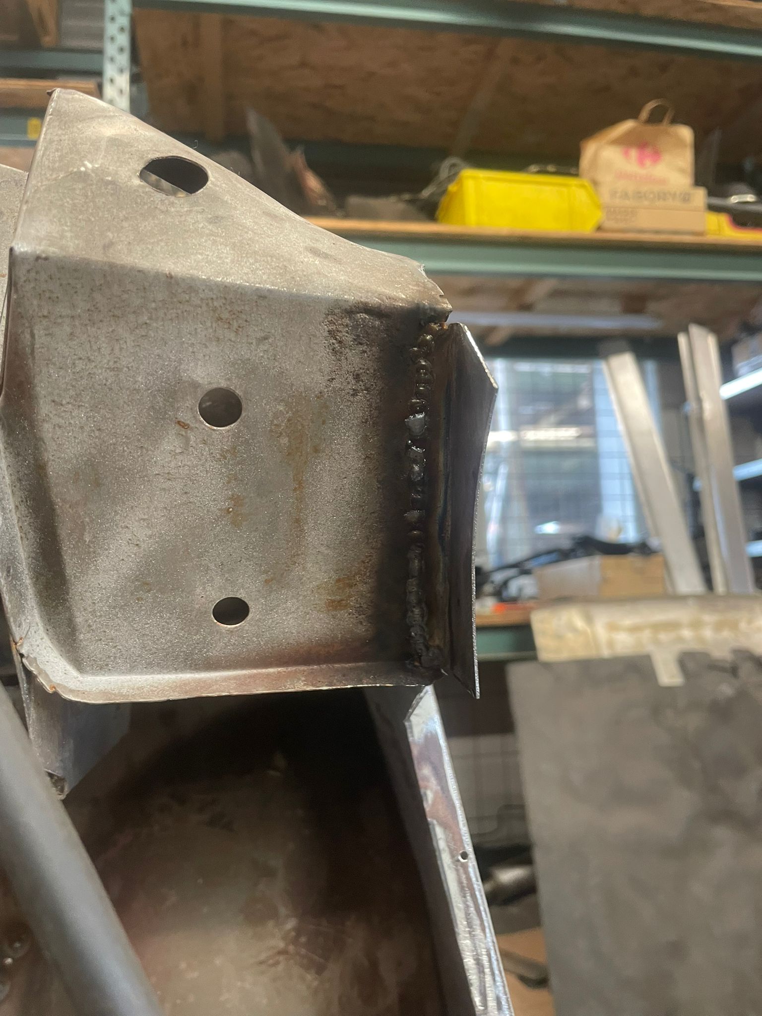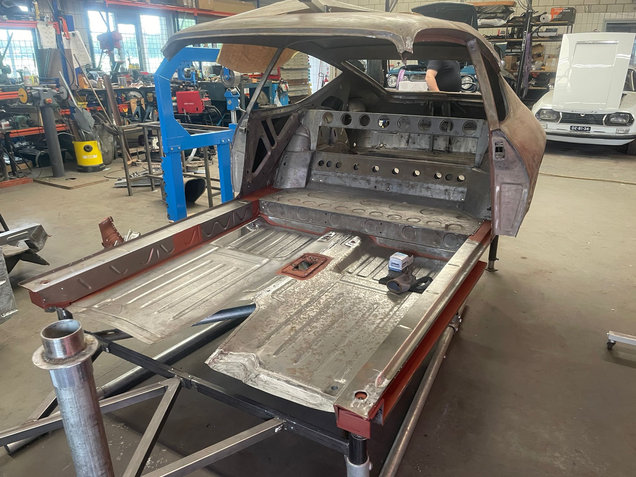 Another week on the zagato. Not a lot of pictures but a lot has happened. I repaired the uppercorners of the firewall. Changed the side profile of the driversside to match the passengerside. Knocked out some dents and stretched the driversside a little bit. Then located every stresscrack, knocked it flat and rewelded it. Remade the lower 20cm of the firewall and the passengerside already welded in after connecting the sidepanels to the firewall.