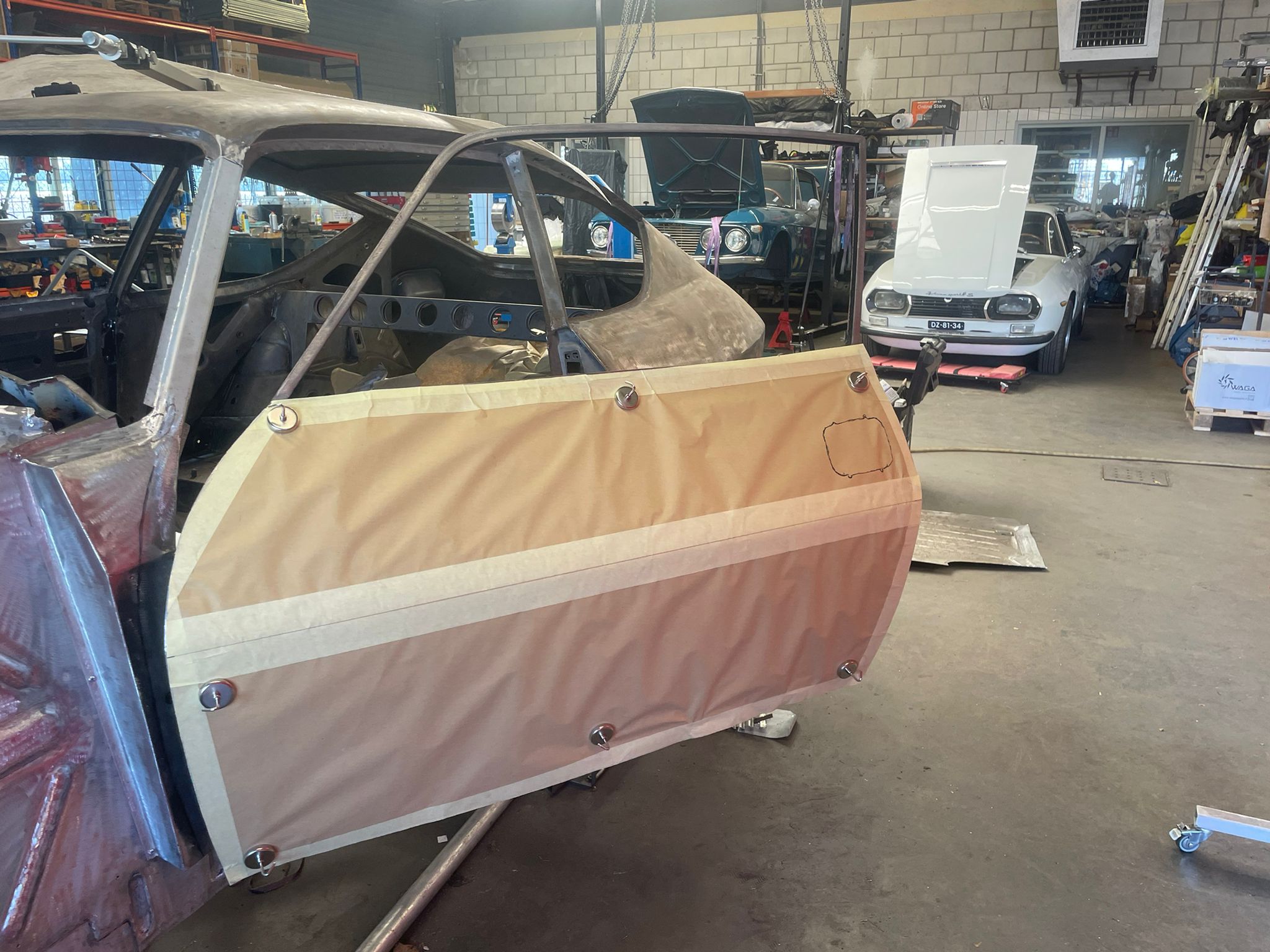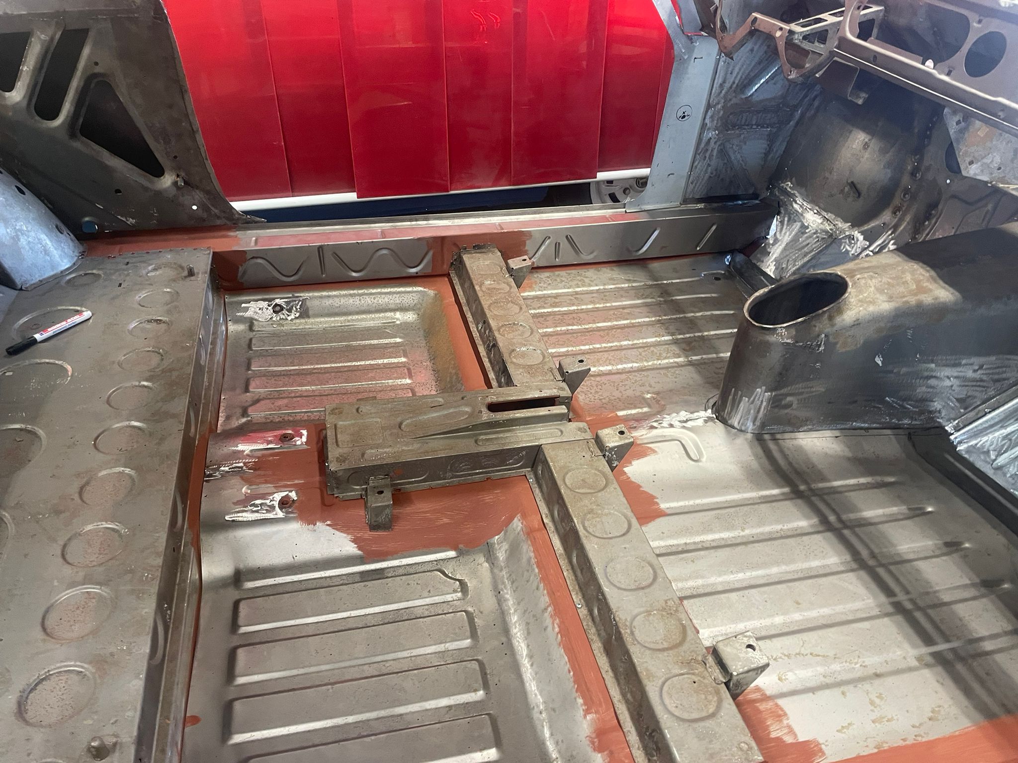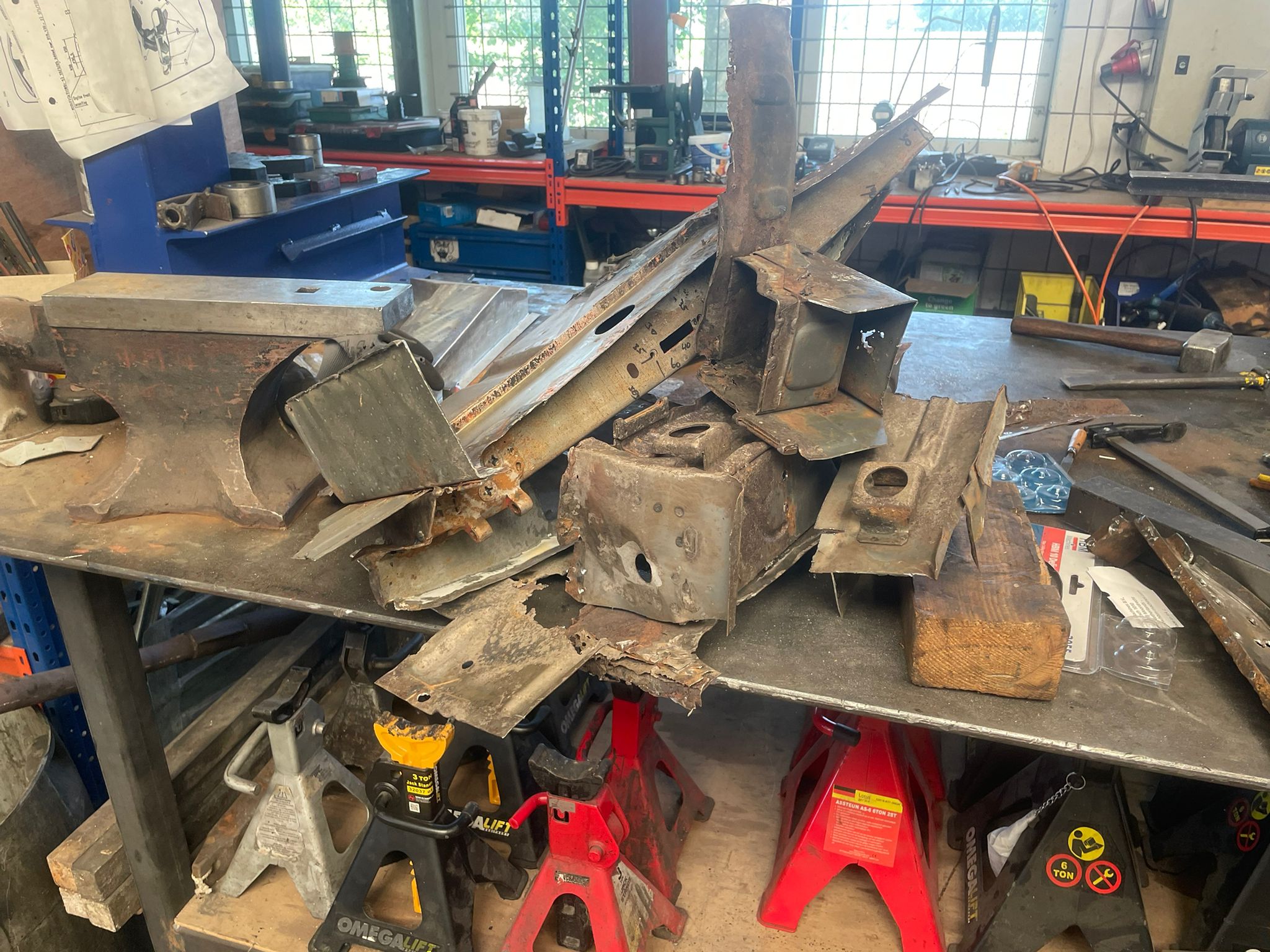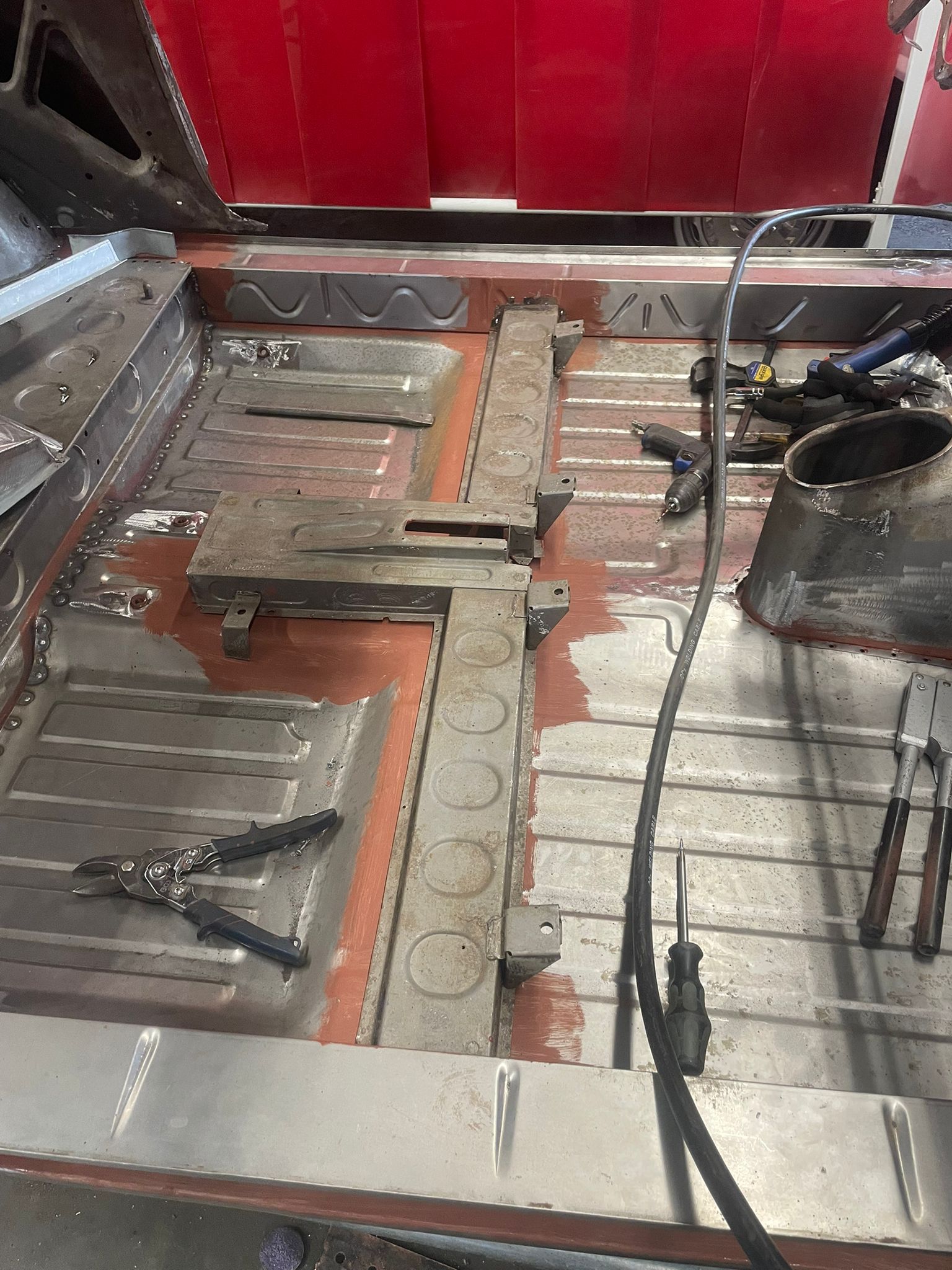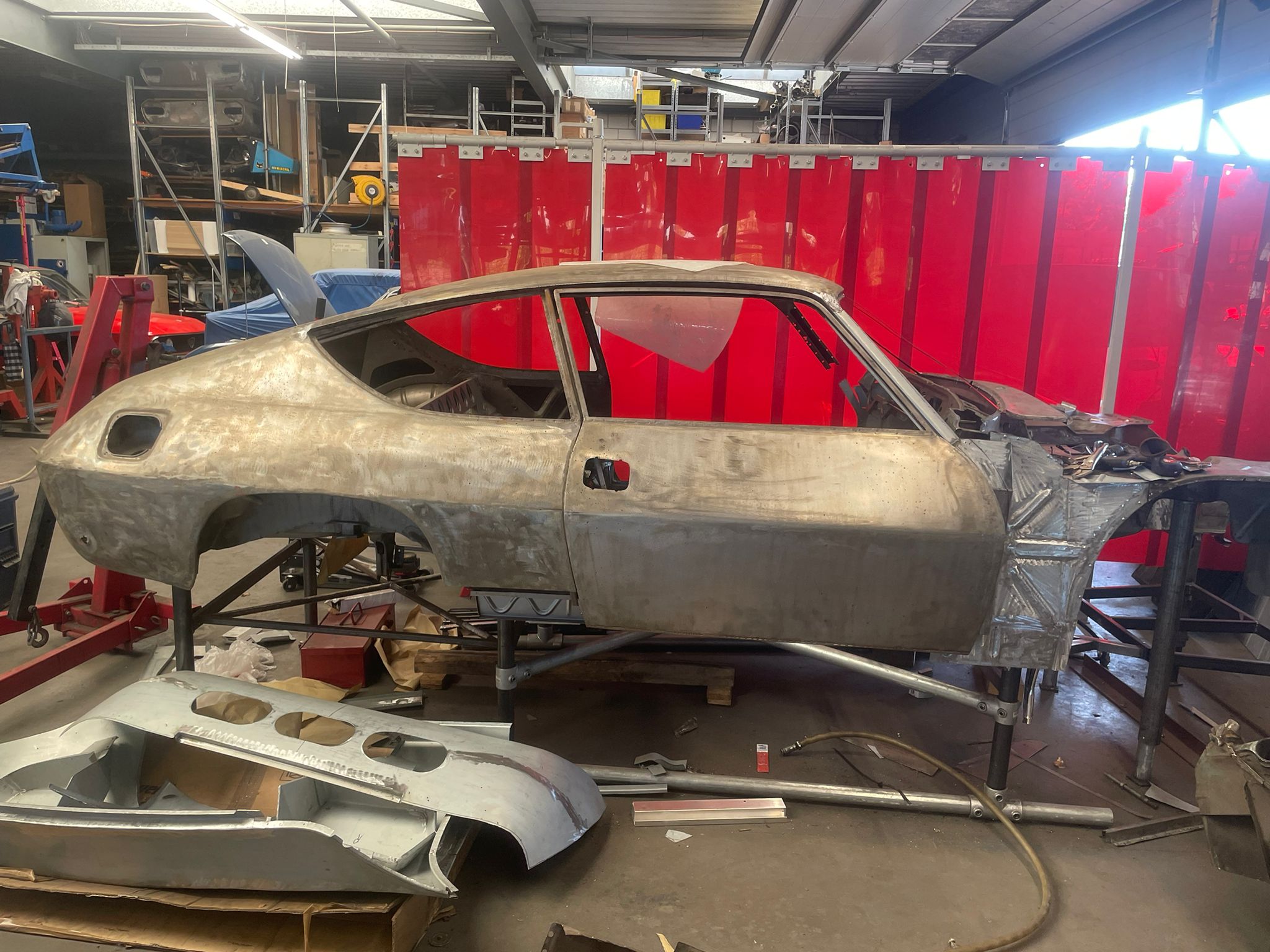 Another week on the zagato. Not a lot of pictures but a lot has happened. I repaired the uppercorners of the firewall. Changed the side profile of the driversside to match the passengerside. Knocked out some dents and stretched the driversside a little bit. Then located every stresscrack, knocked it flat and rewelded it. Remade the lower 20cm of the firewall and the passengerside already welded in after connecting the sidepanels to the firewall.